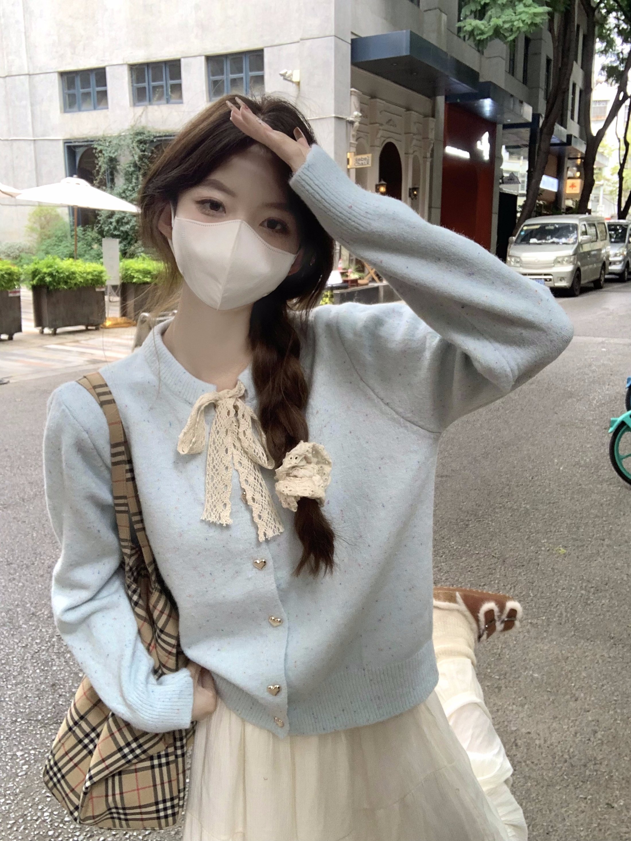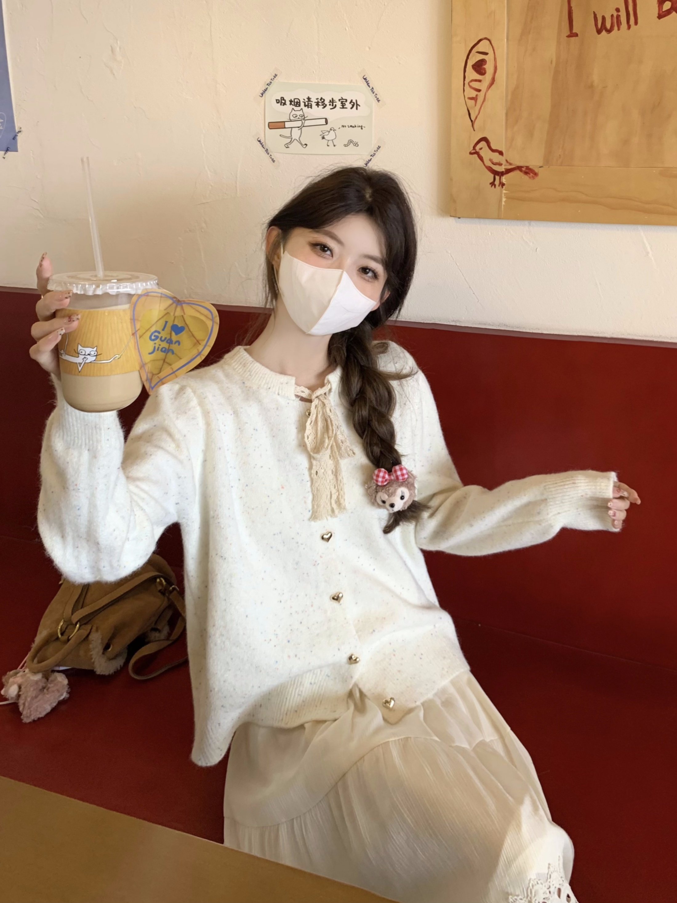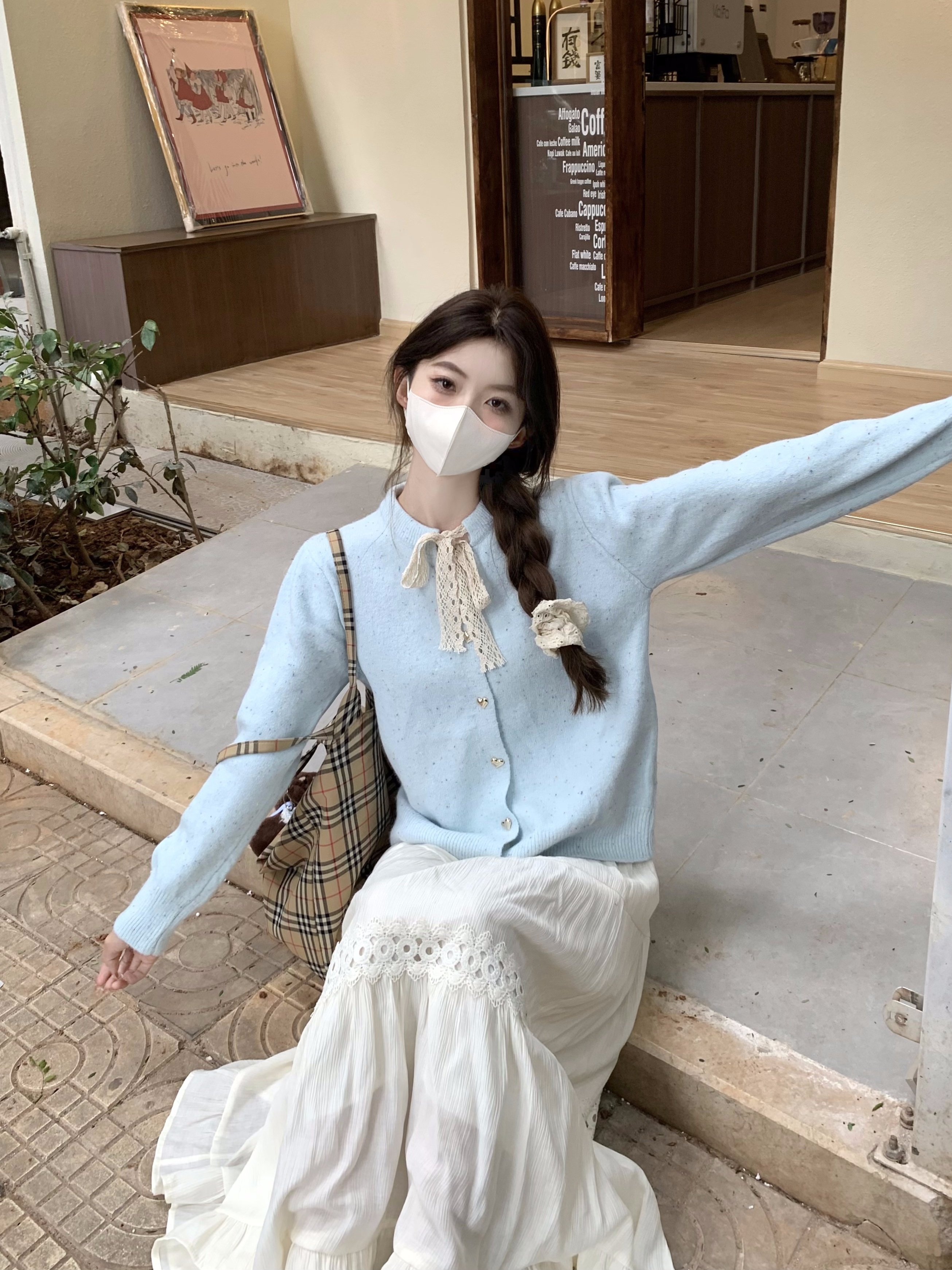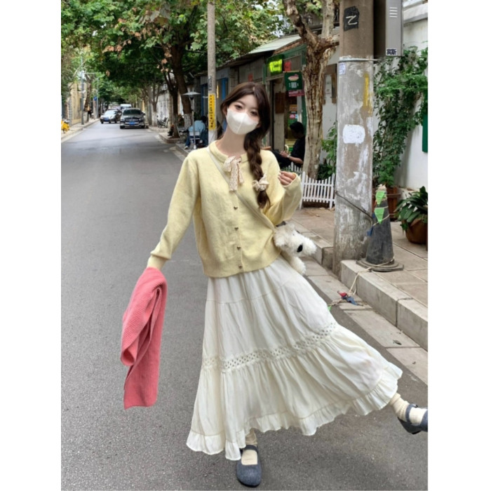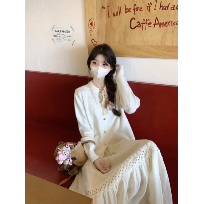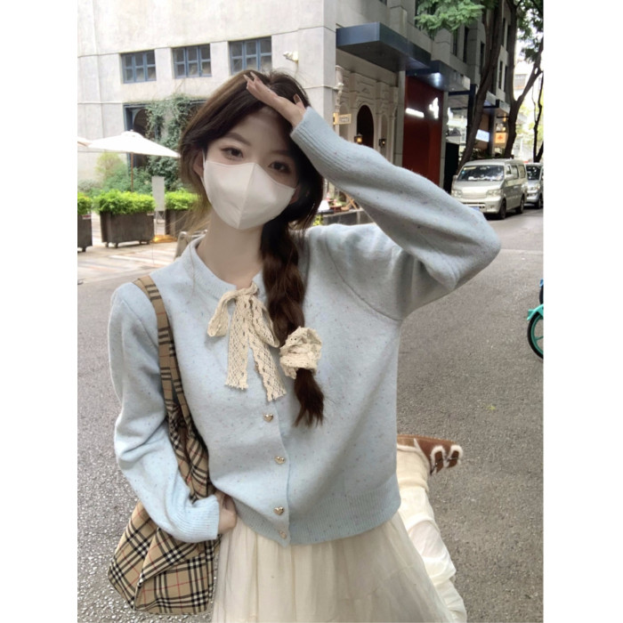 蝴蝶結長袖韓系毛衣開衫外套女秋季2025新款寬鬆甜美針織軟糯上衣