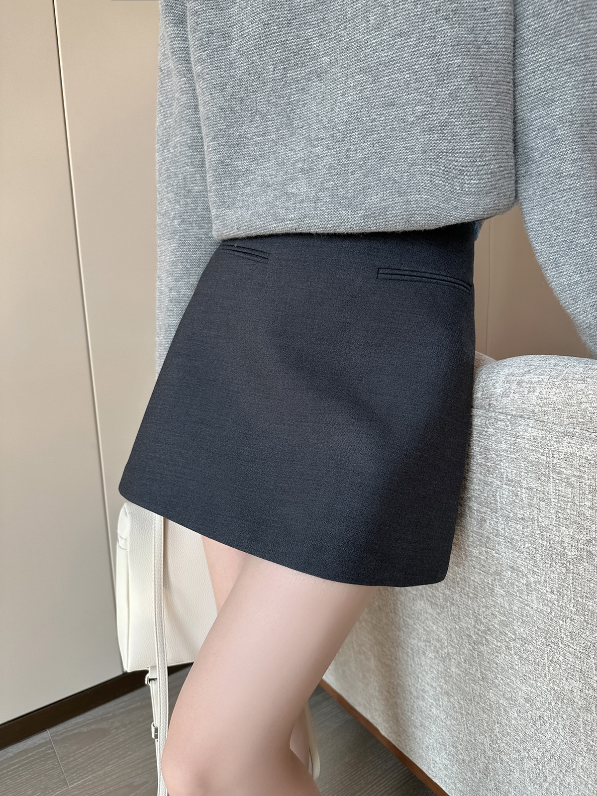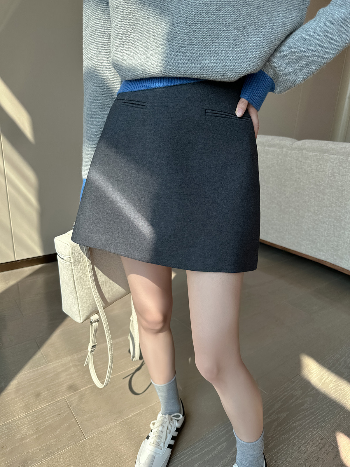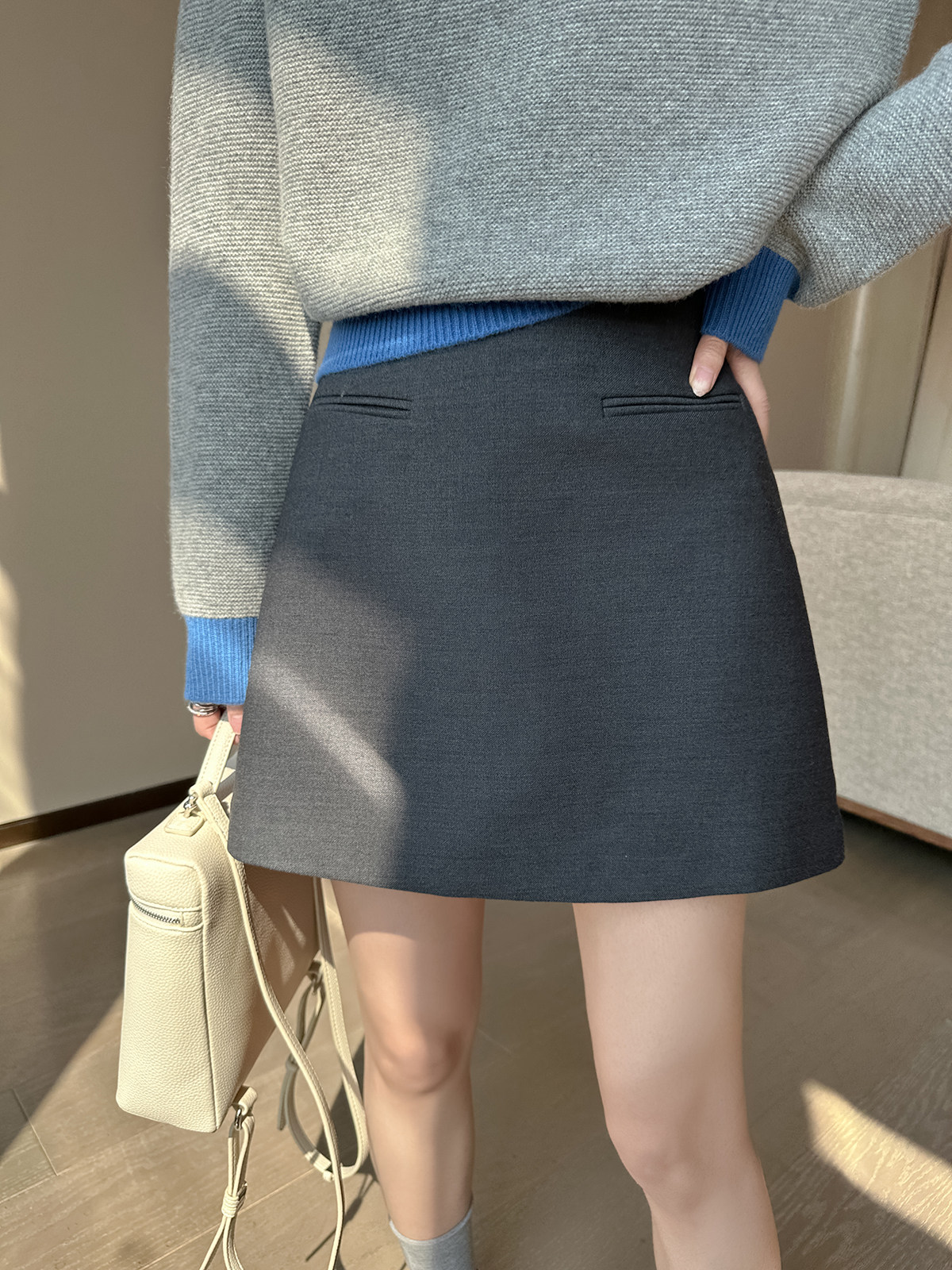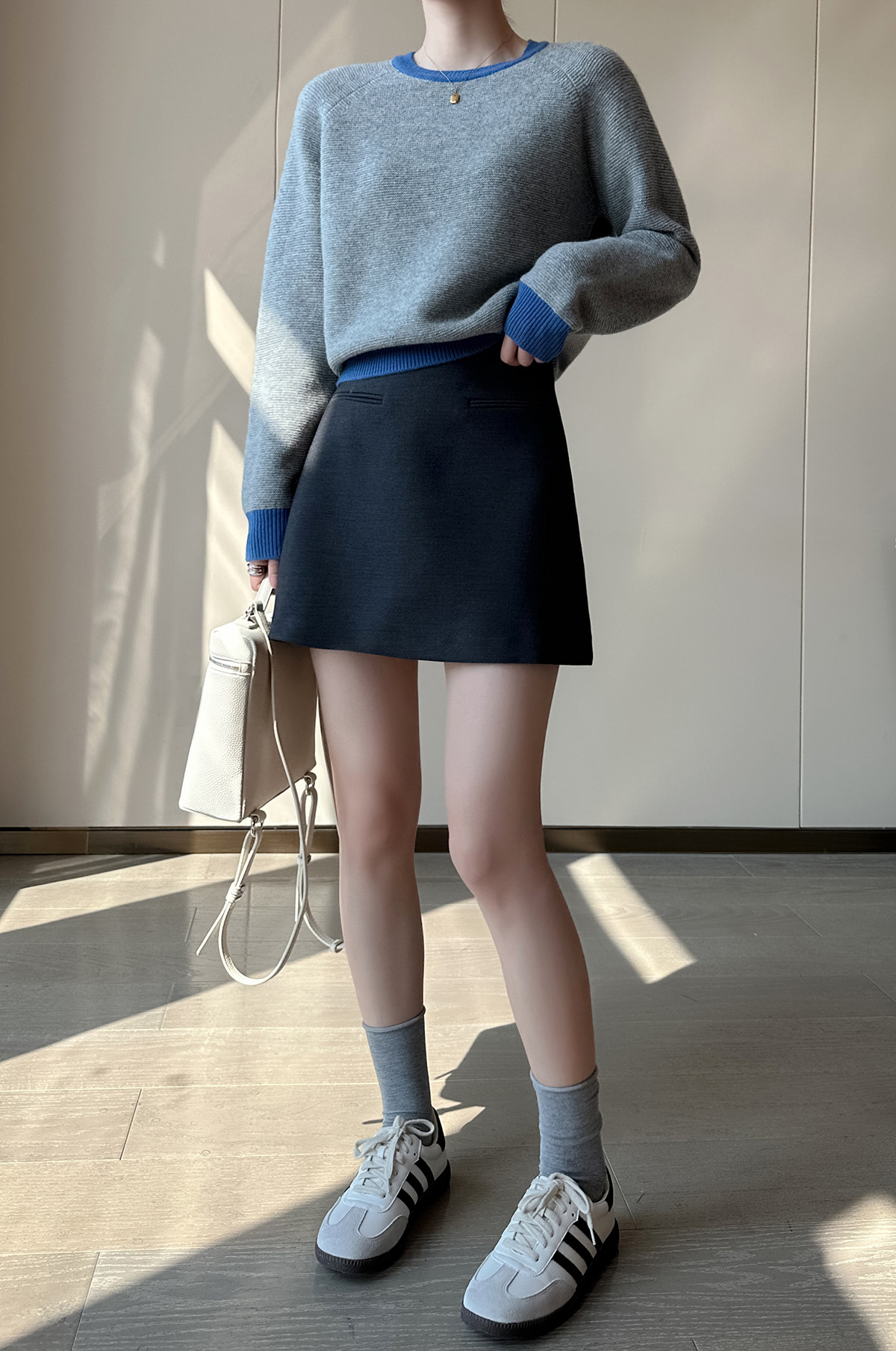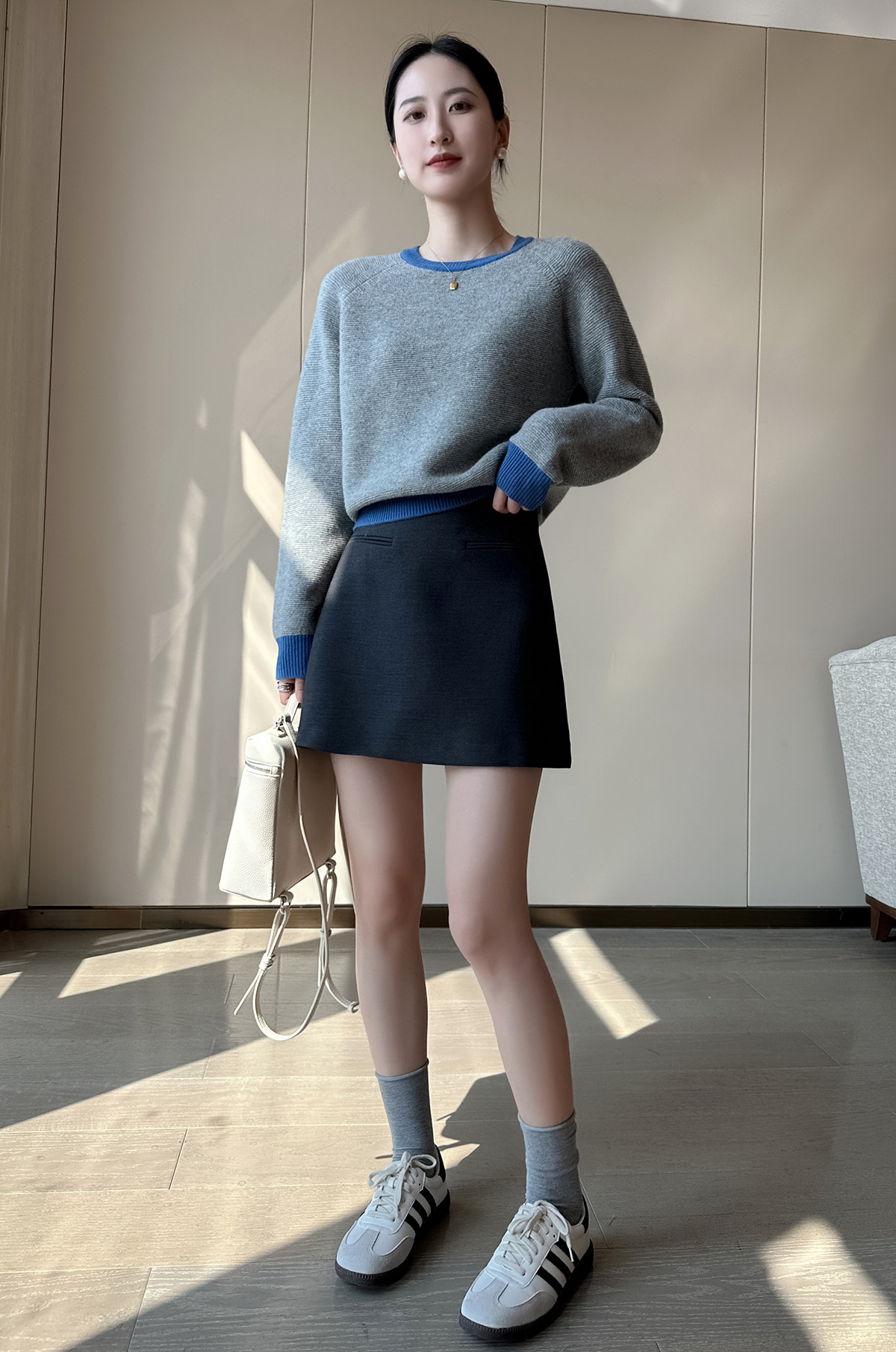 PINKEEN灰撞色圓領長袖針織衫女秋季2025新減齡舒適顯瘦套頭毛衣