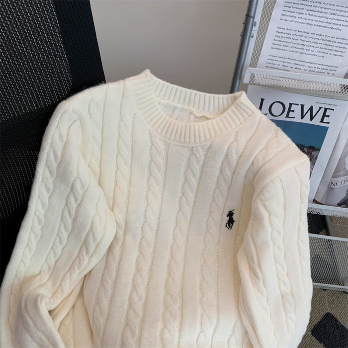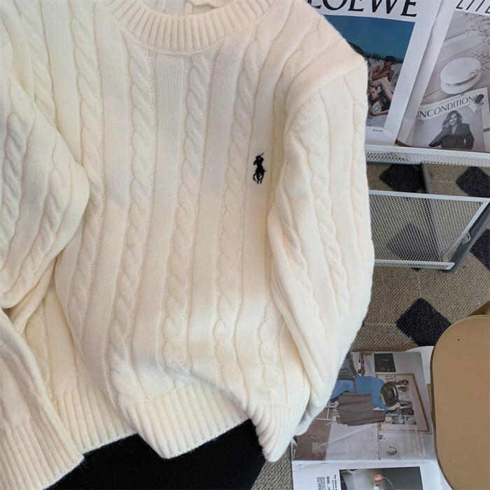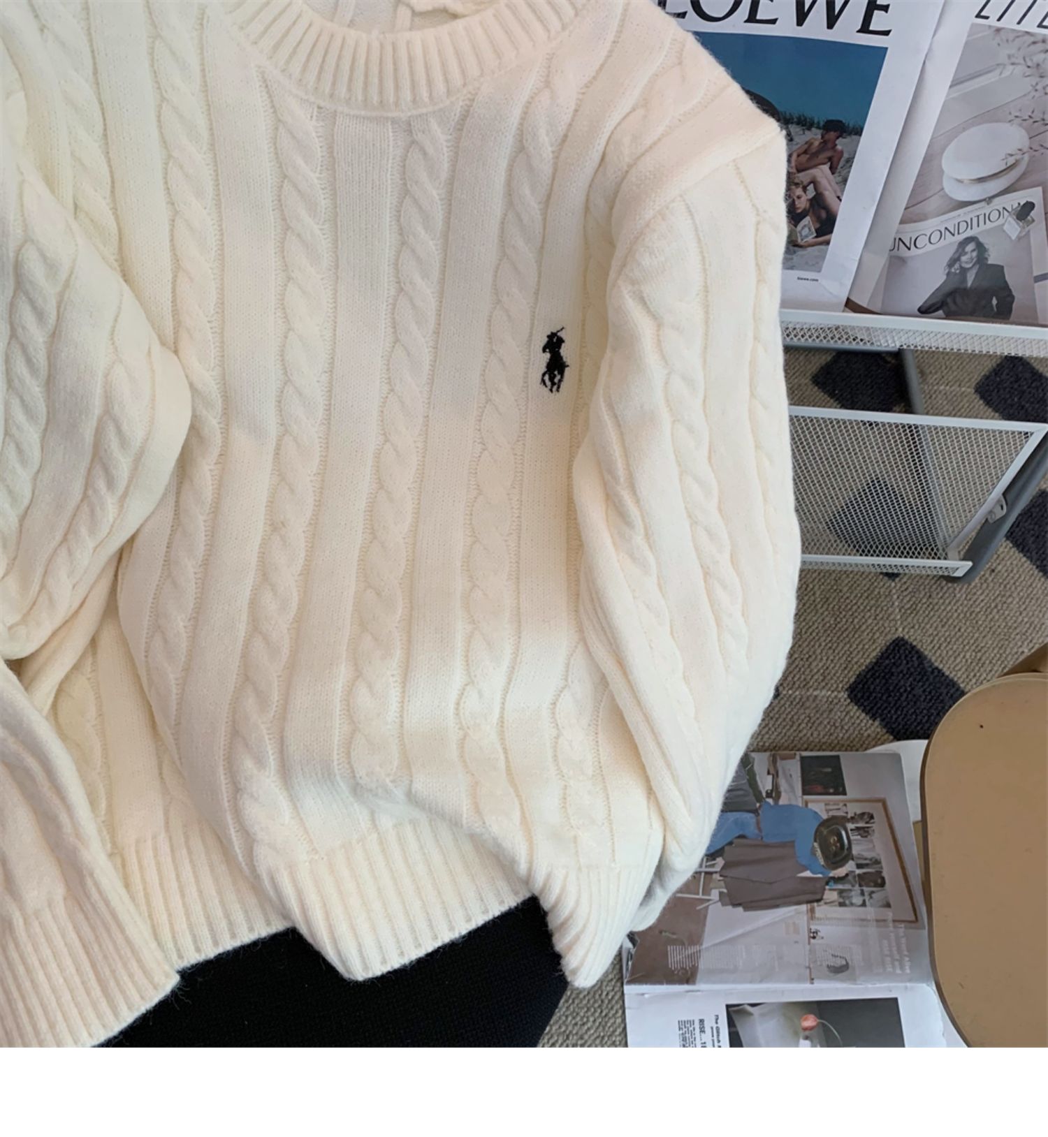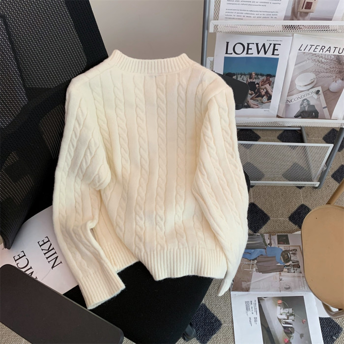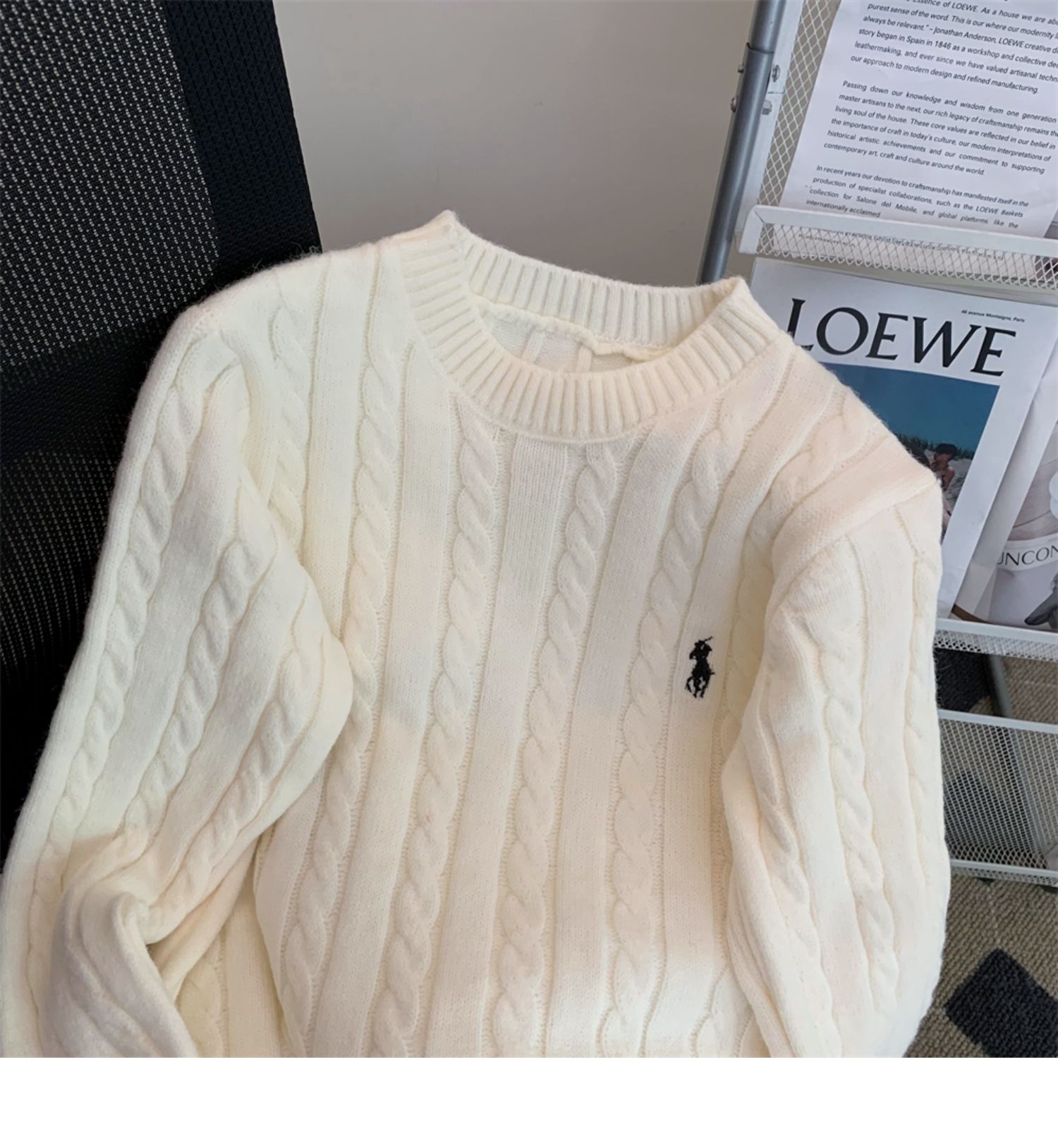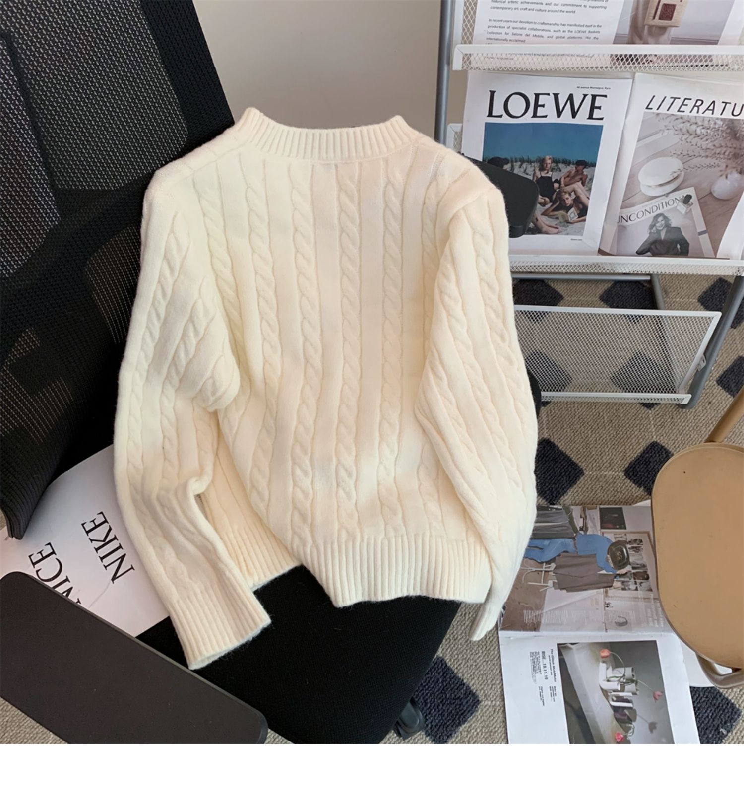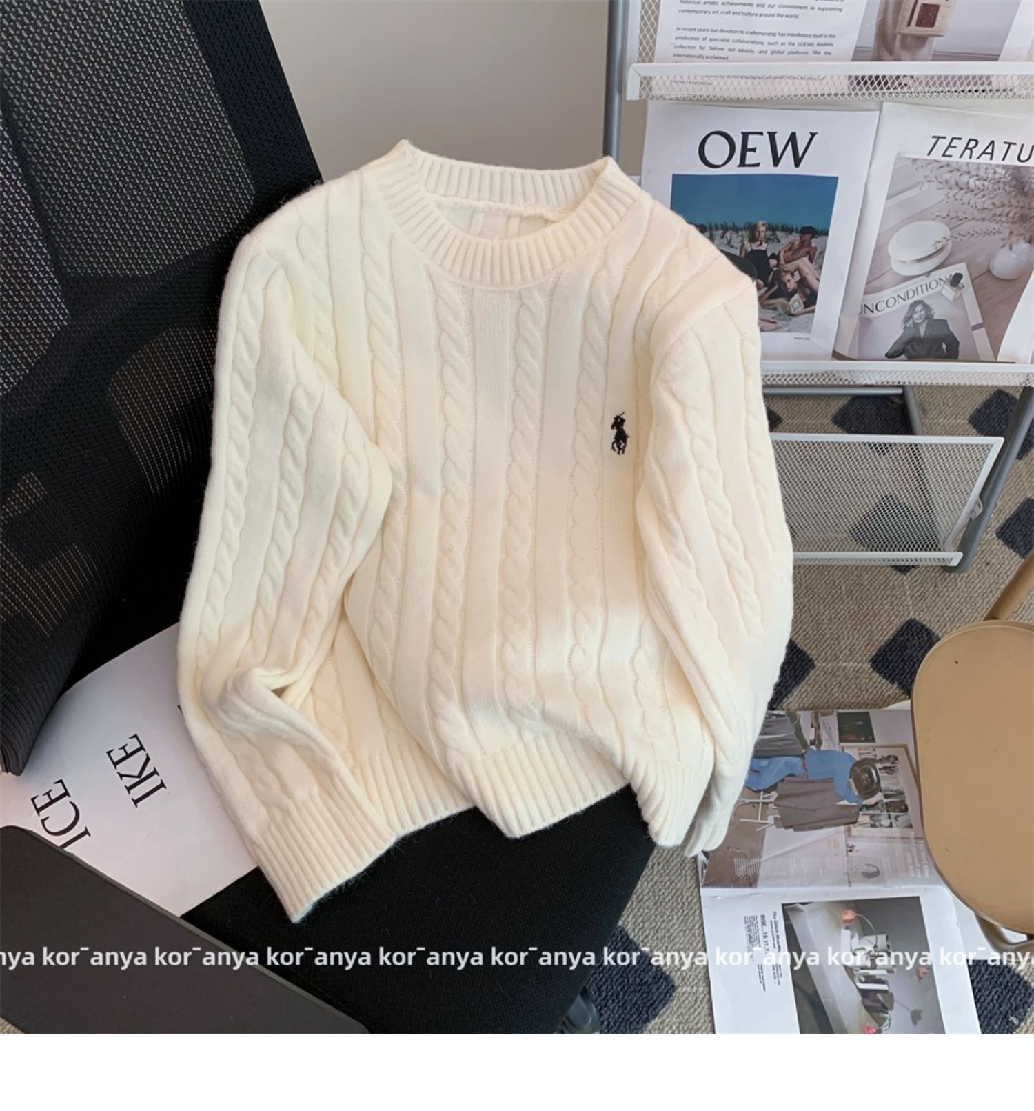 kor-anya麻花圓領套頭毛衣女秋冬韓系慵懶軟糯寬松顯瘦針織衫上衣