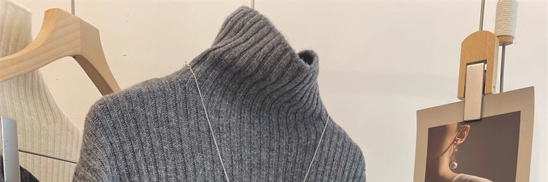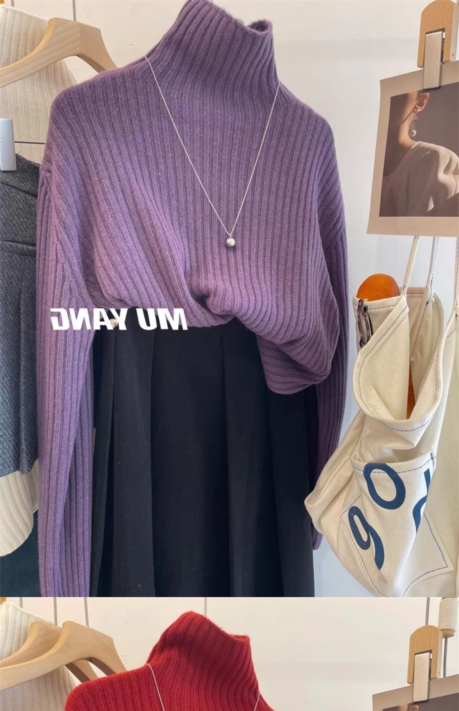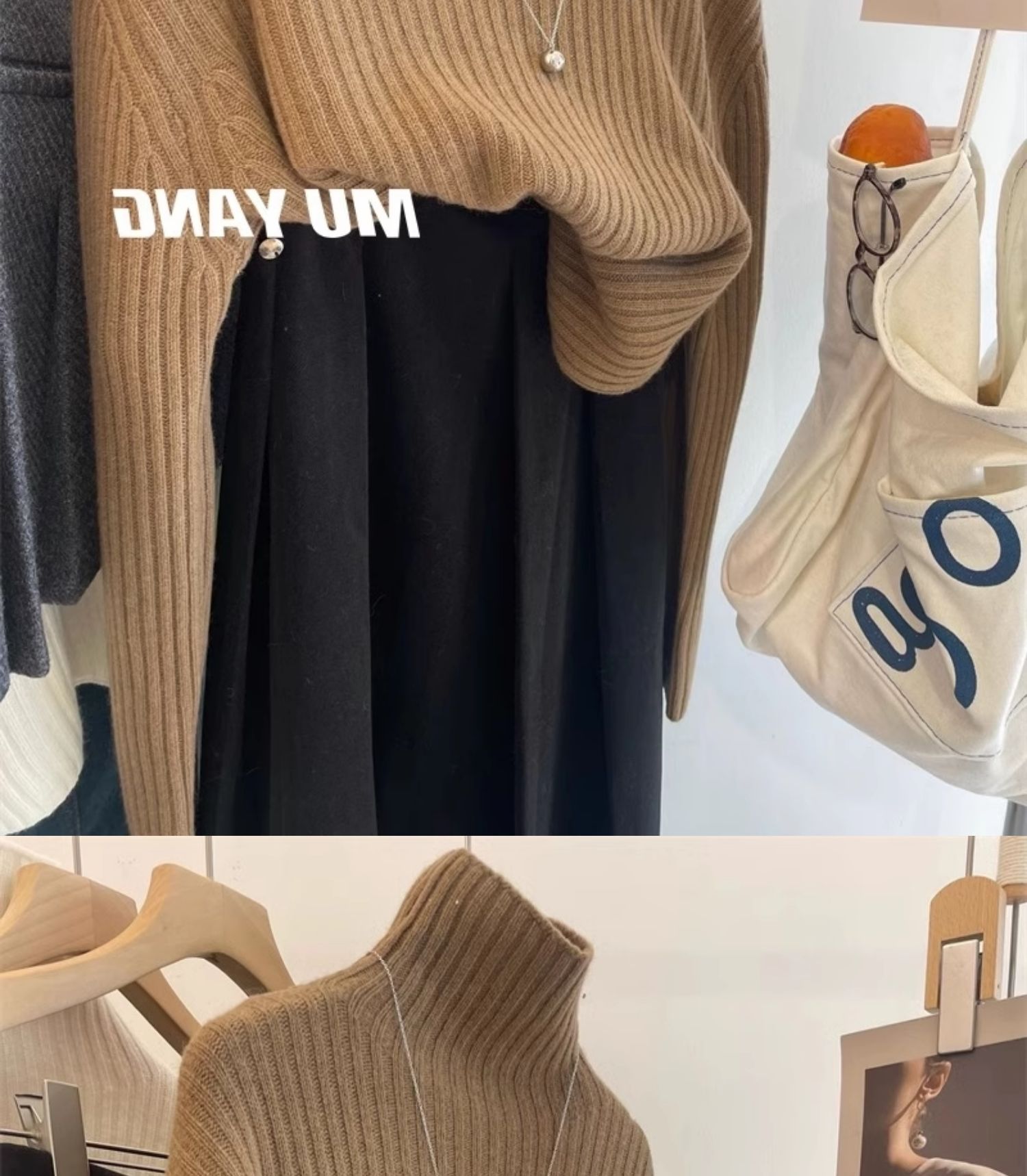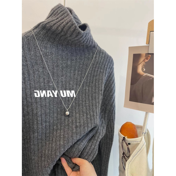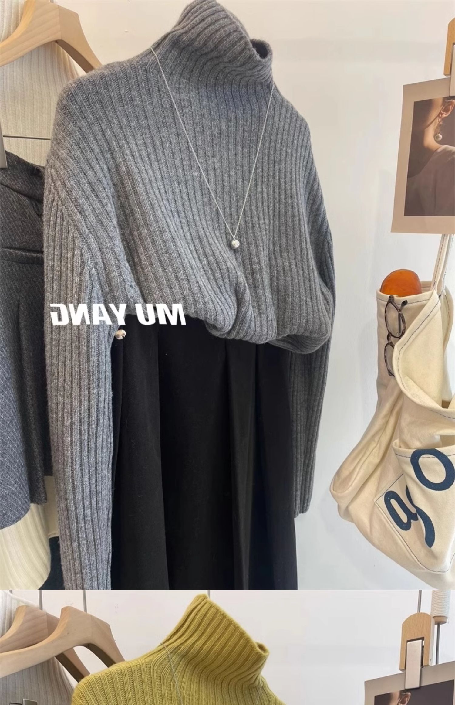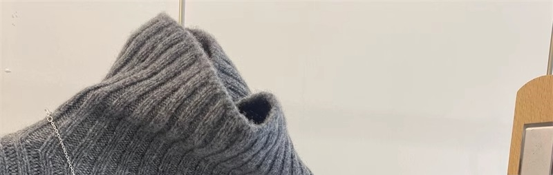 灰色高領軟糯打底毛衣女秋冬慵懶風高級感加厚寬松坑條針織衫上衣