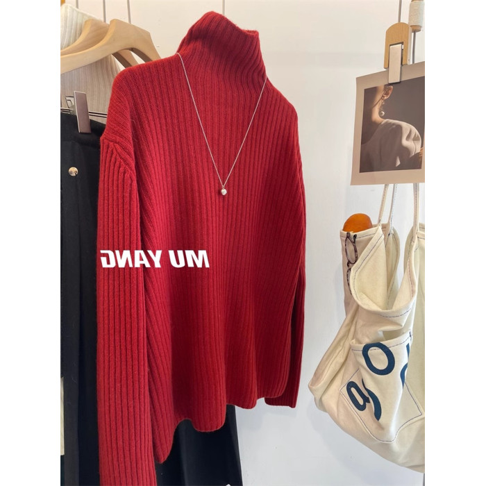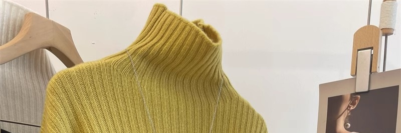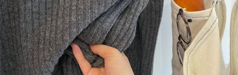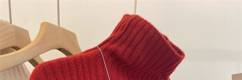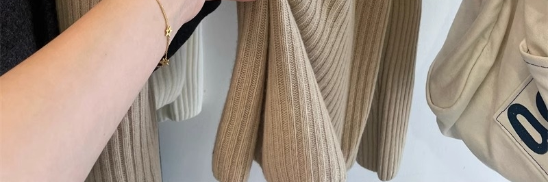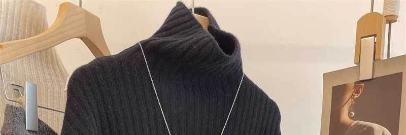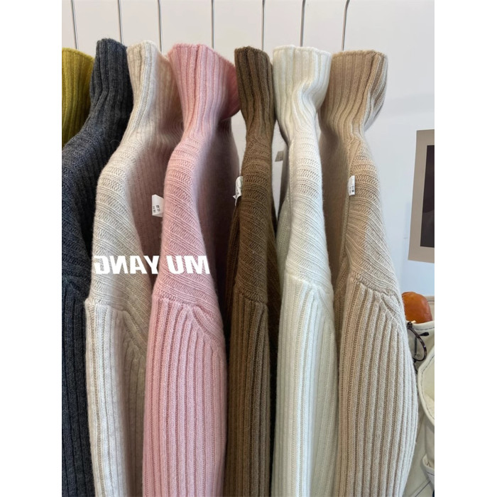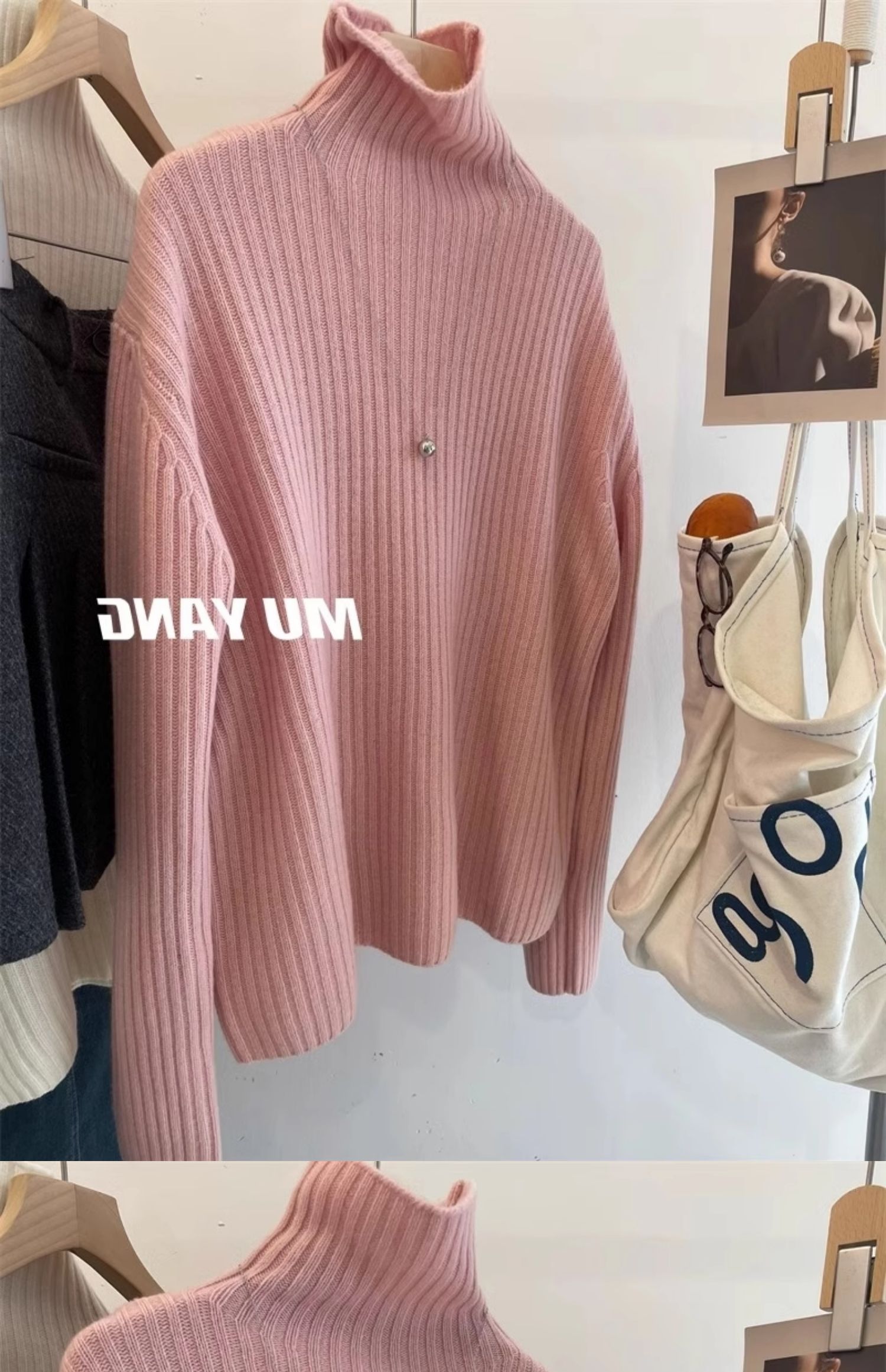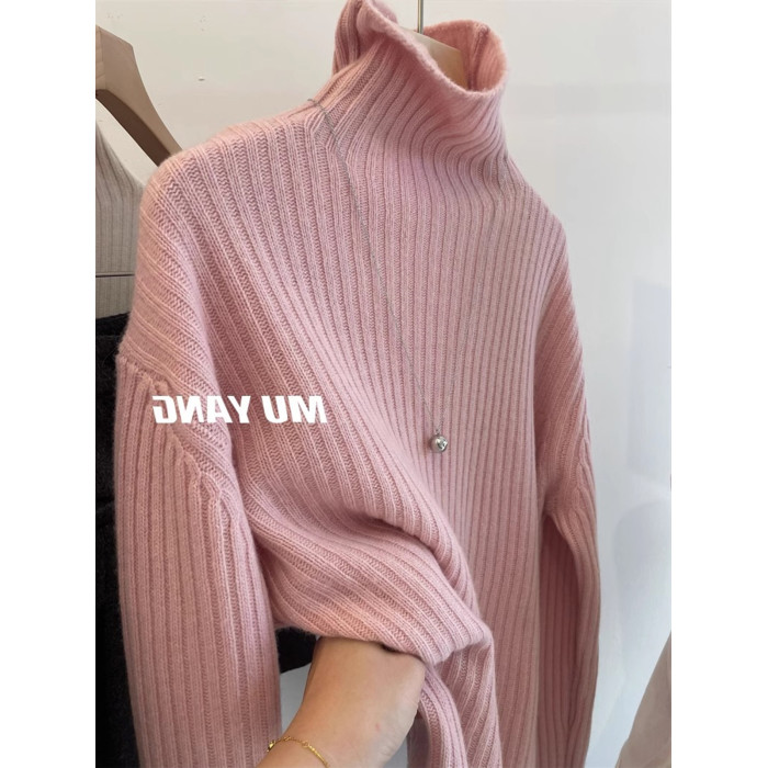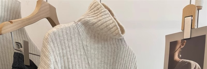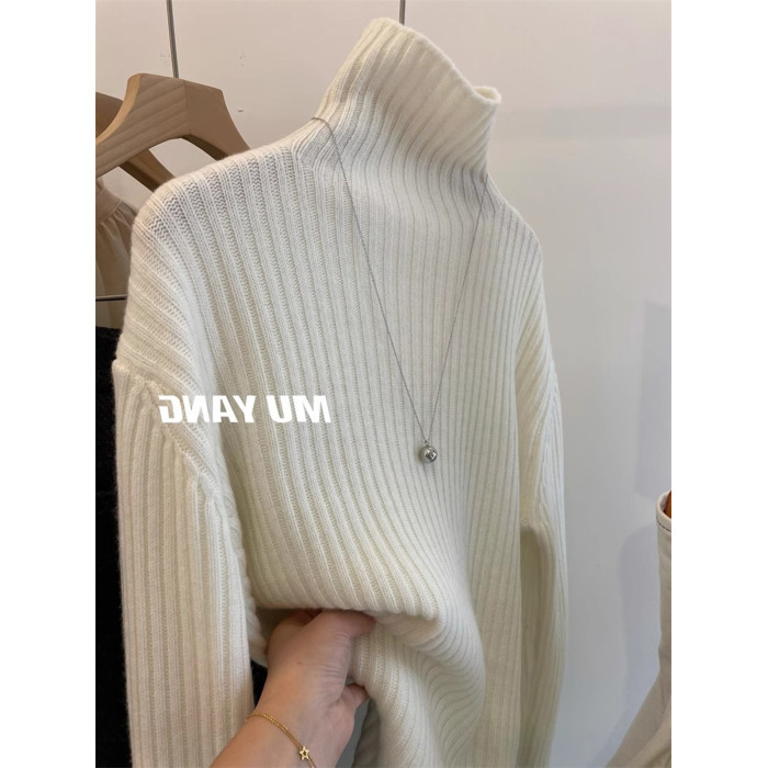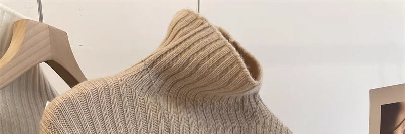 灰色高領軟糯打底毛衣女秋冬慵懶風高級感加厚寬松坑條針織衫上衣
