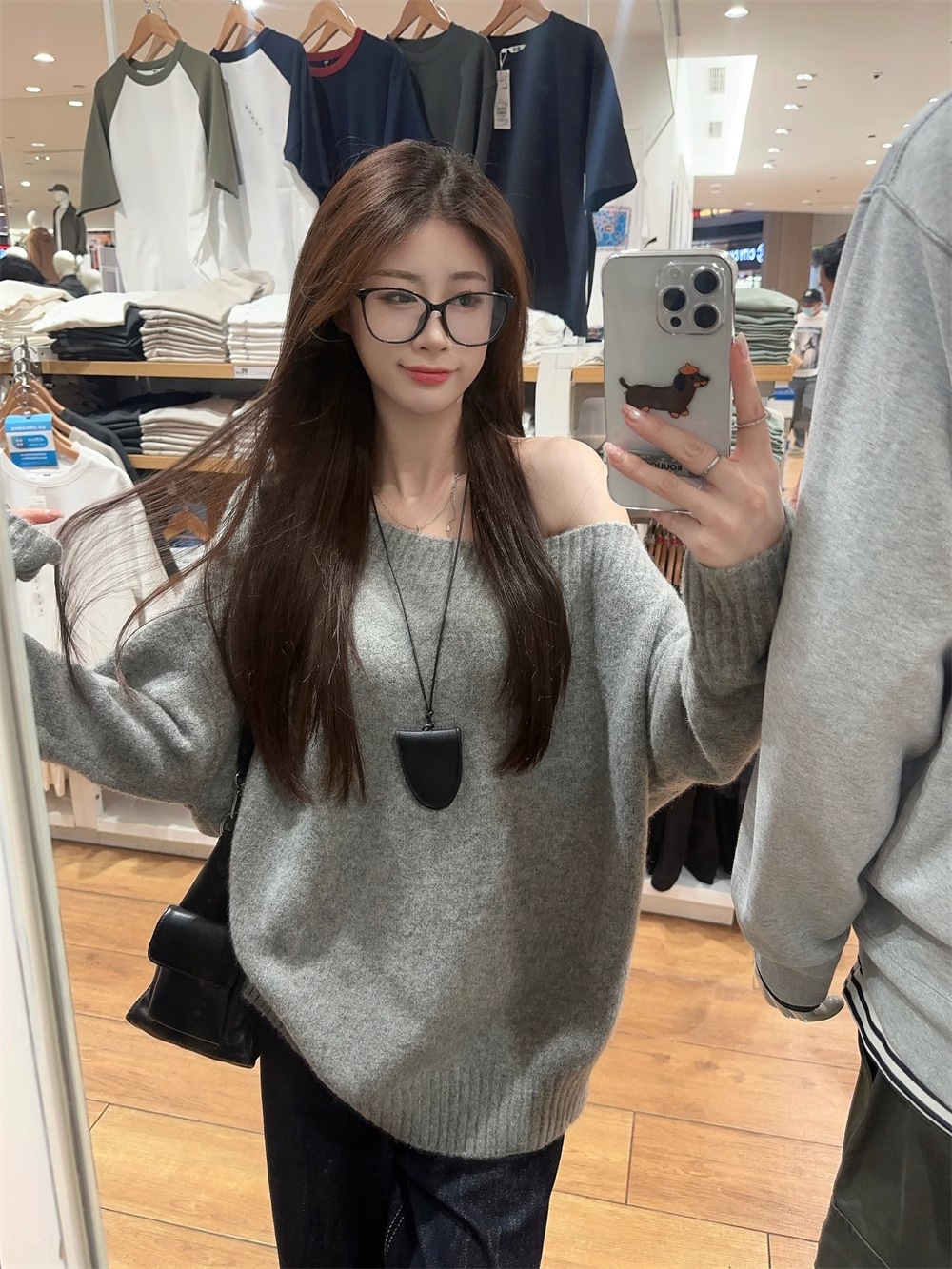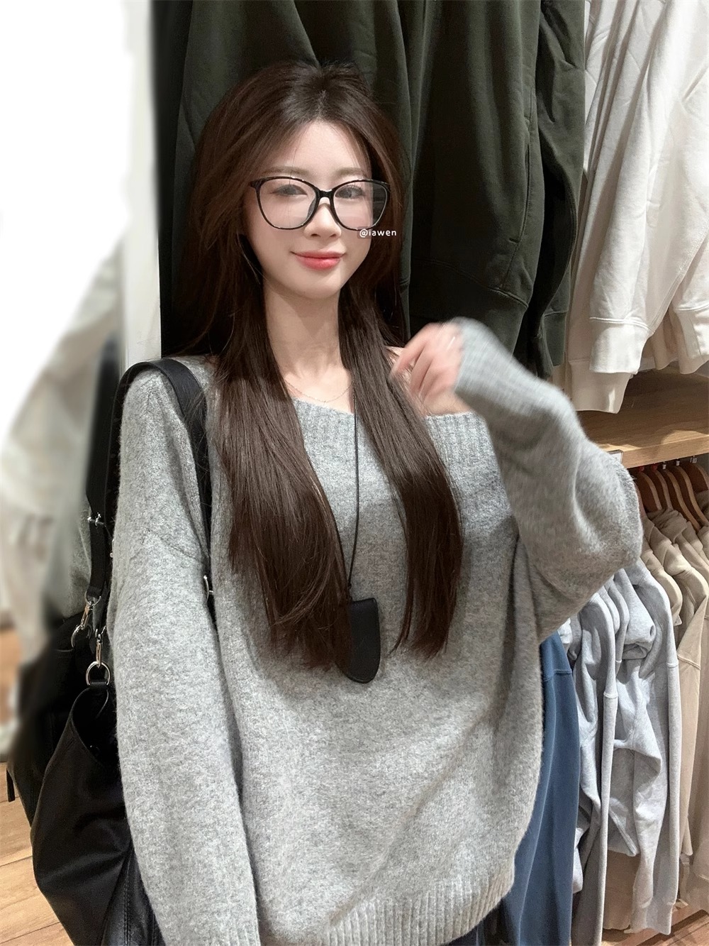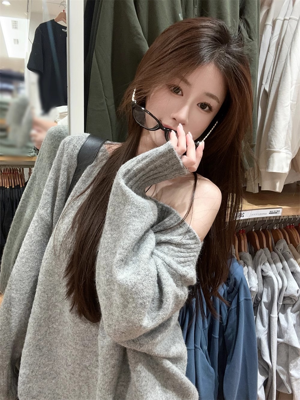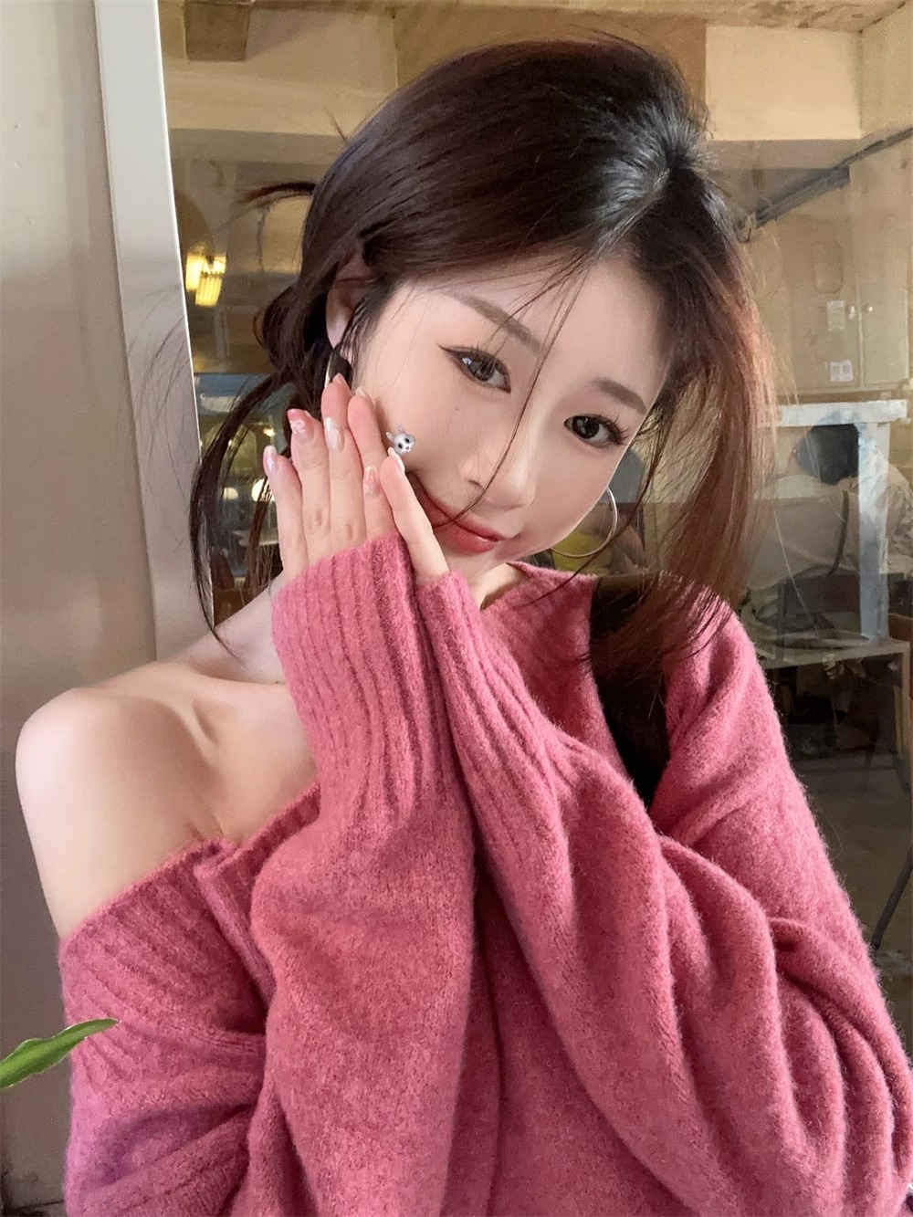 韓系慵懶風露肩套頭毛衣女2024秋季新款寬松加厚長袖針織衫上衣潮