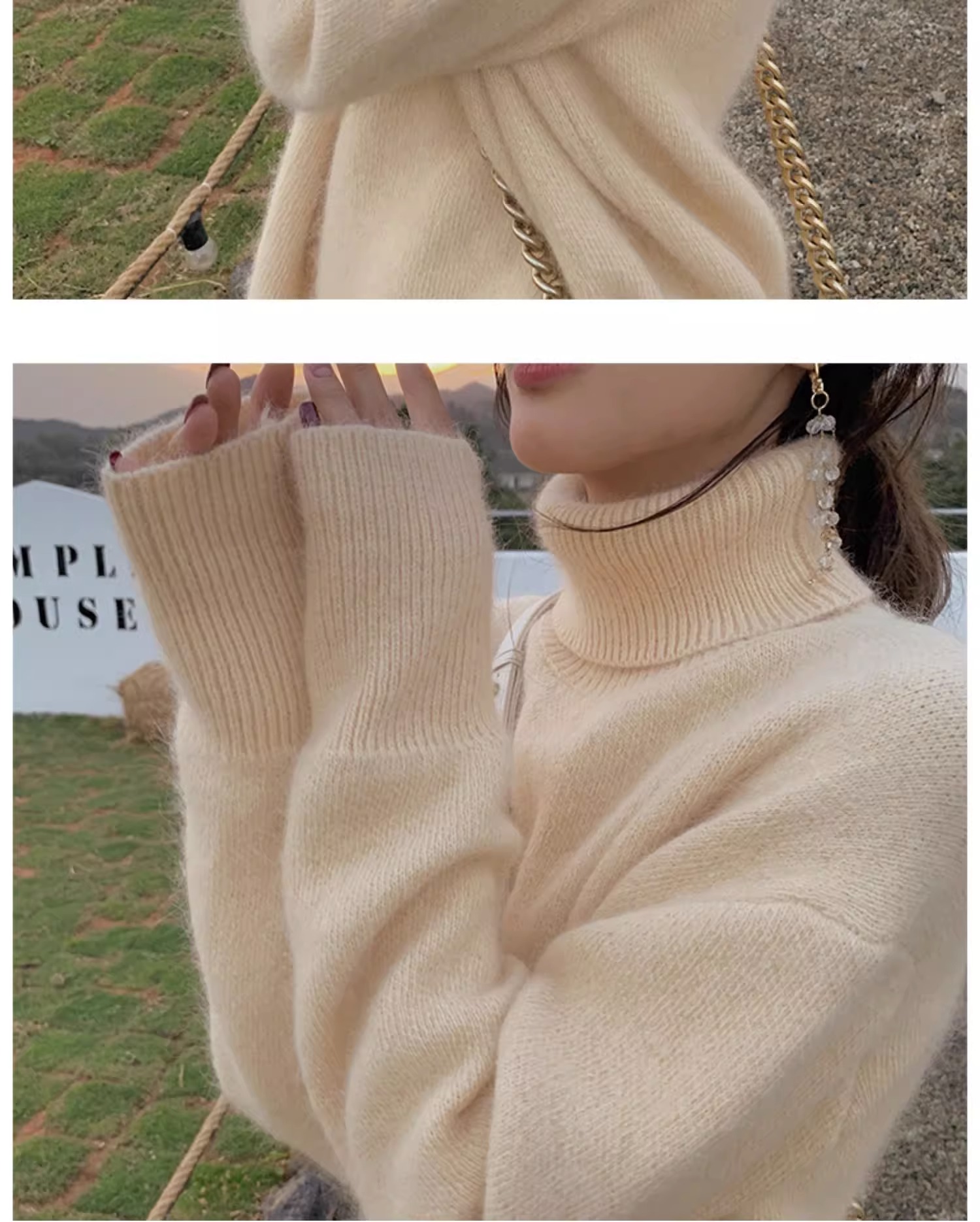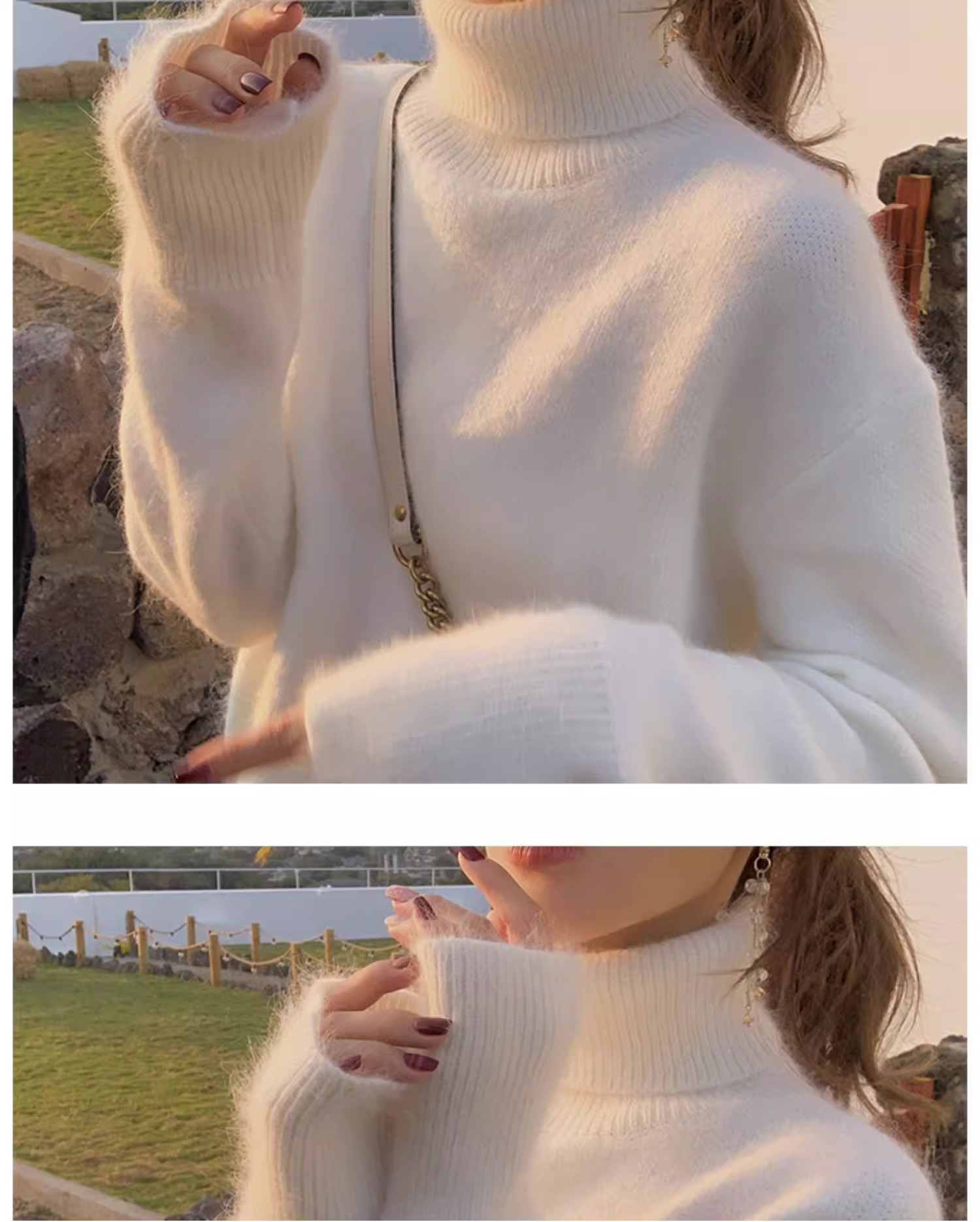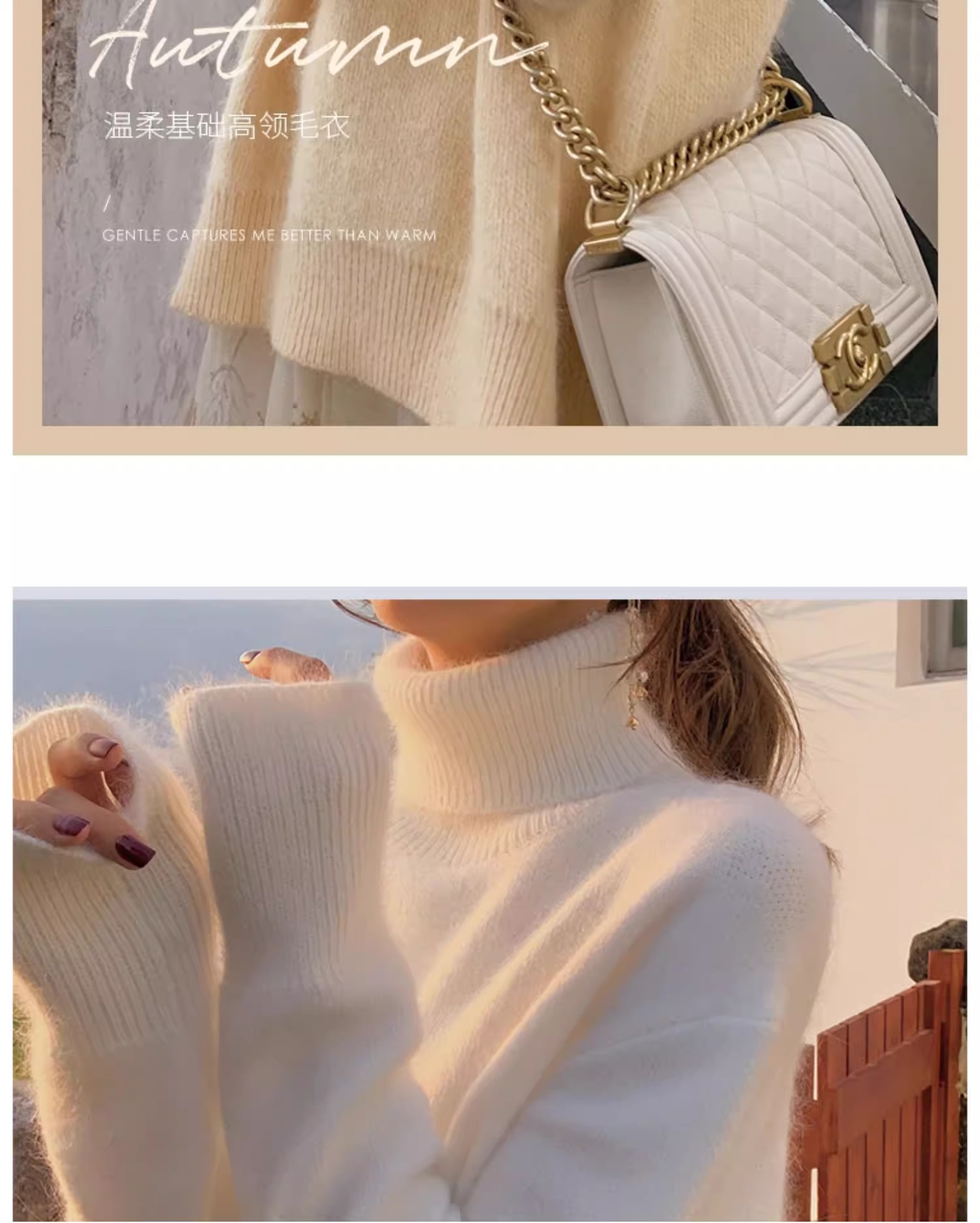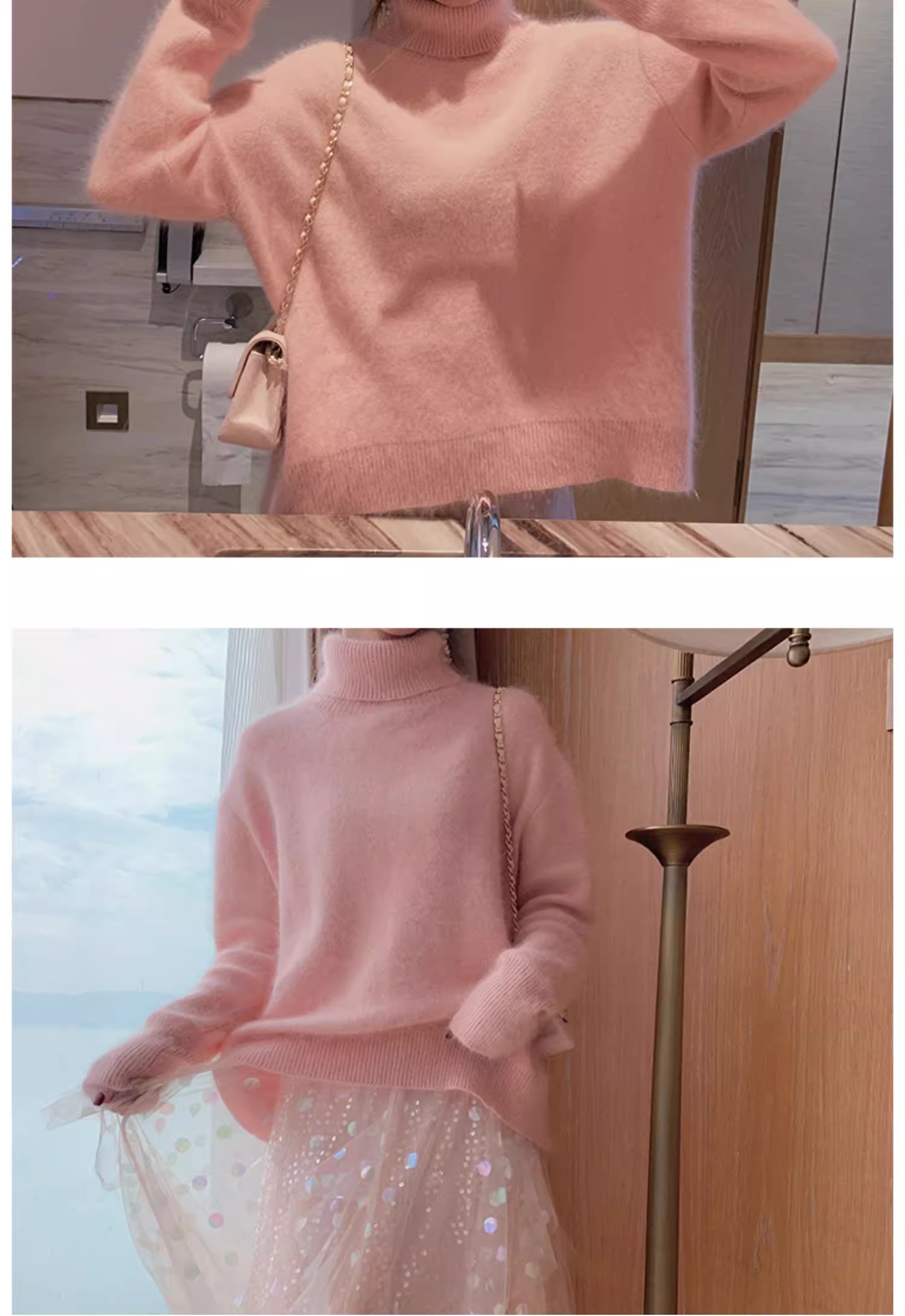 秋冬水貂絨軟糯白色高領毛衣女加厚馬海毛內搭寬松慵懶打底針織衫