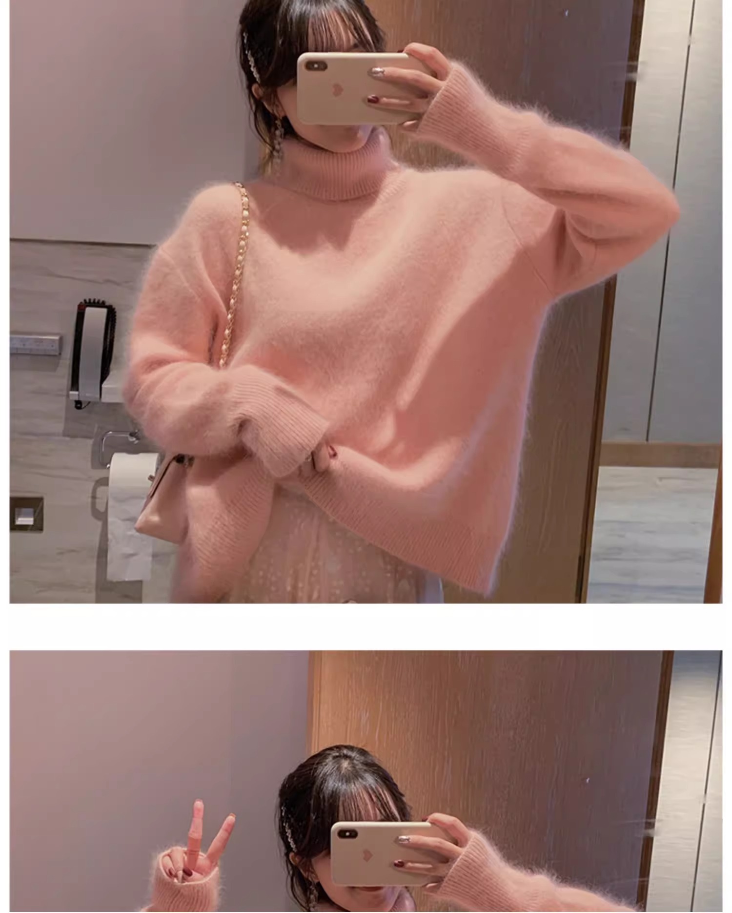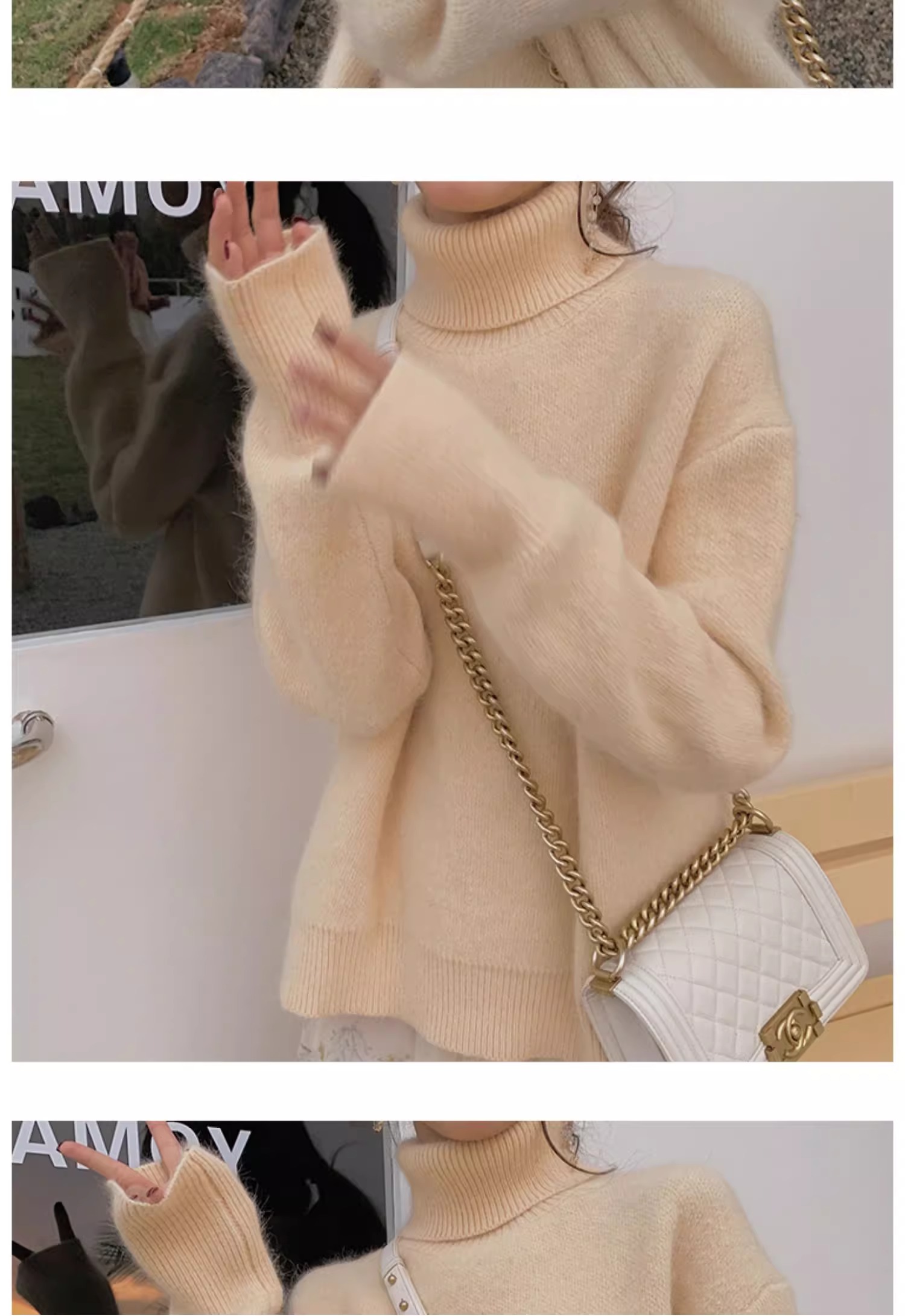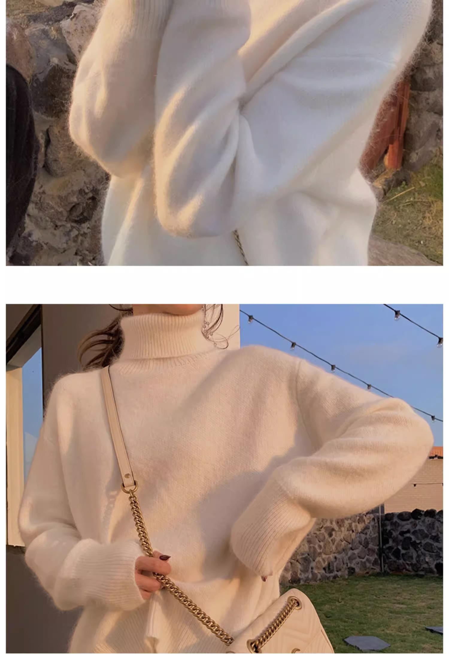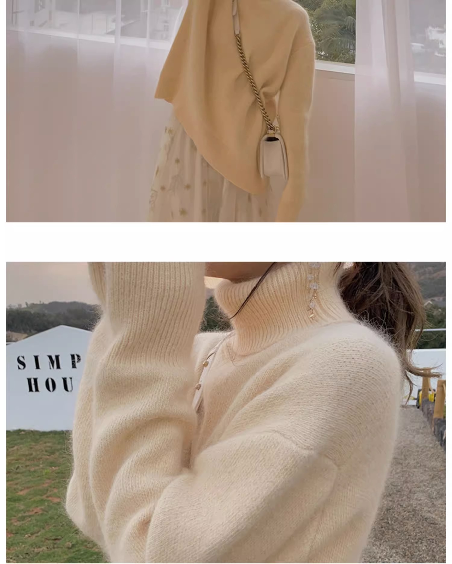 秋冬水貂絨軟糯白色高領毛衣女加厚馬海毛內搭寬松慵懶打底針織衫