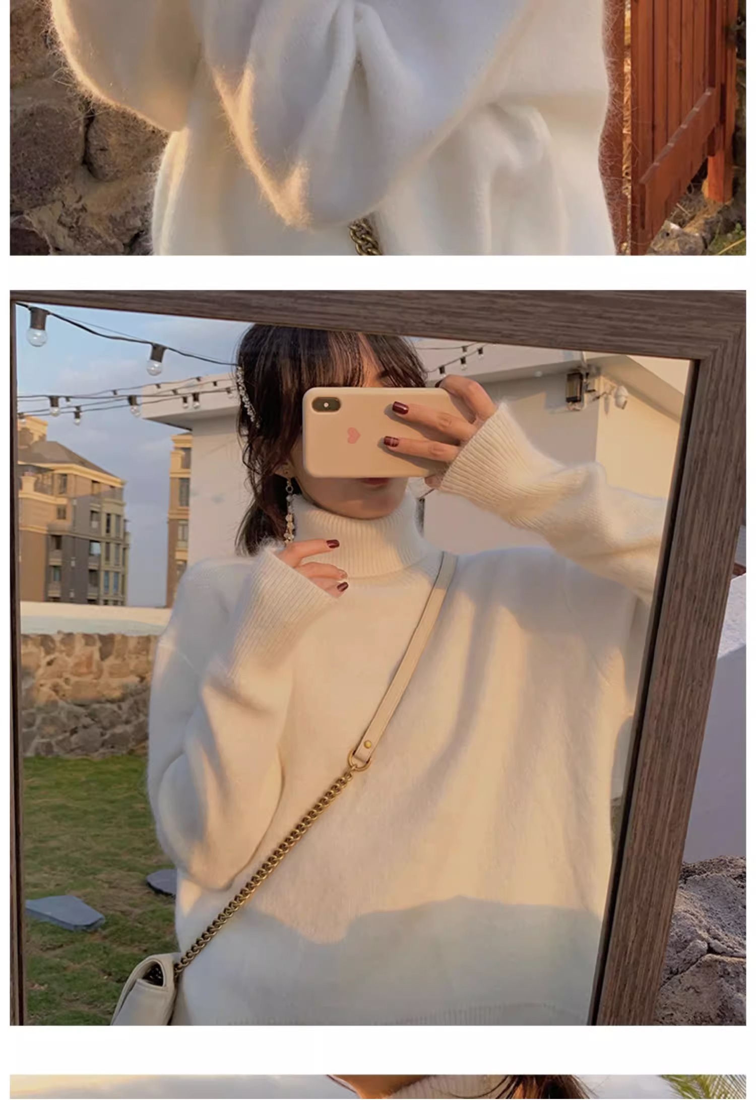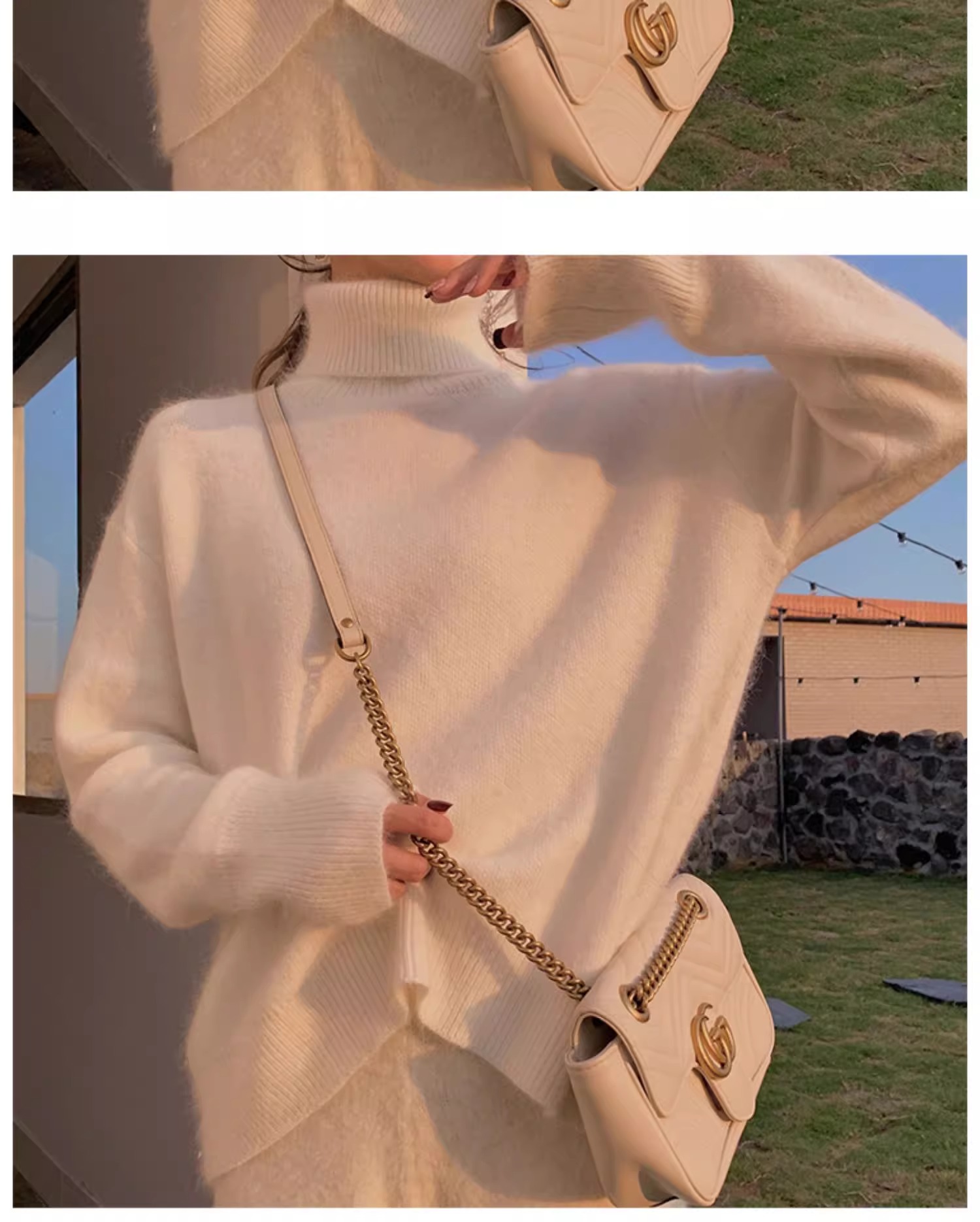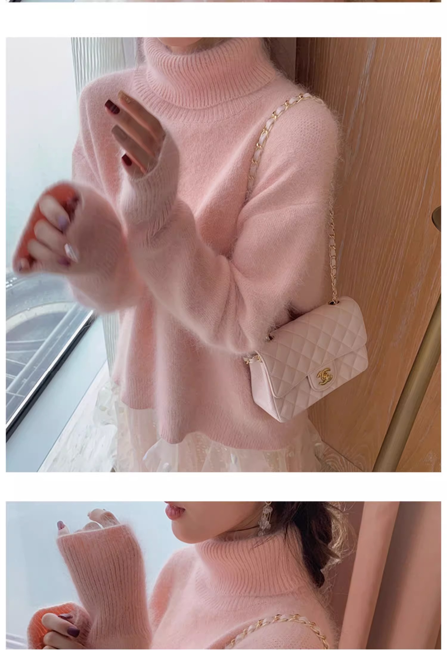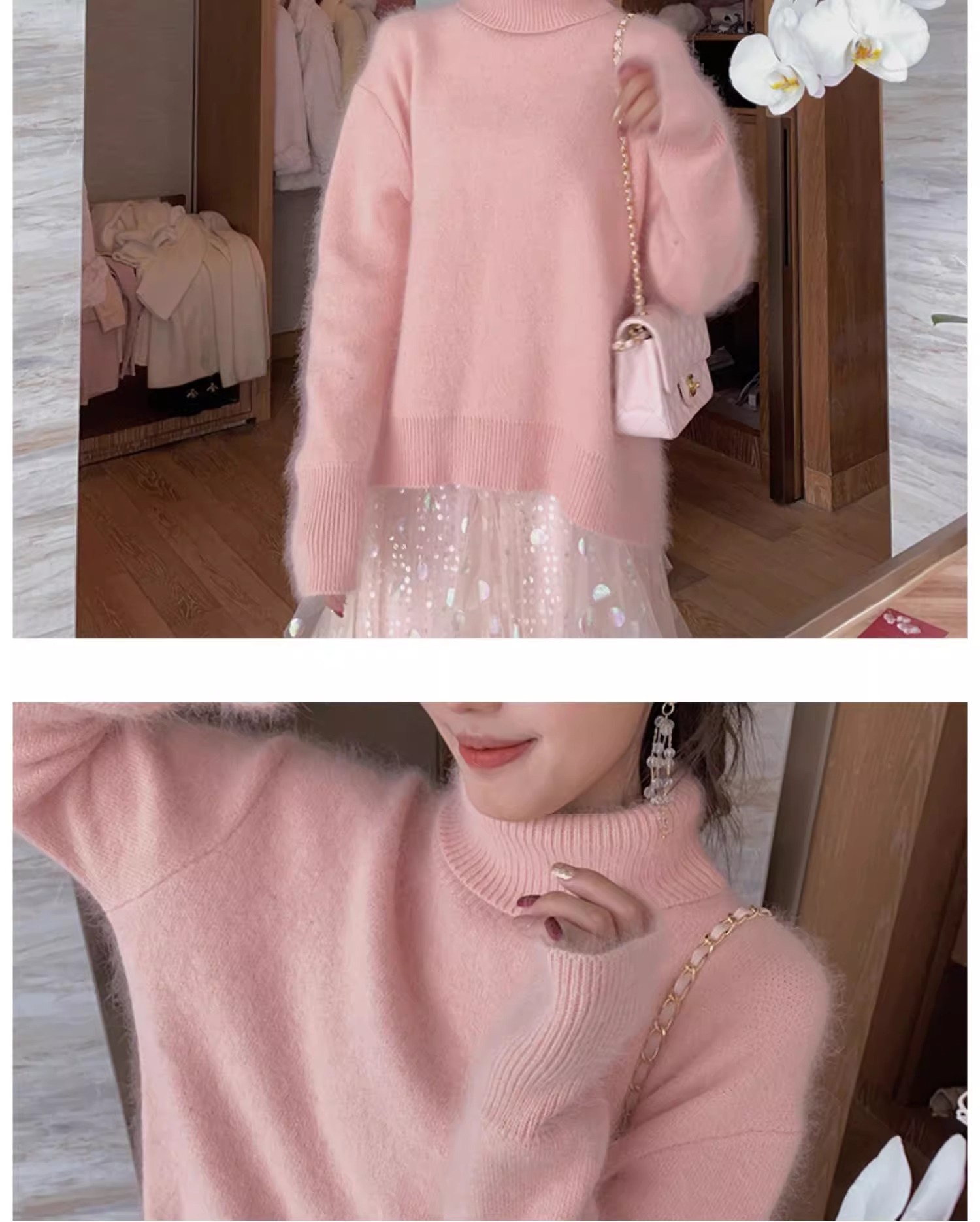 秋冬水貂絨軟糯白色高領毛衣女加厚馬海毛內搭寬松慵懶打底針織衫
