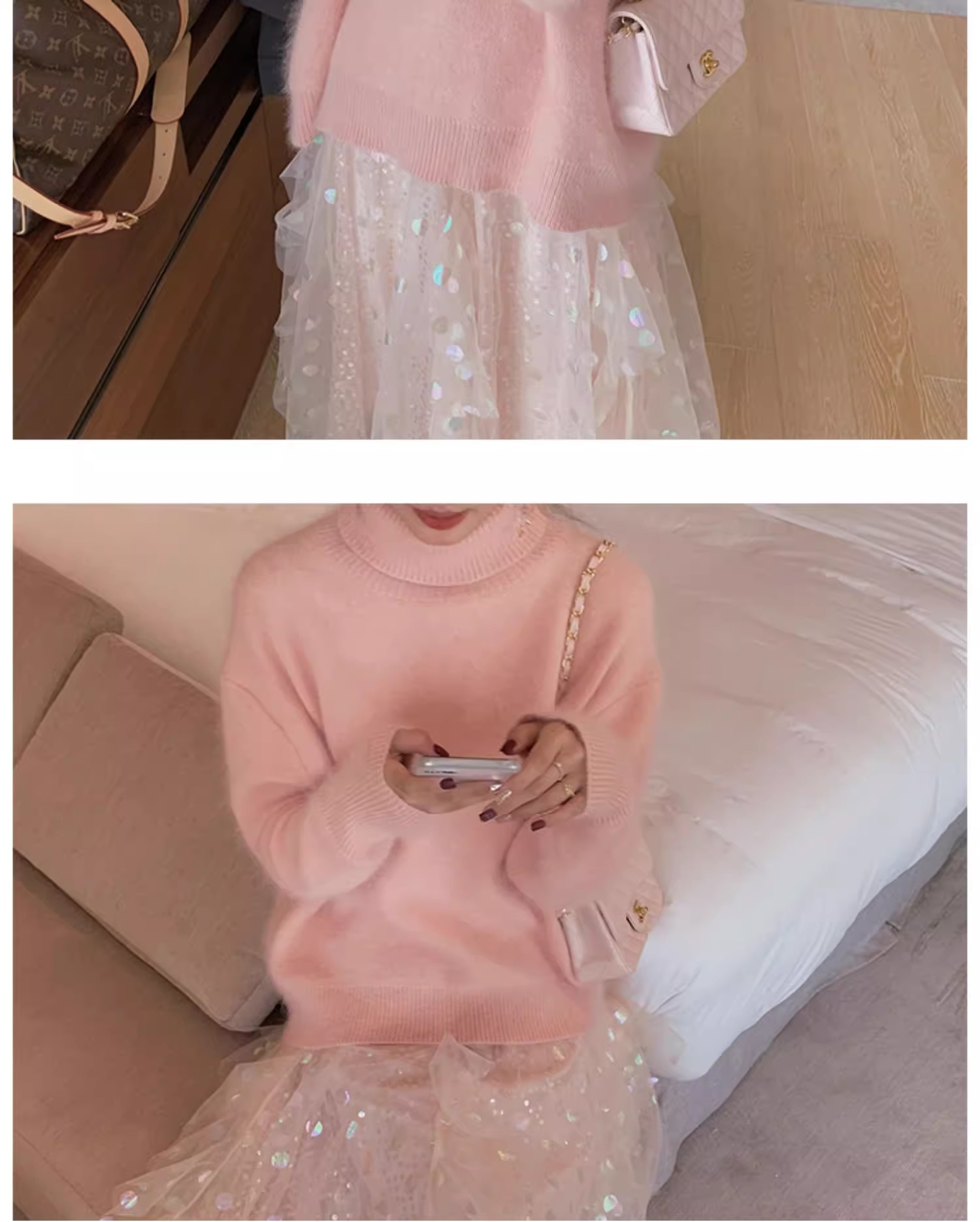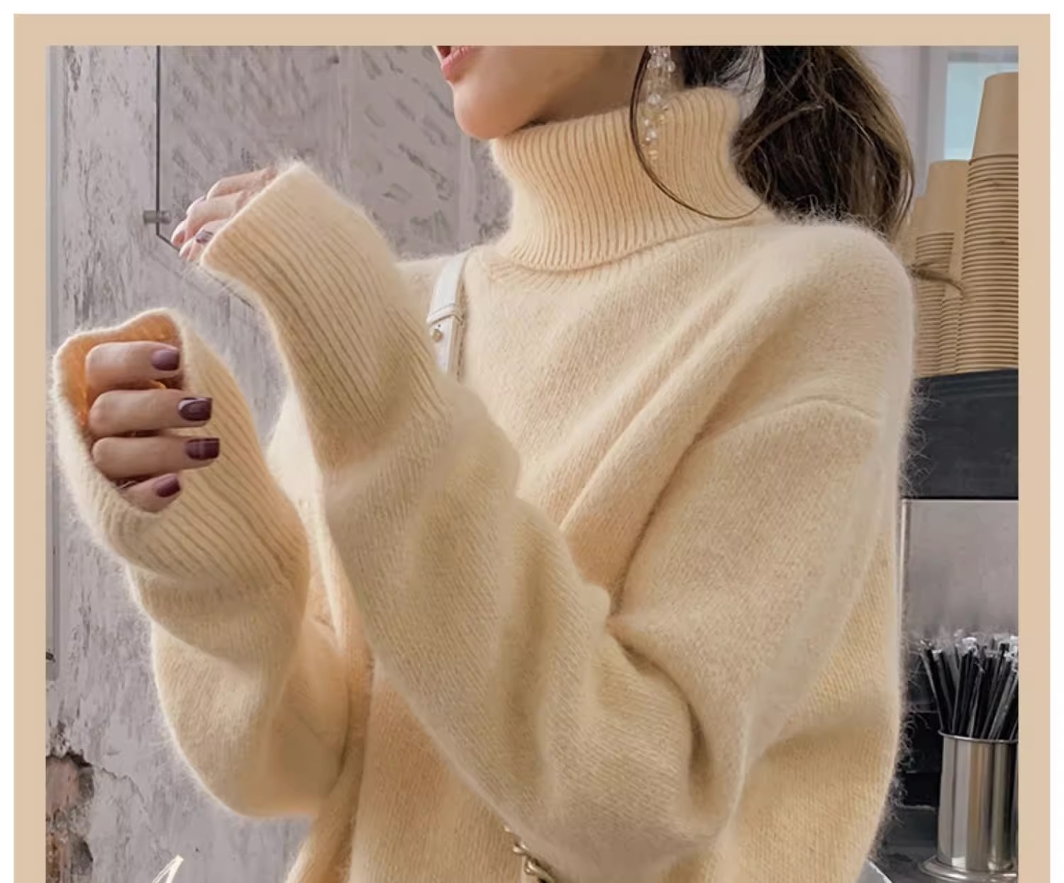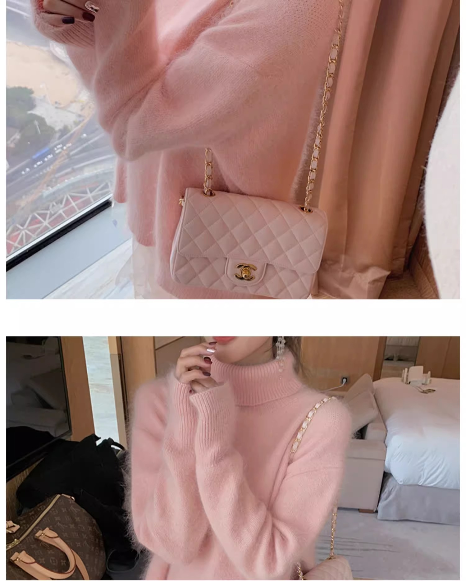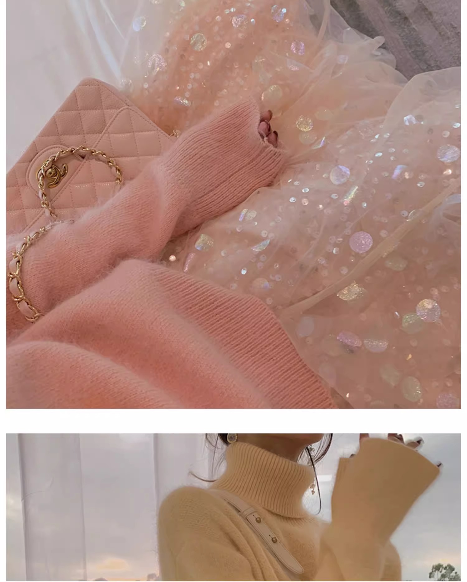秋冬水貂絨軟糯白色高領毛衣女加厚馬海毛內搭寬松慵懶打底針織衫