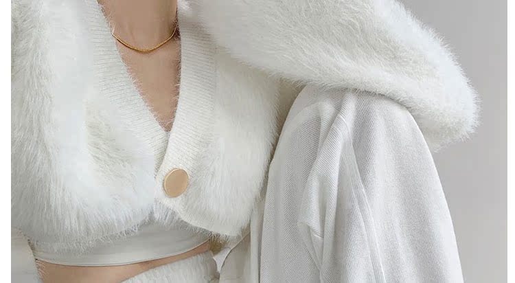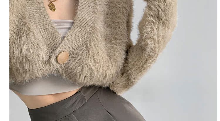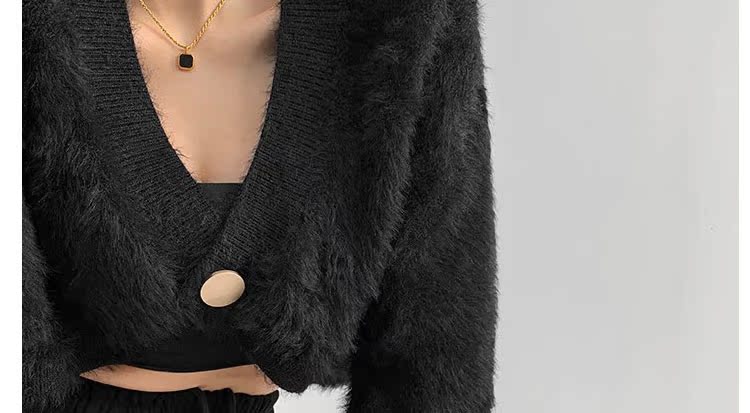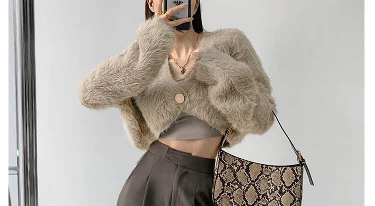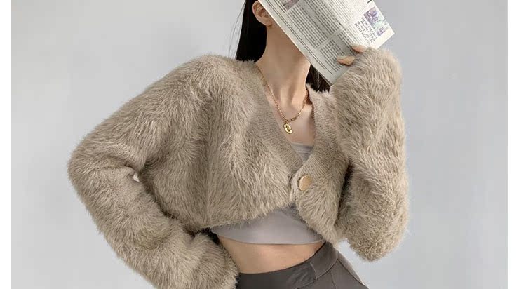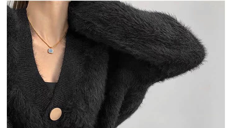 美式復古水貂絨開衫毛衣女秋冬新款慵懶風寬松百搭針織短外套上衣
