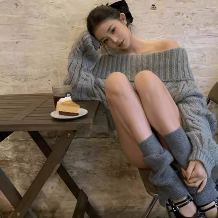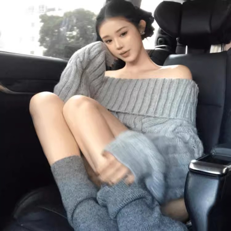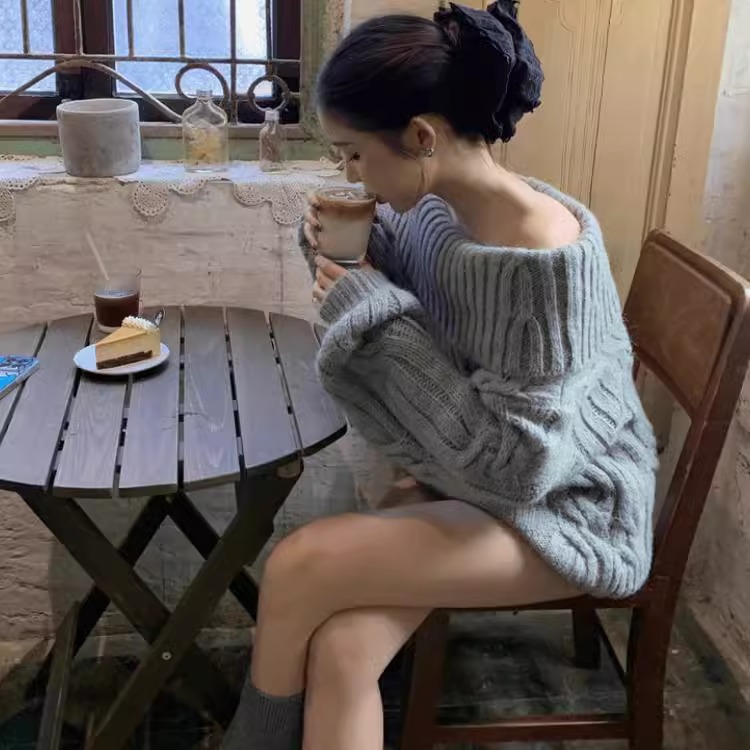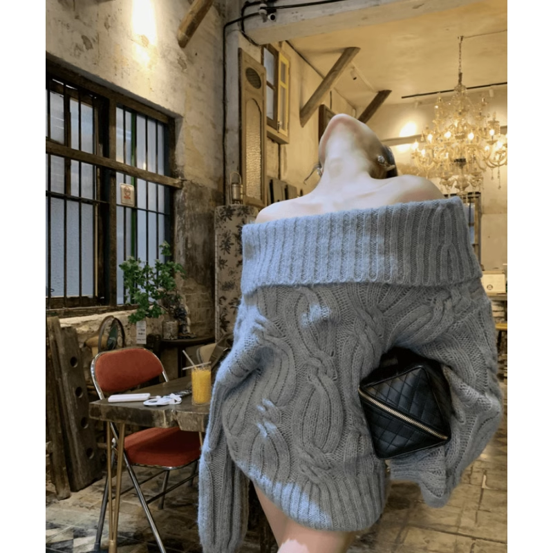 一字肩套頭毛衣女秋季慵懶風氣質小個子寬松休閒顯瘦百搭長袖上衣