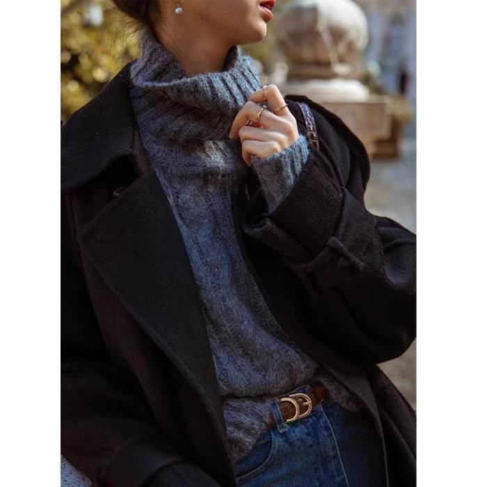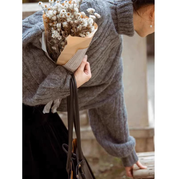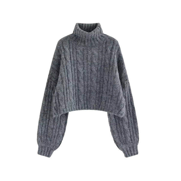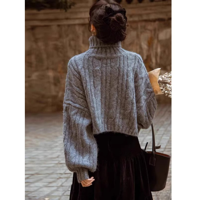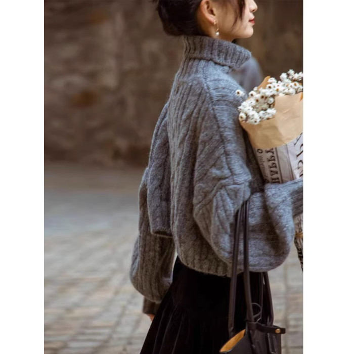 慵懶風灰色高領短款毛衣女秋冬2025新款休閒寬松港味復古chic上衣