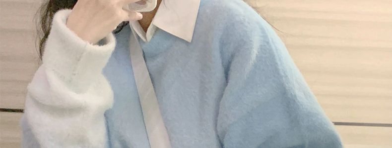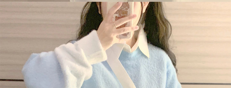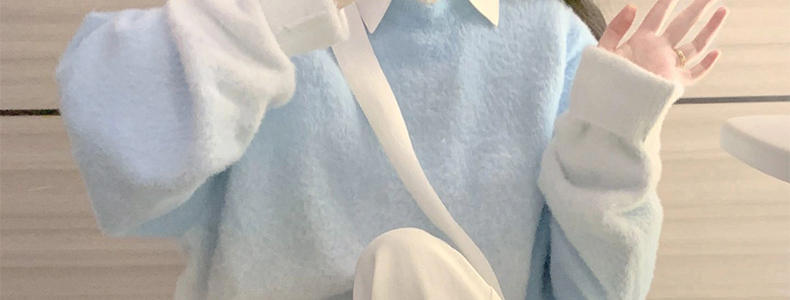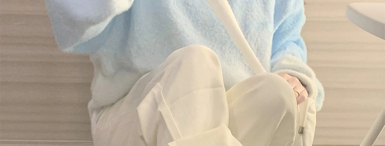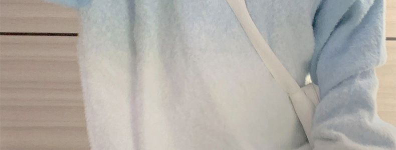 加厚漸變藍色毛衣女春秋季2025新款設計感套頭內搭針織打底衫上衣