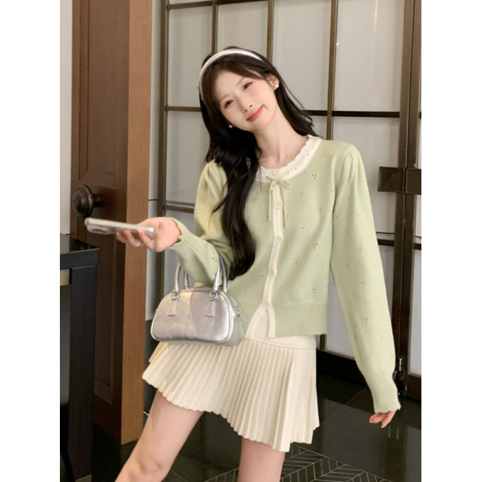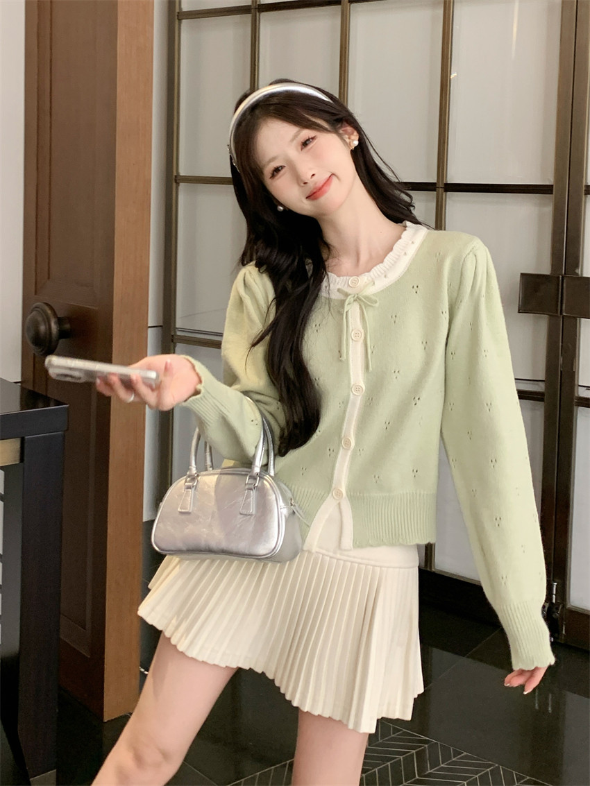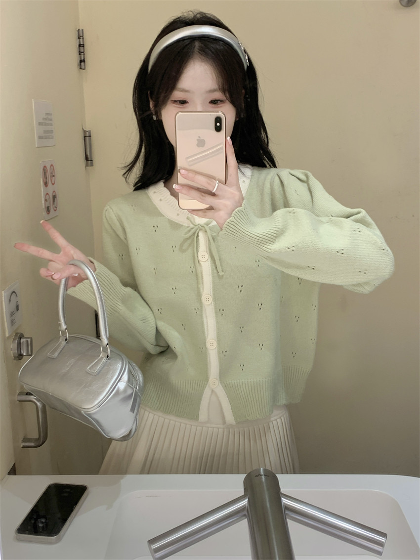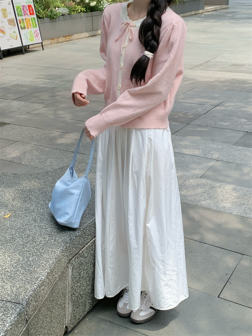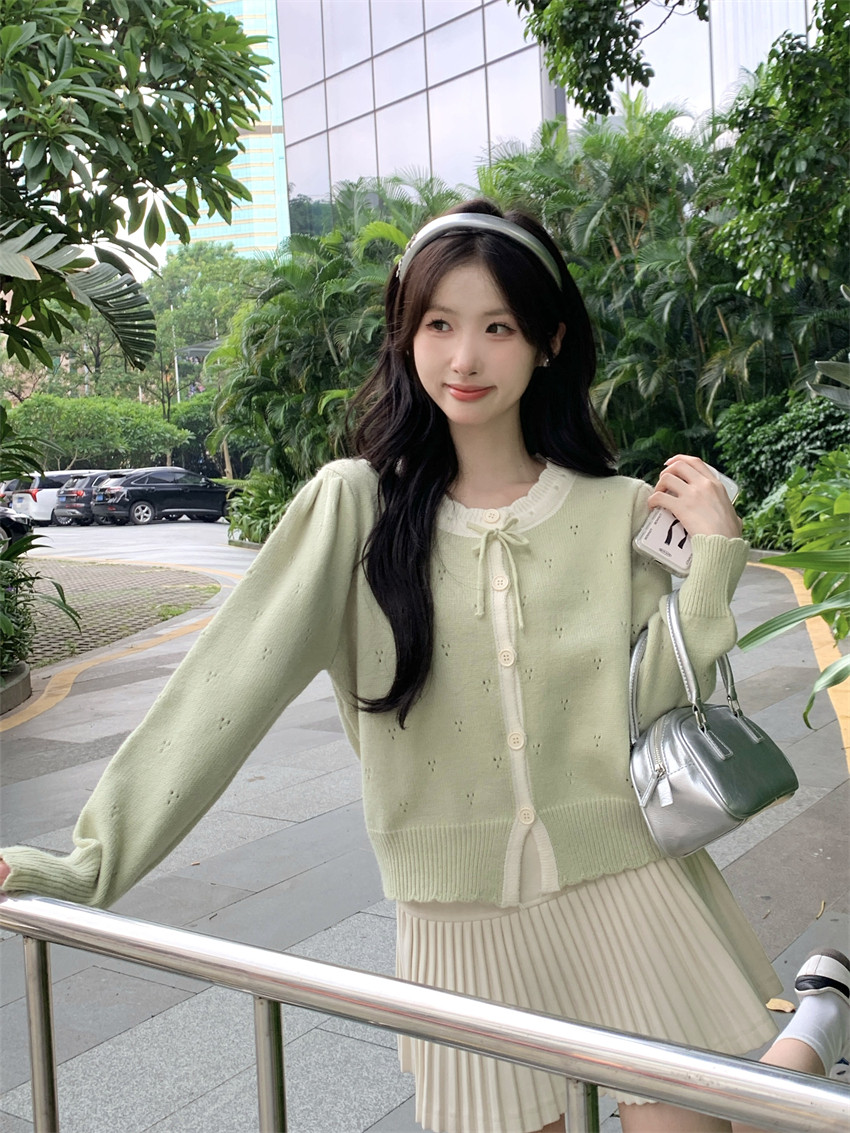 時尚溫柔粉色毛衣外套女秋季2025新款蝴蝶結寬鬆軟糯甜美針織開衫