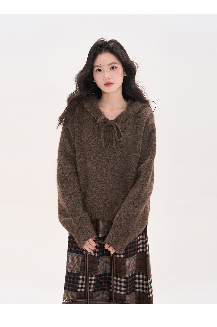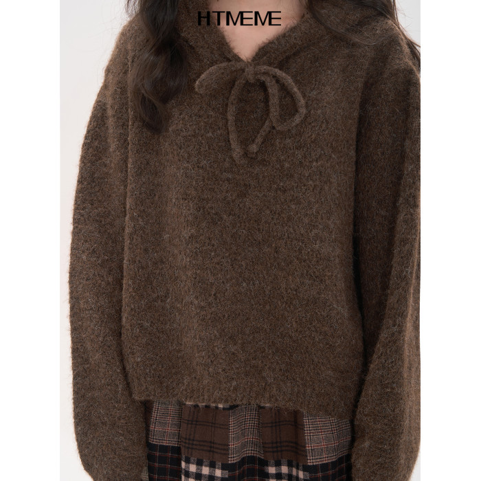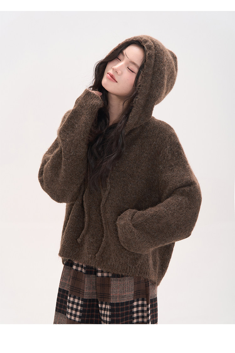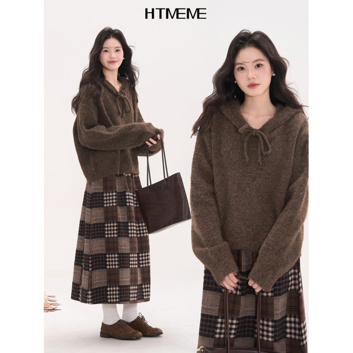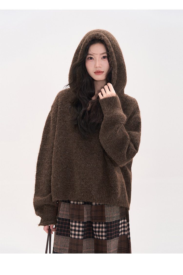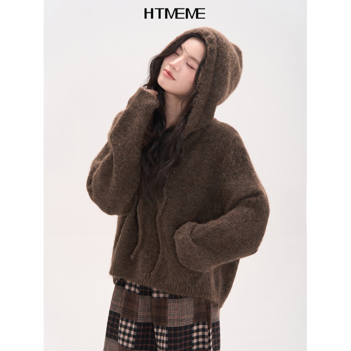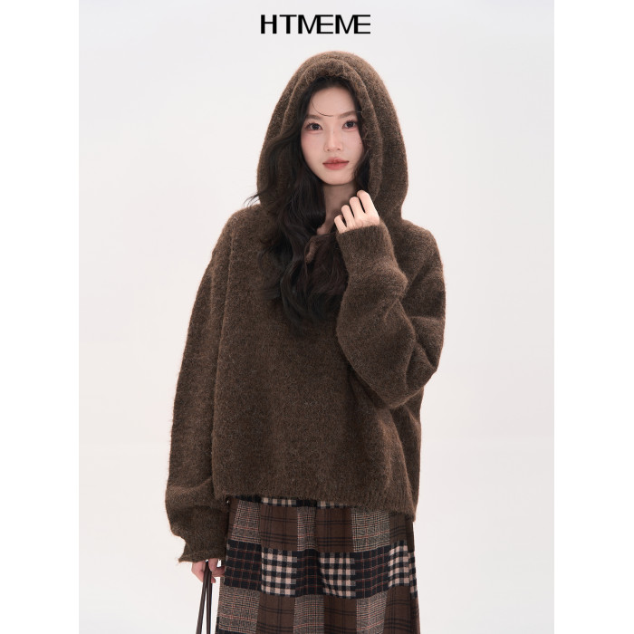 花田櫥窗HTmeme 香草冰淇淋~秋冬連帽設計針織毛衣加厚罩衫上衣女
