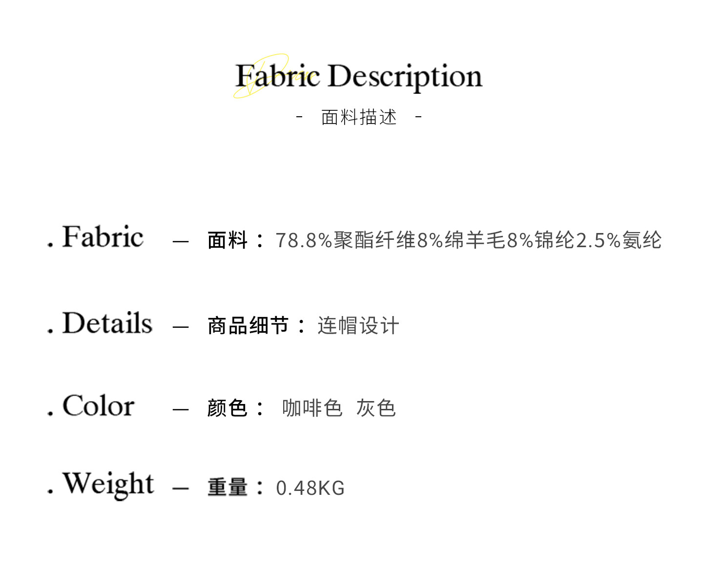 材質成分 聚酯纖維78.8% 綿羊毛8% 聚醯胺纖維(錦綸)8% 聚氨酯彈性纖維(氨綸)5.2%