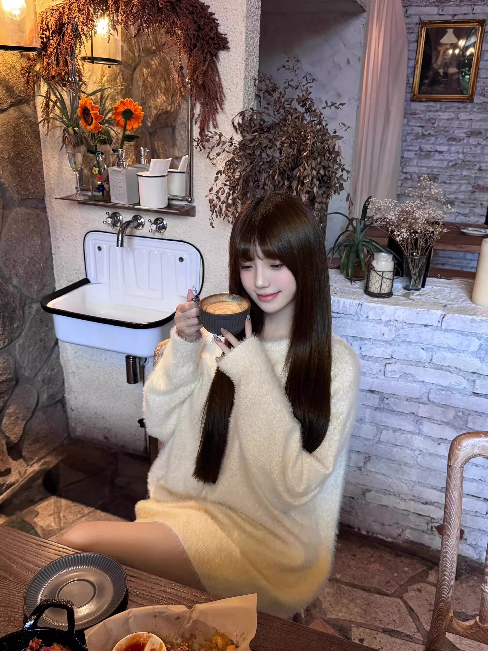 白色蝴蝶結斜肩馬海毛套頭毛衣女秋冬慵懶設計感寬松露肩針織上衣