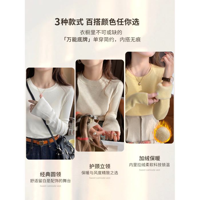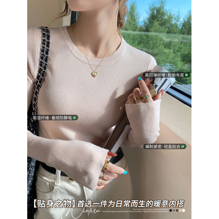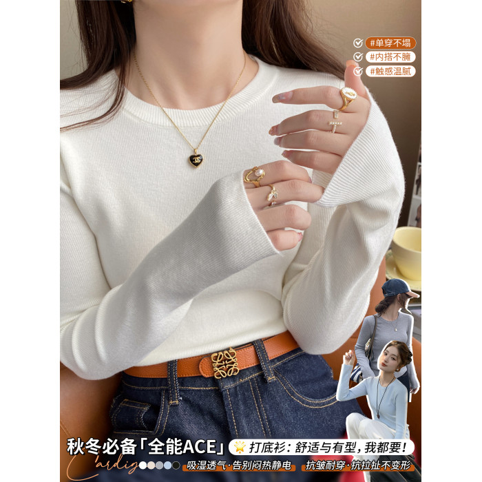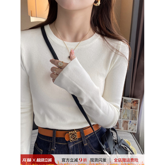 白色圓領小香風針織打底衫女內搭2025秋冬季新款修身毛衣長袖上衣