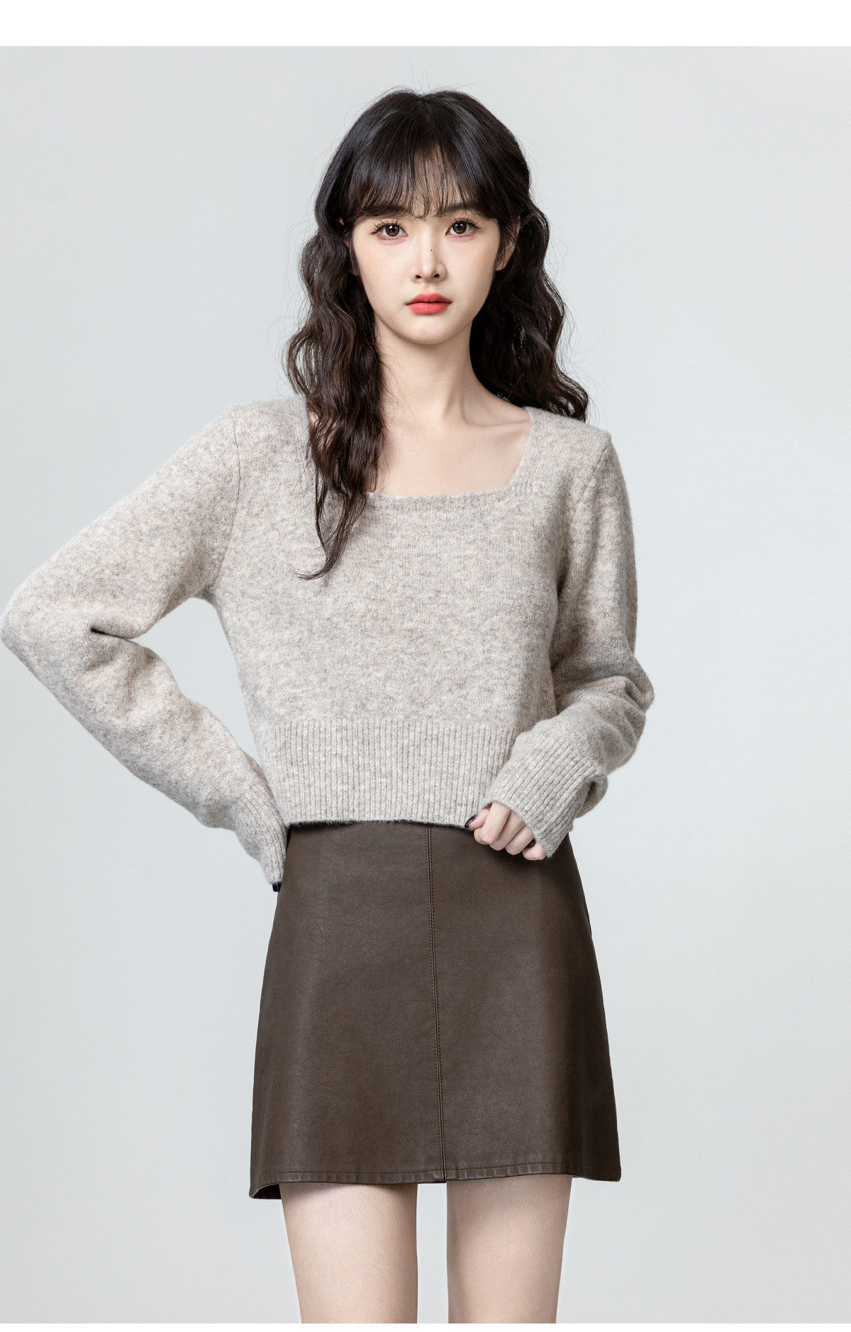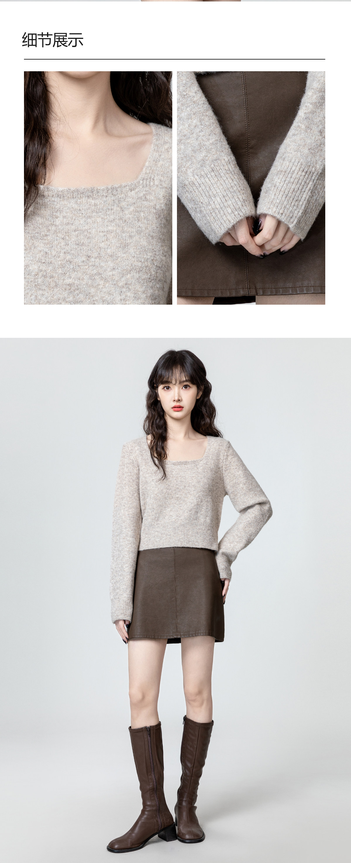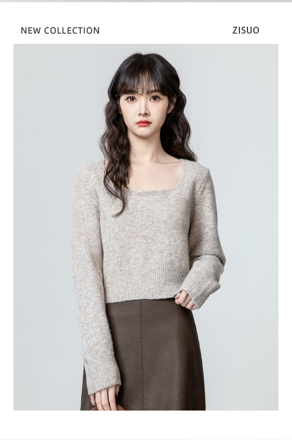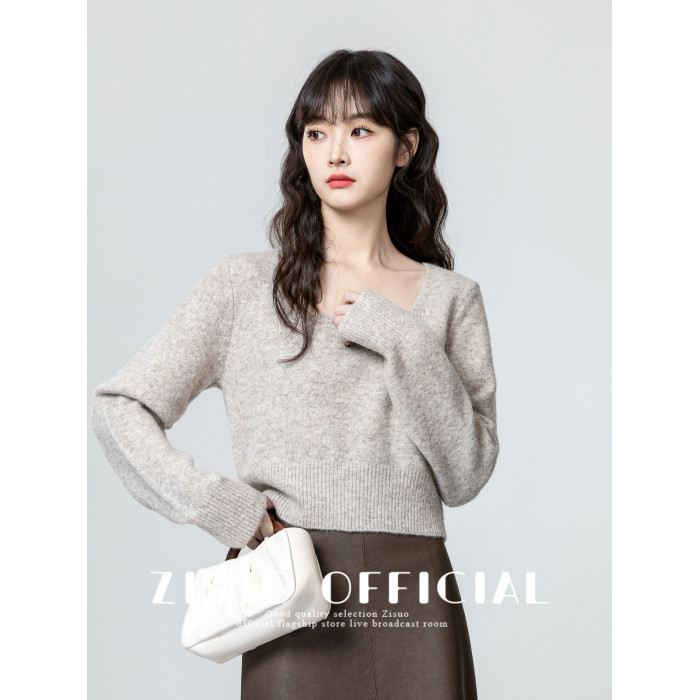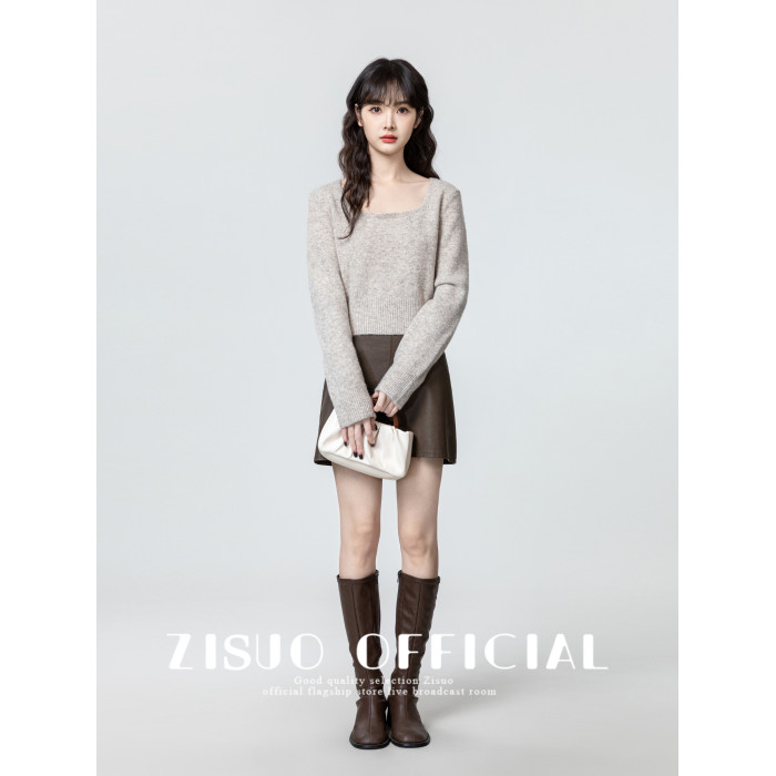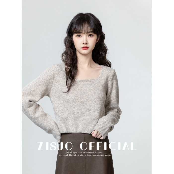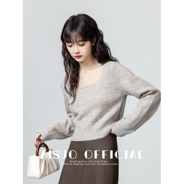 燕麥色方領毛衣女2026春秋新款設計感收腰顯瘦針織衫內搭短款上衣