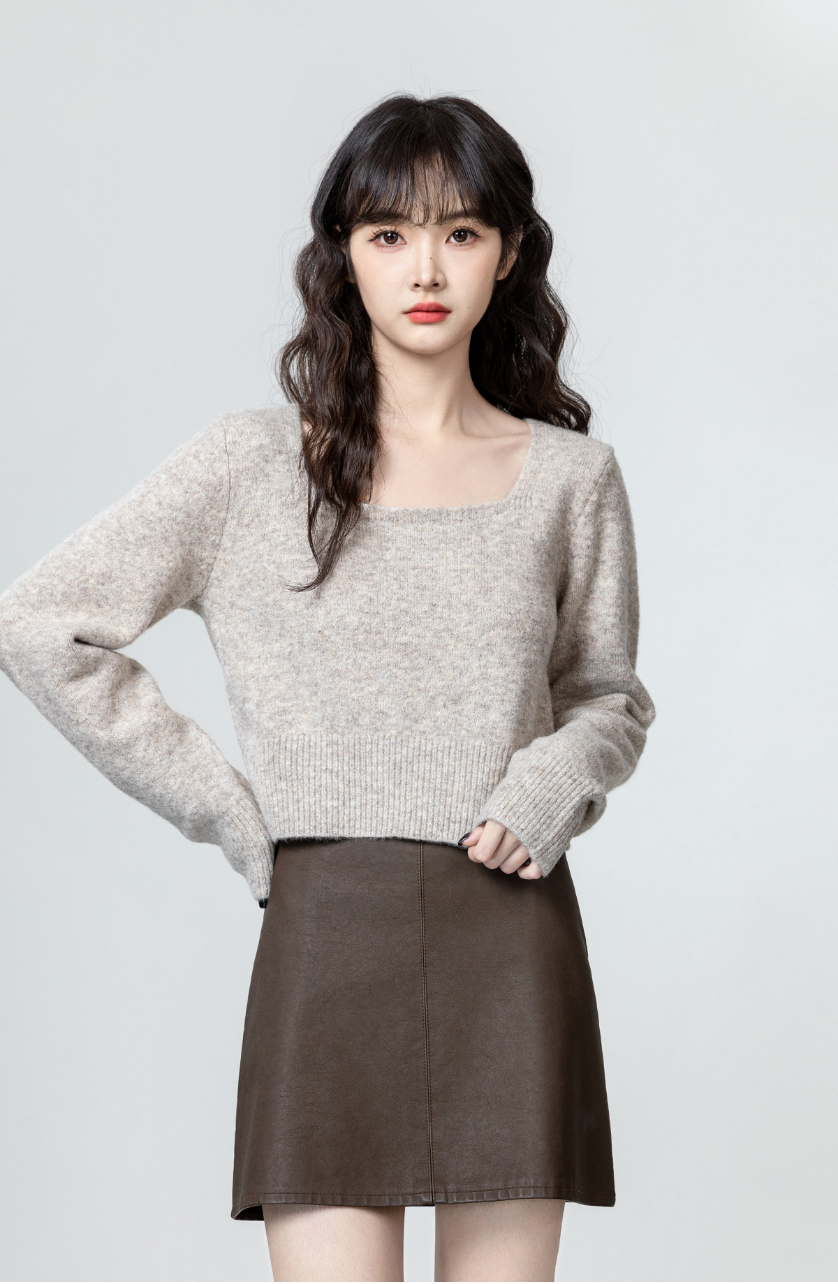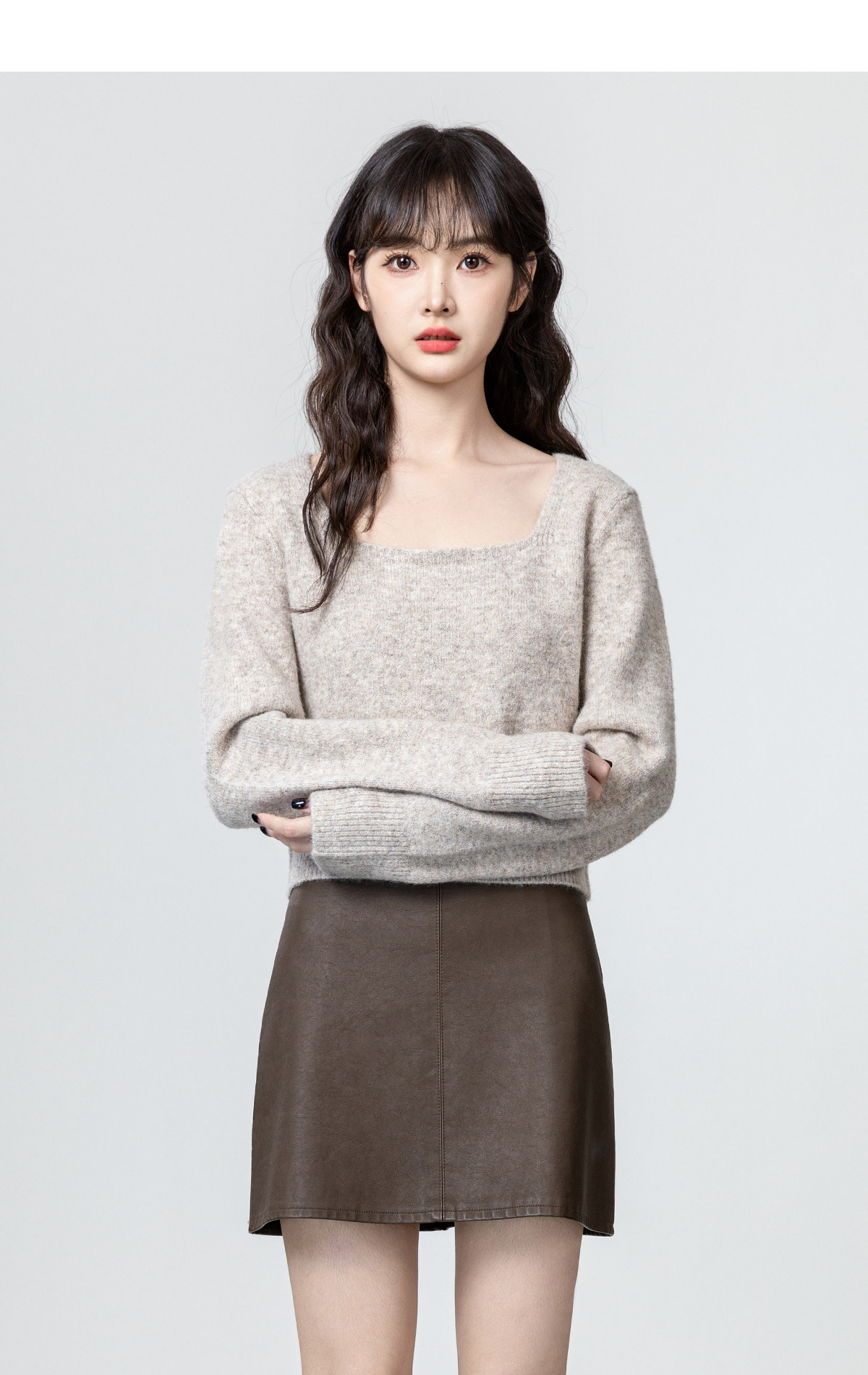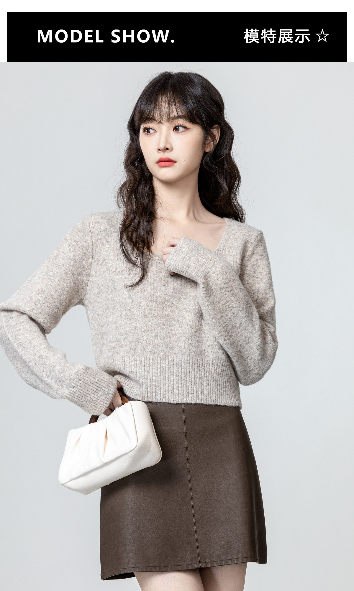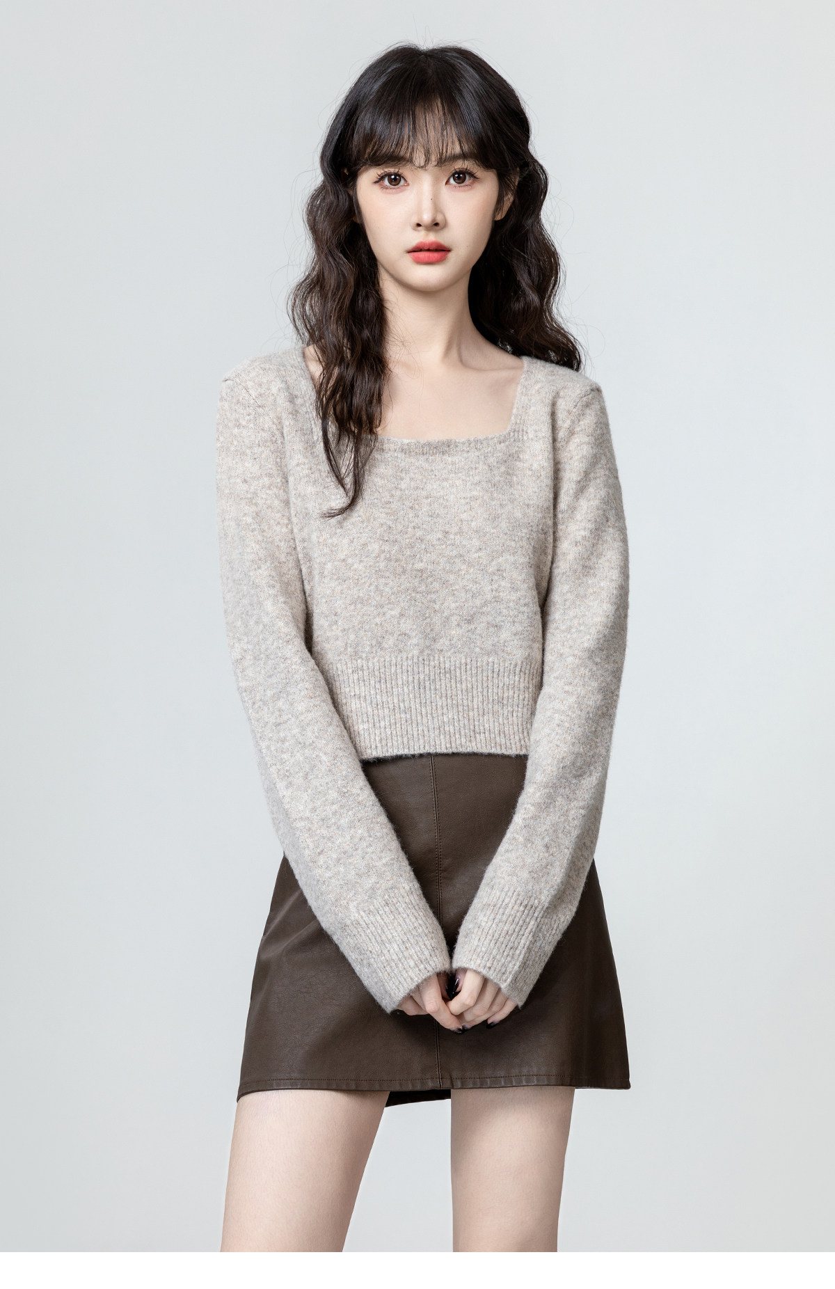 燕麥色方領毛衣女2026春秋新款設計感收腰顯瘦針織衫內搭短款上衣