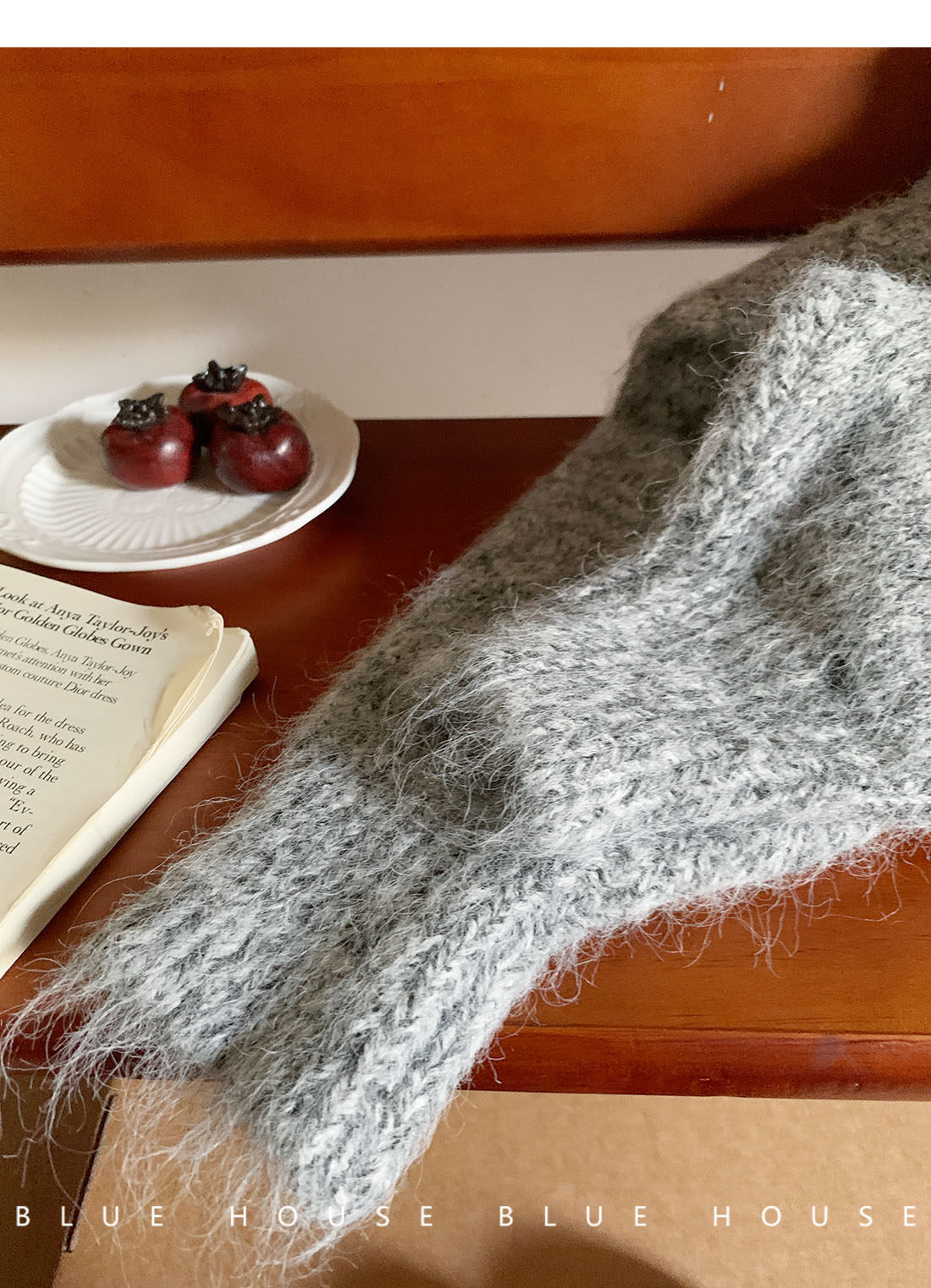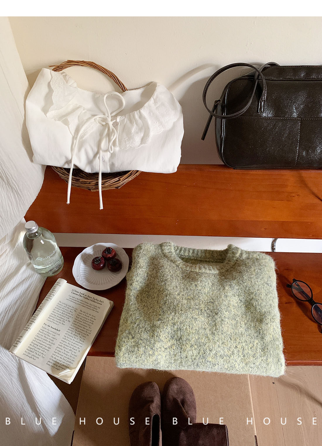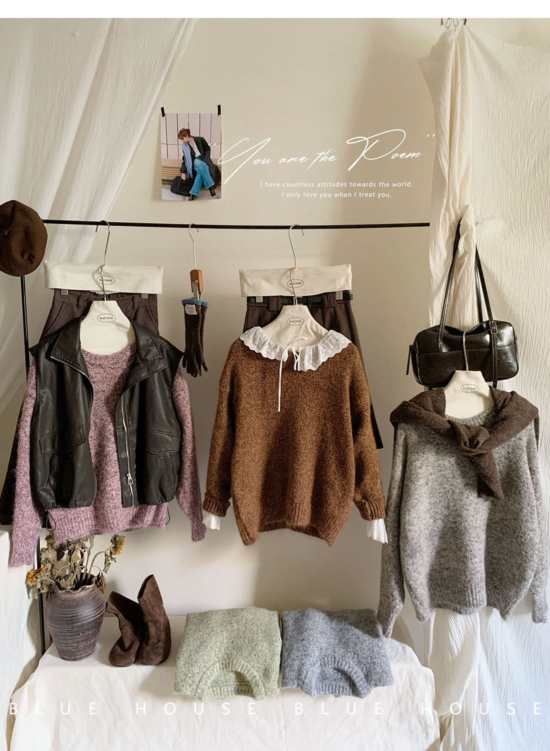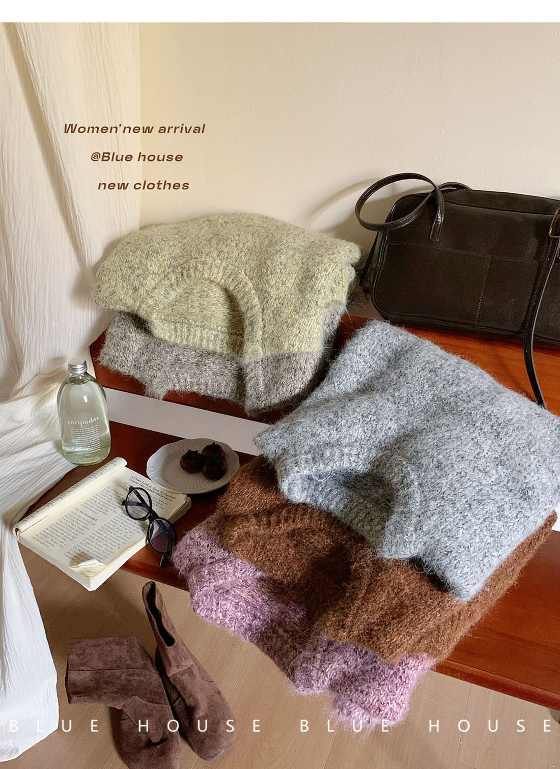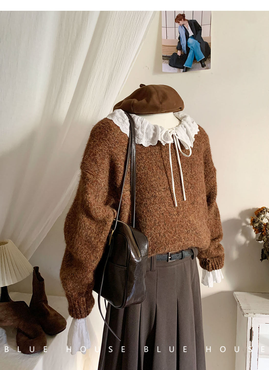 復古溫柔慵懶風軟糯花紗毛絨圓領毛衣女秋休閒寬松弛感長袖針織衫