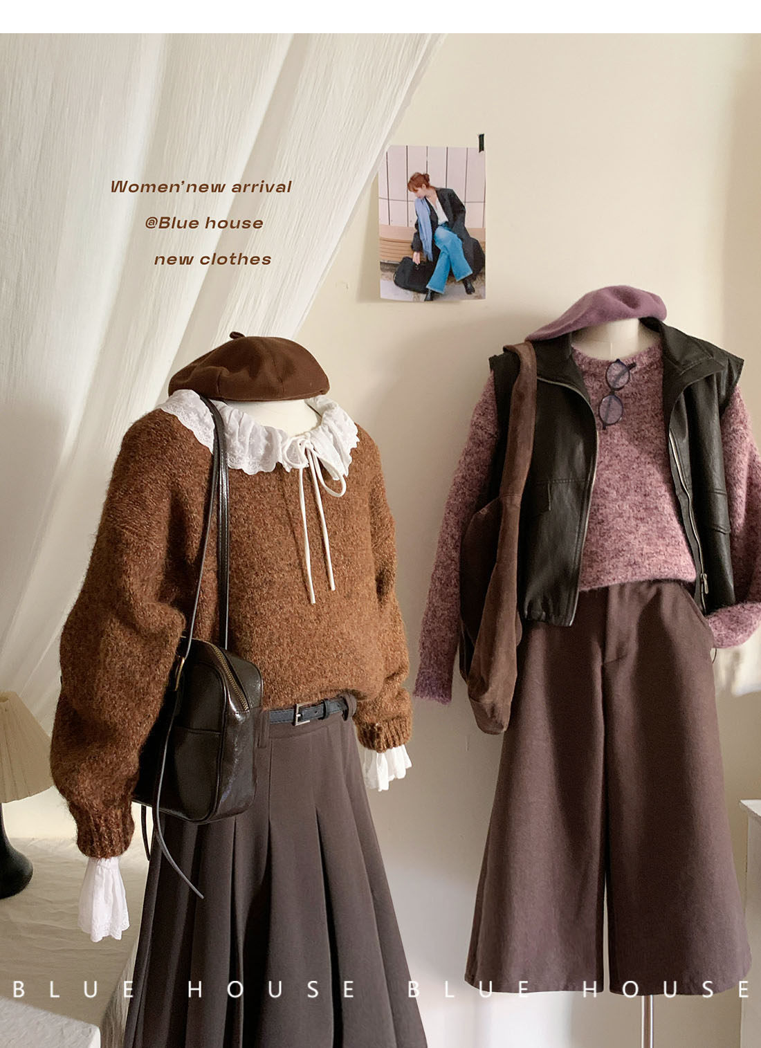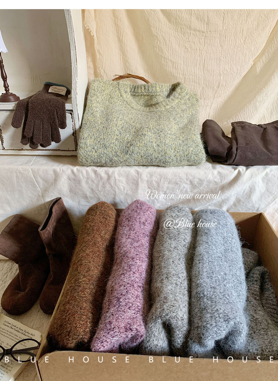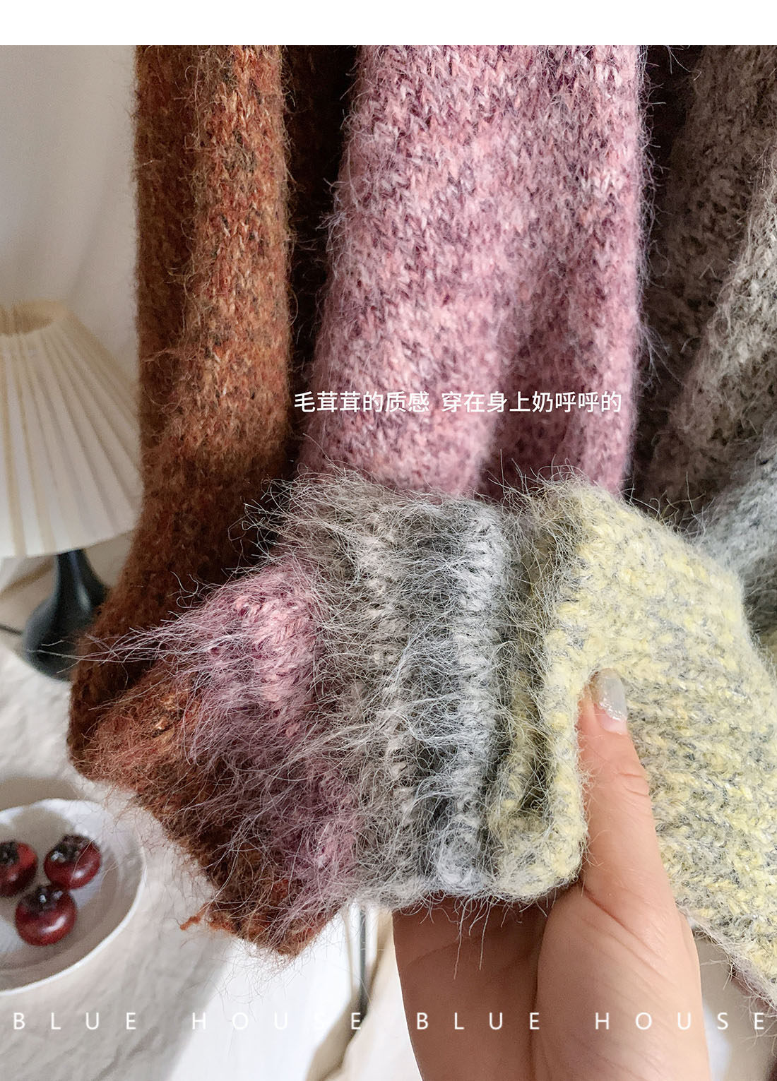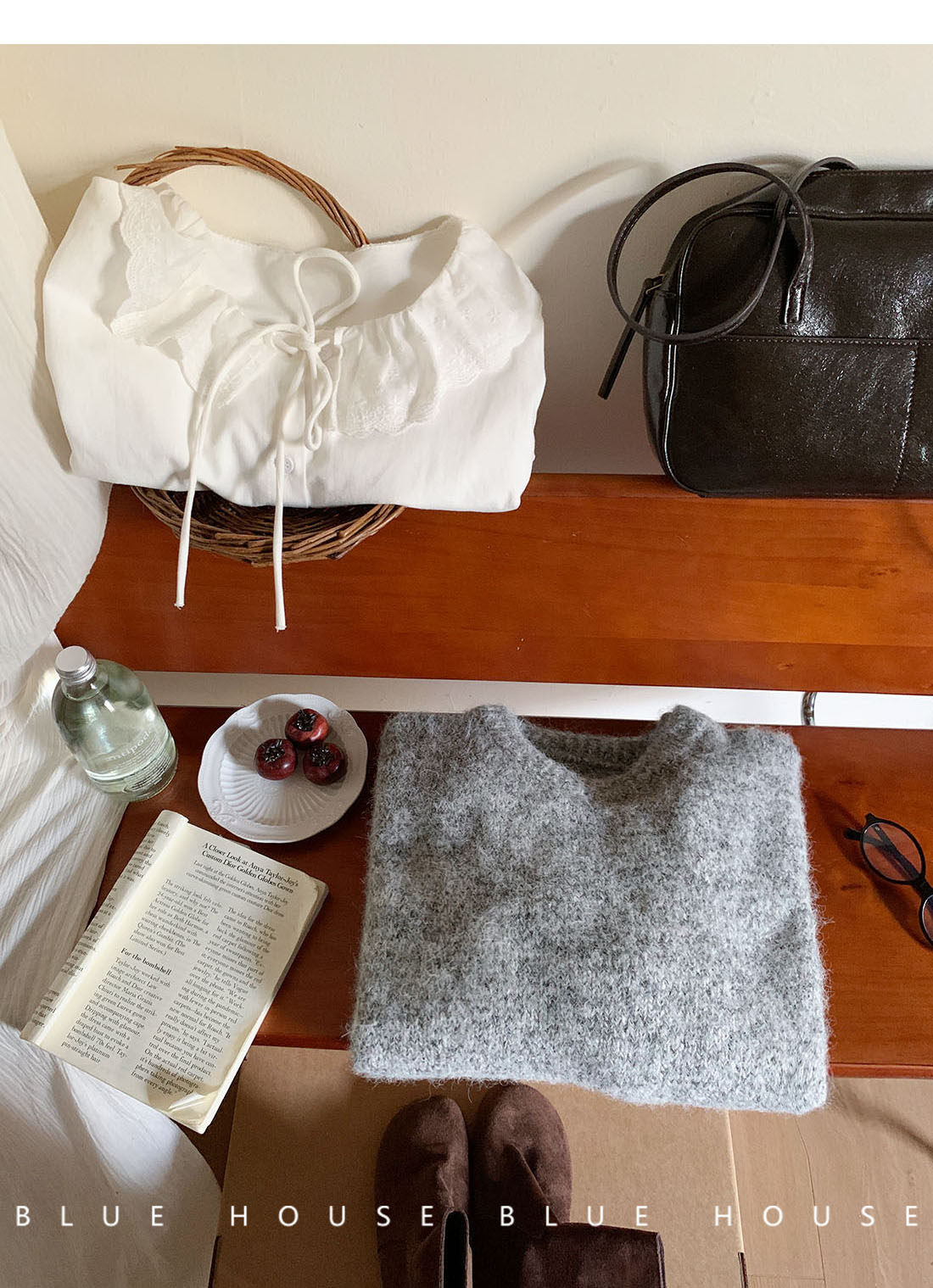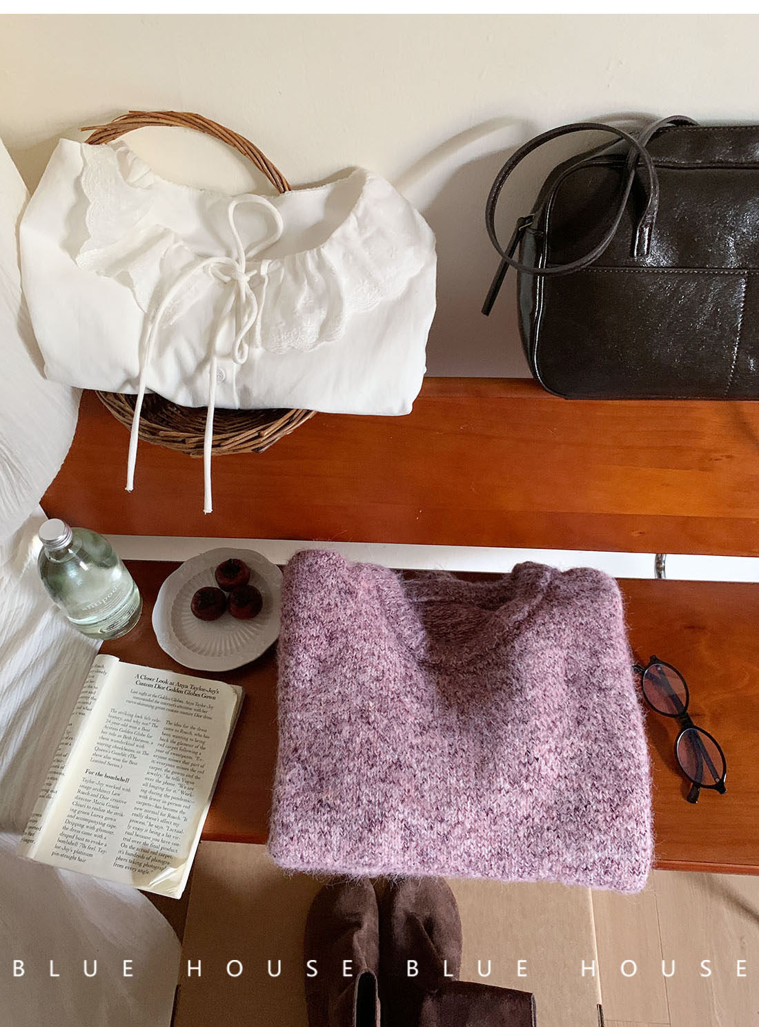 復古溫柔慵懶風軟糯花紗毛絨圓領毛衣女秋休閒寬松弛感長袖針織衫