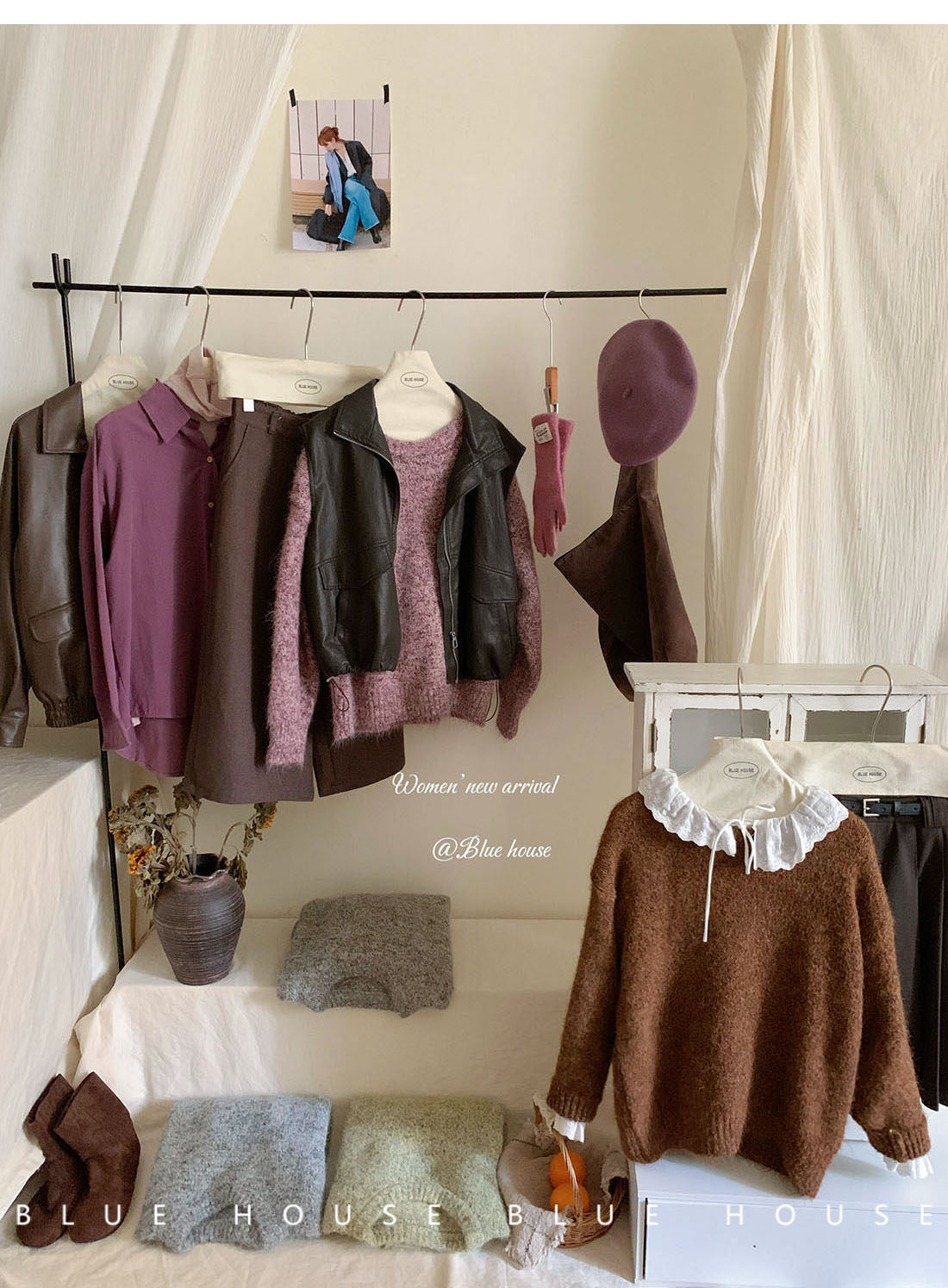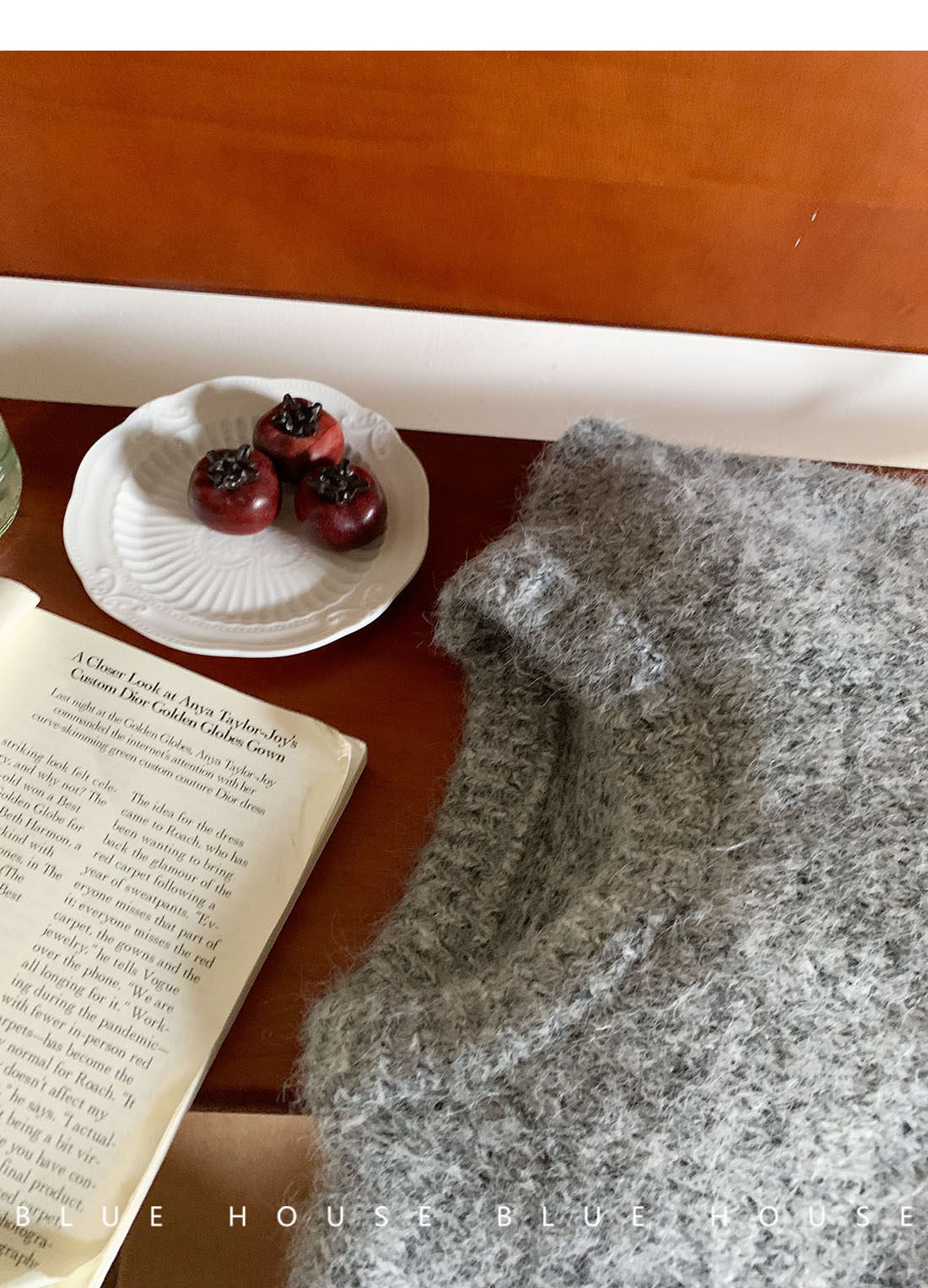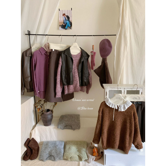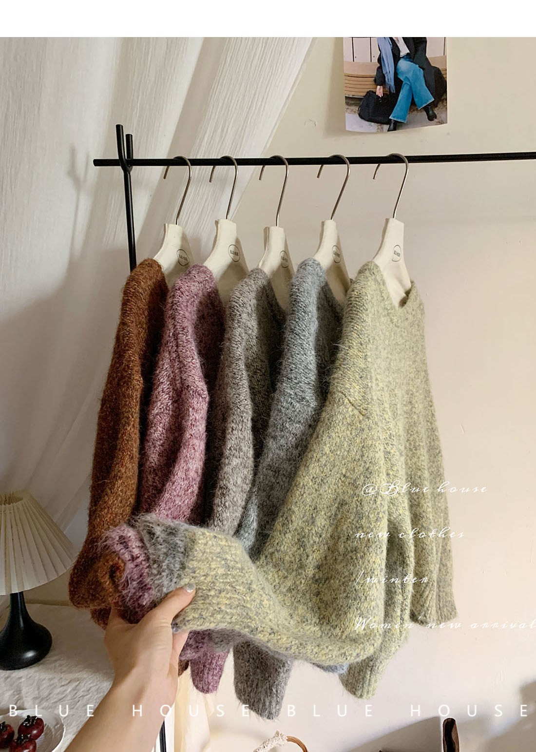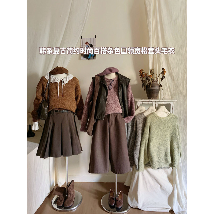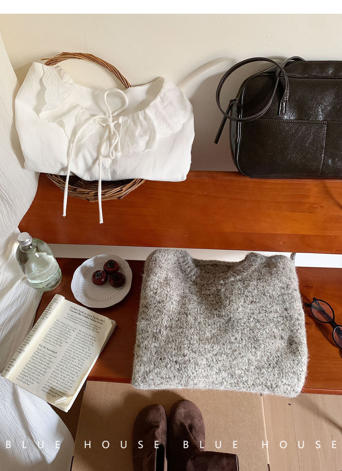 復古溫柔慵懶風軟糯花紗毛絨圓領毛衣女秋休閒寬松弛感長袖針織衫