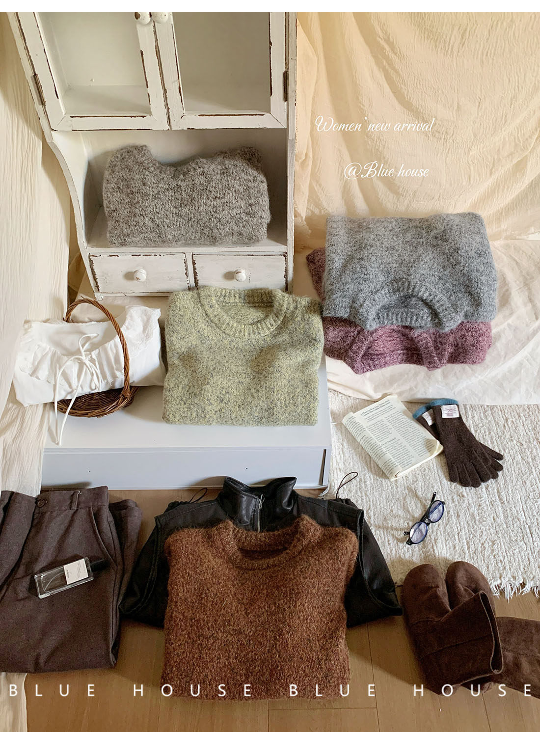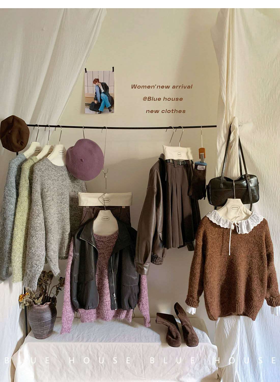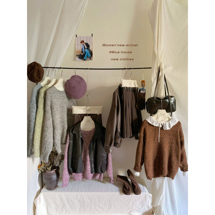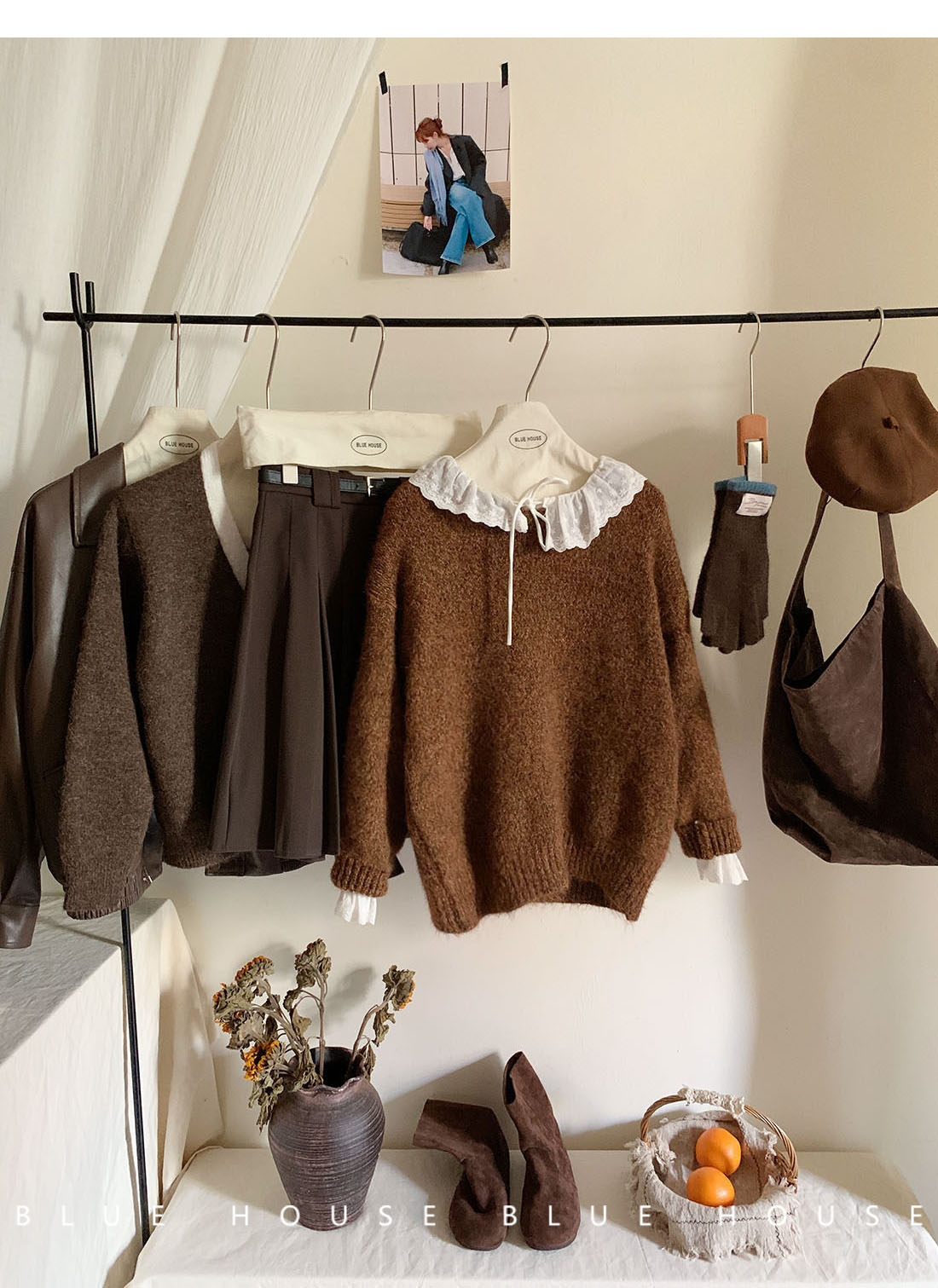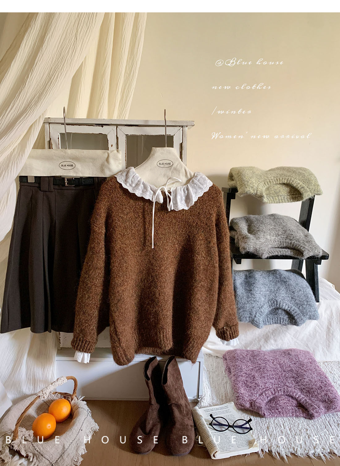 復古溫柔慵懶風軟糯花紗毛絨圓領毛衣女秋休閒寬松弛感長袖針織衫