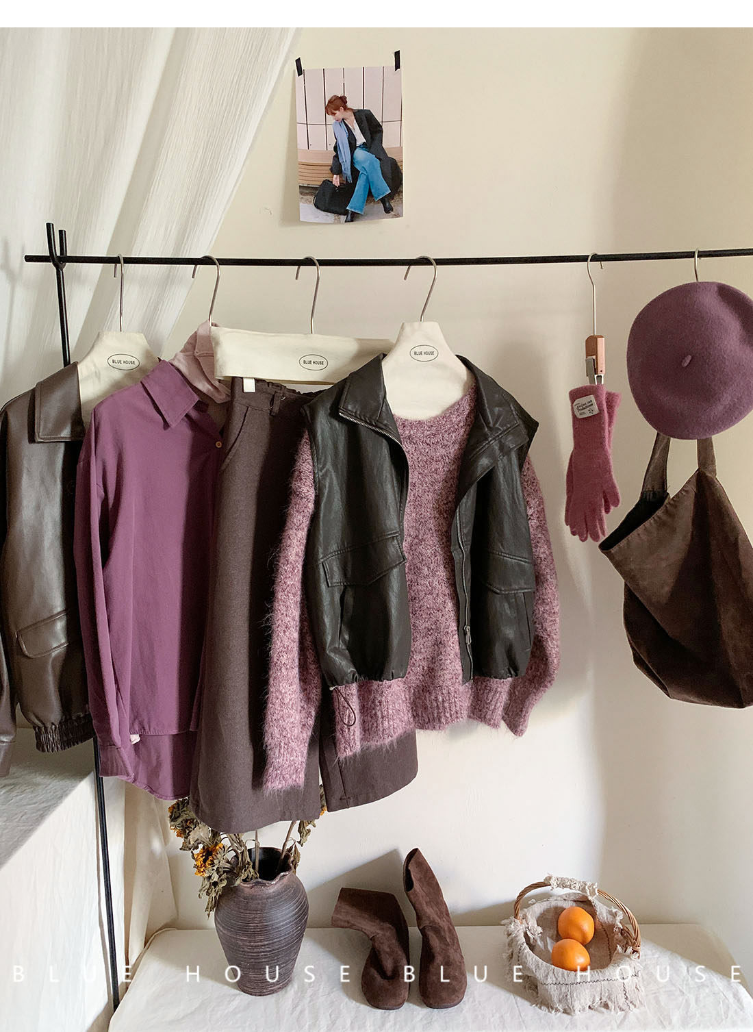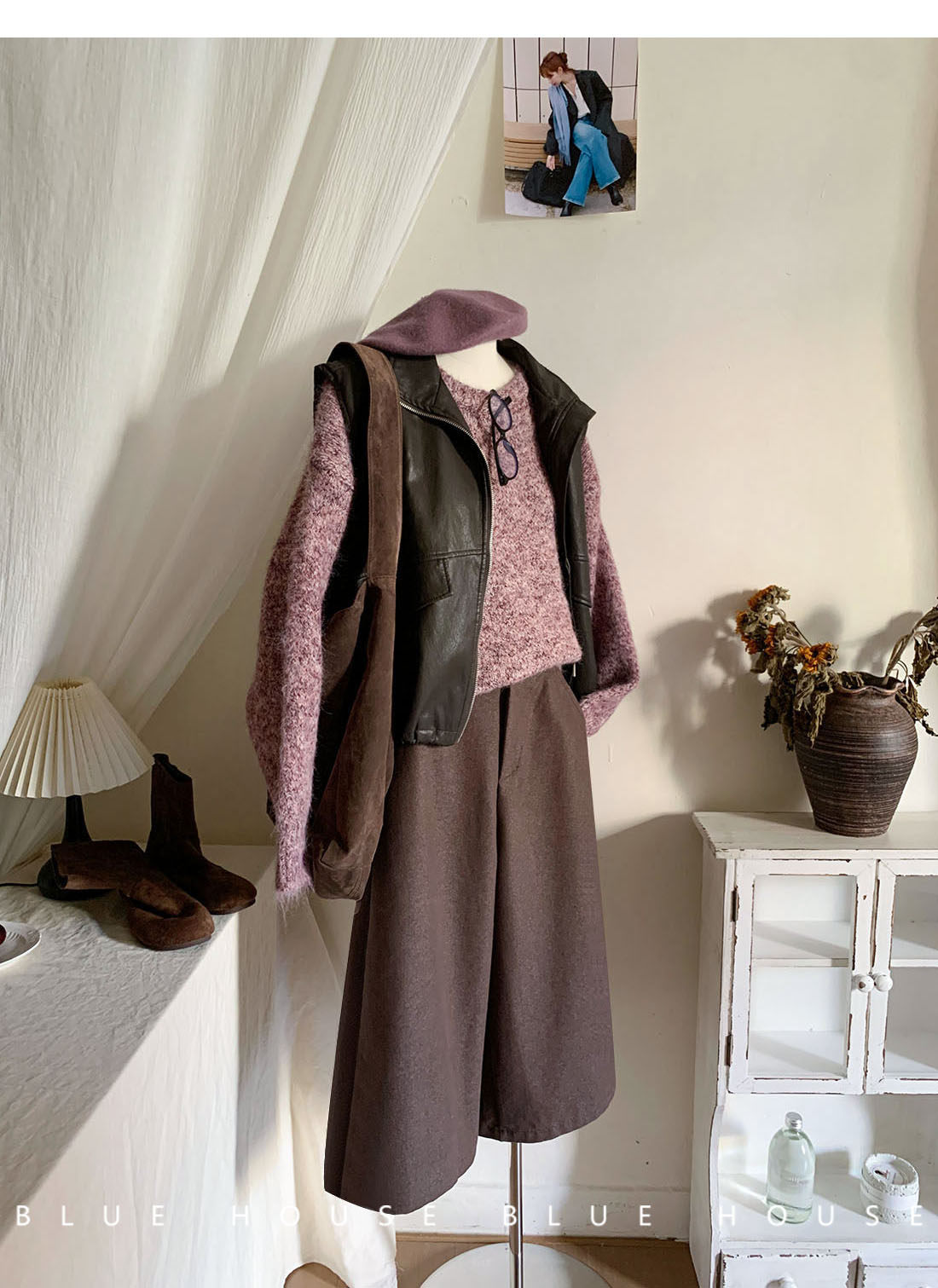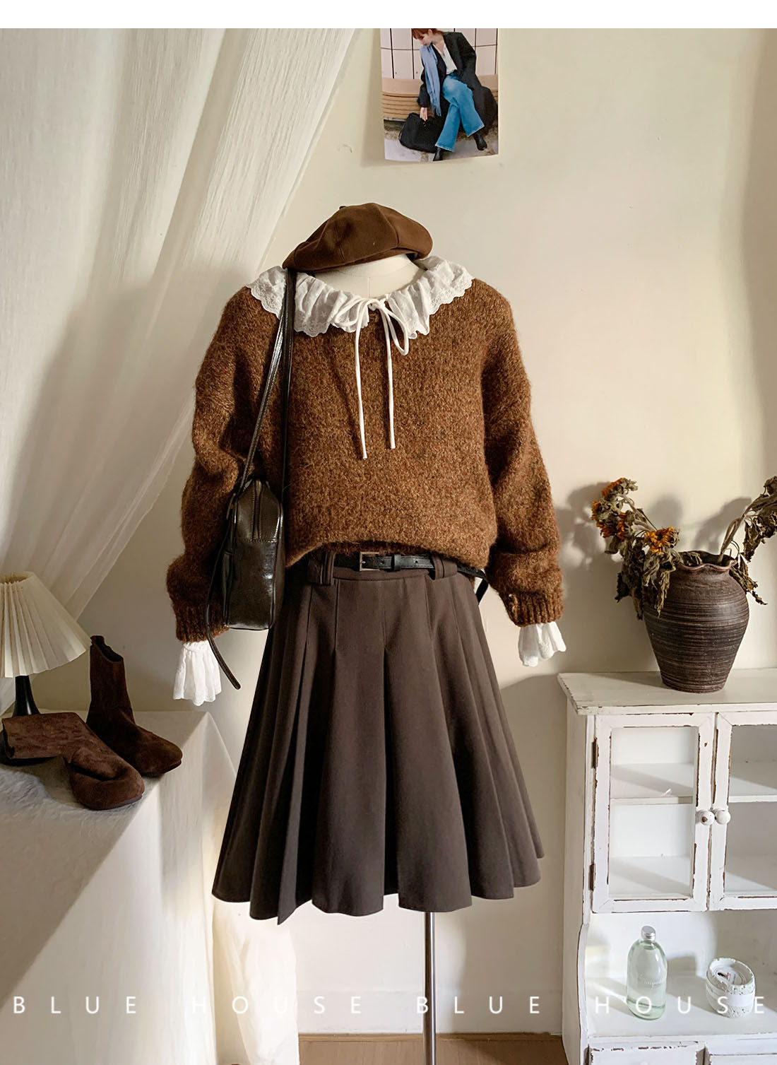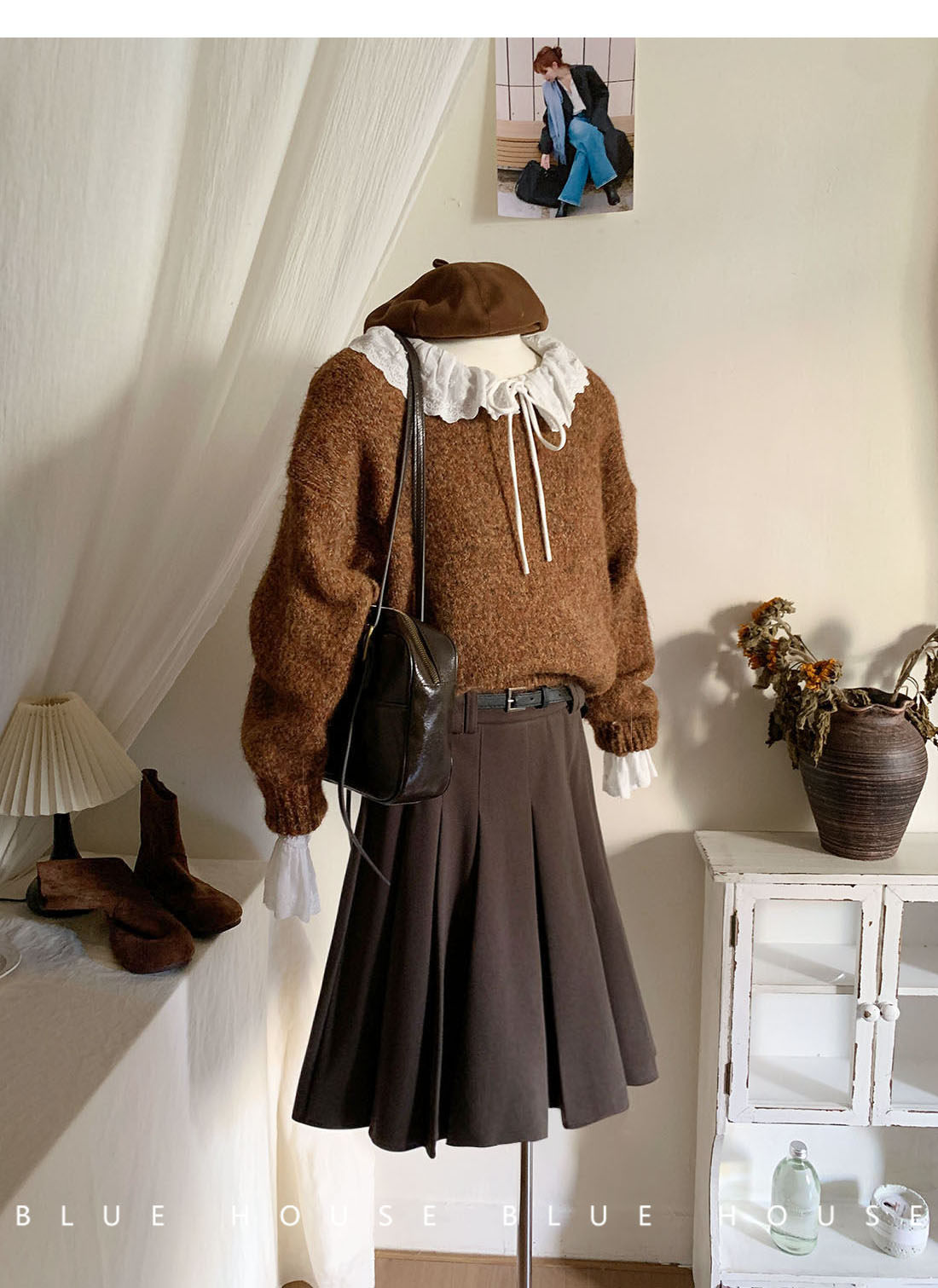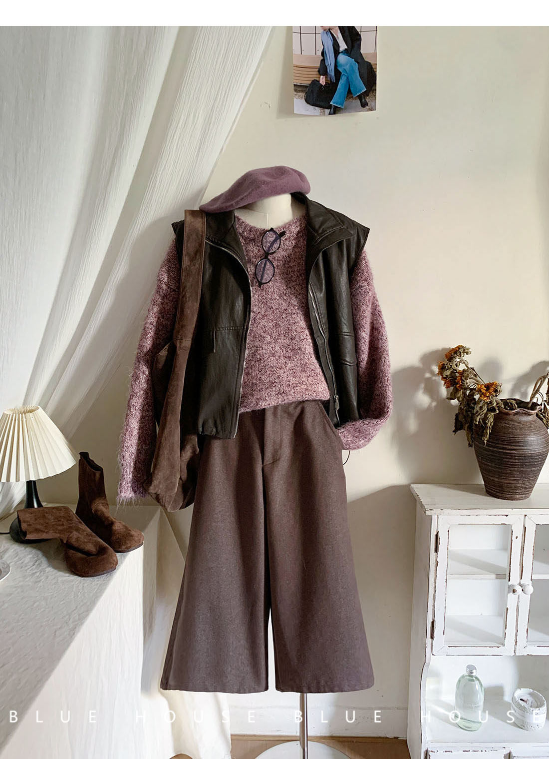 復古溫柔慵懶風軟糯花紗毛絨圓領毛衣女秋休閒寬松弛感長袖針織衫
