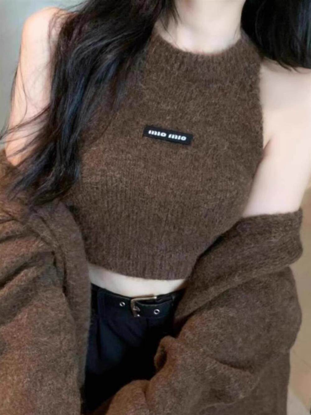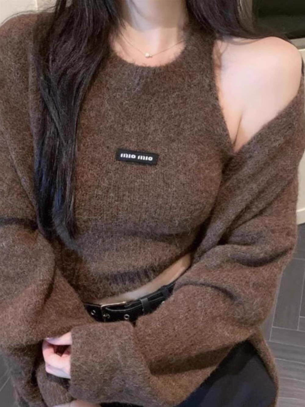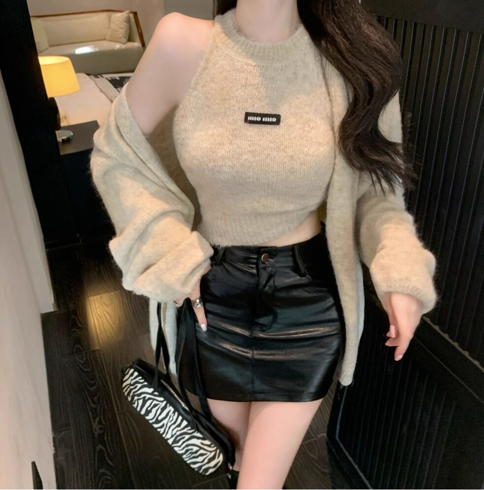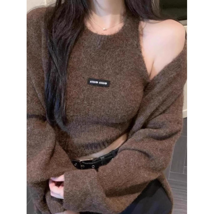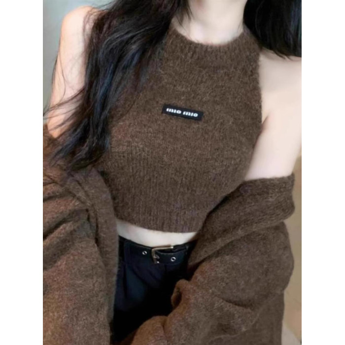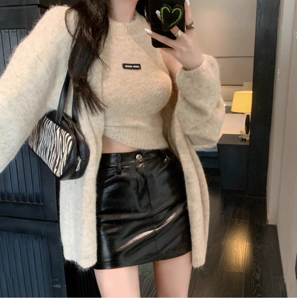 高級感慵懶風辣妹中長款毛衣外套女秋冬美拉德軟糯背心上衣兩件套