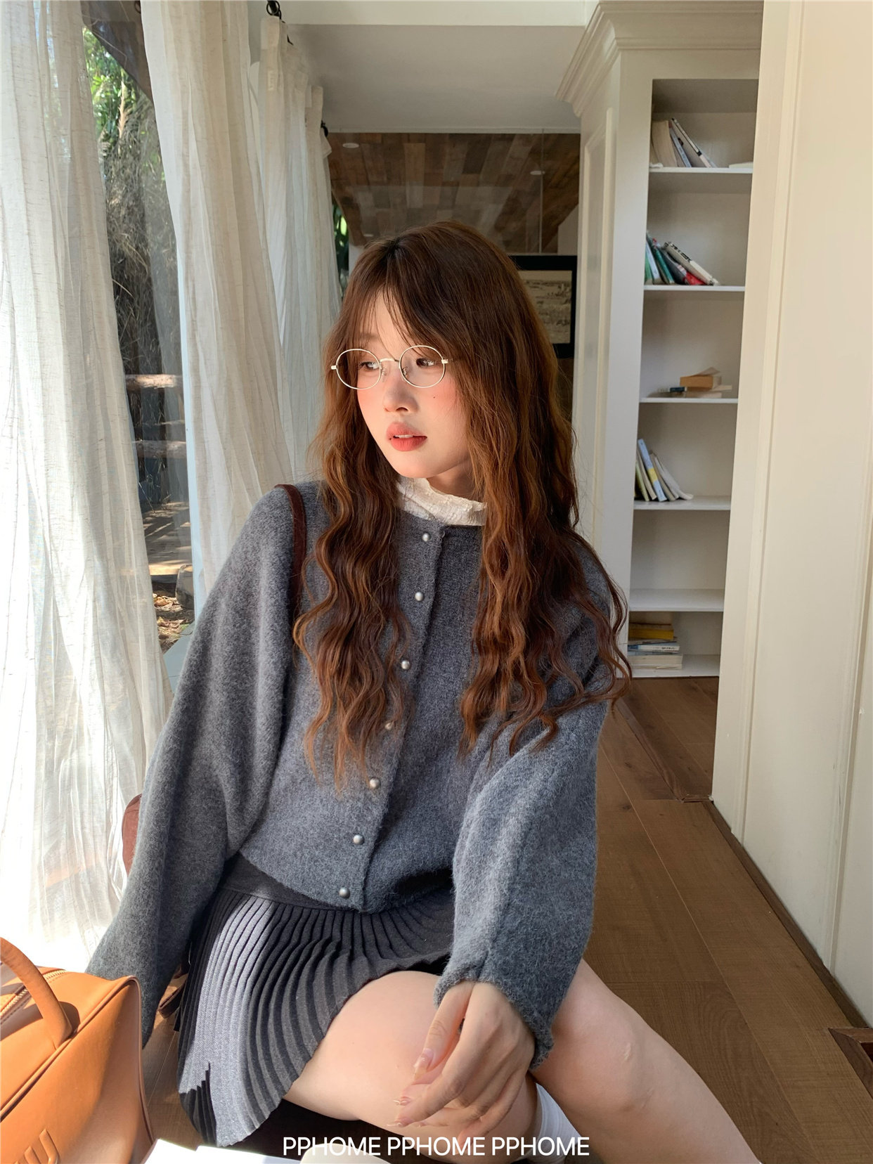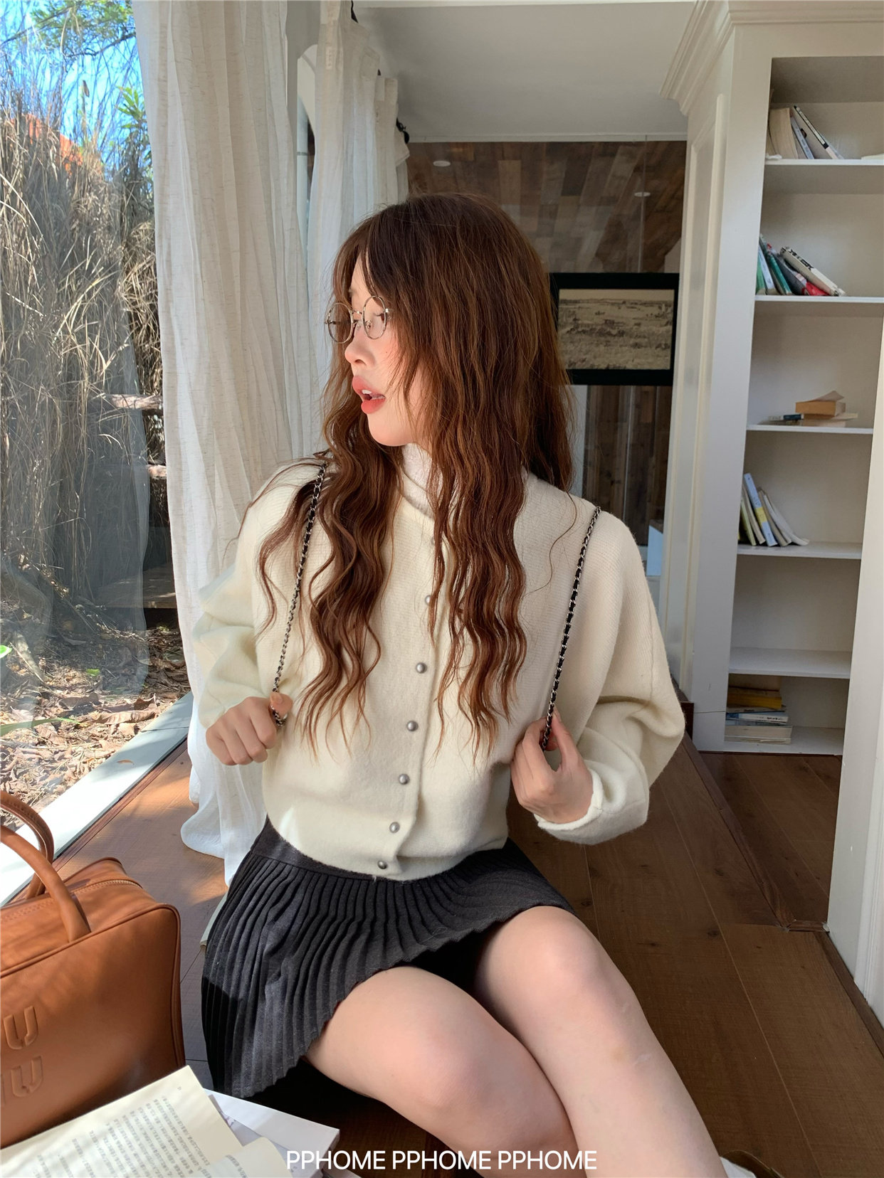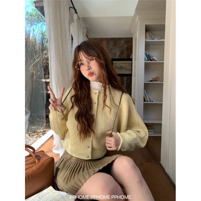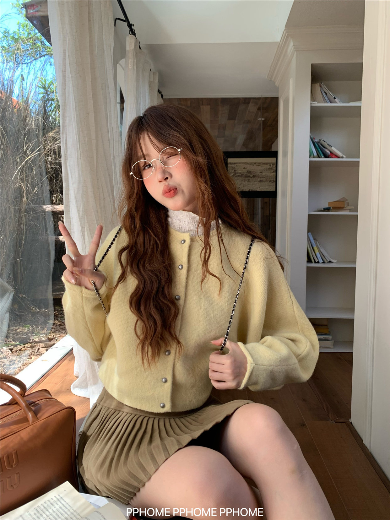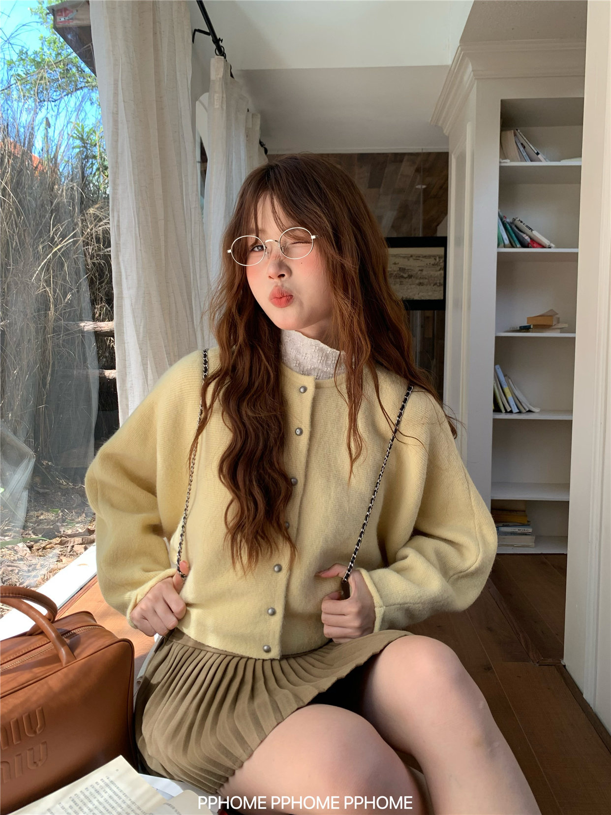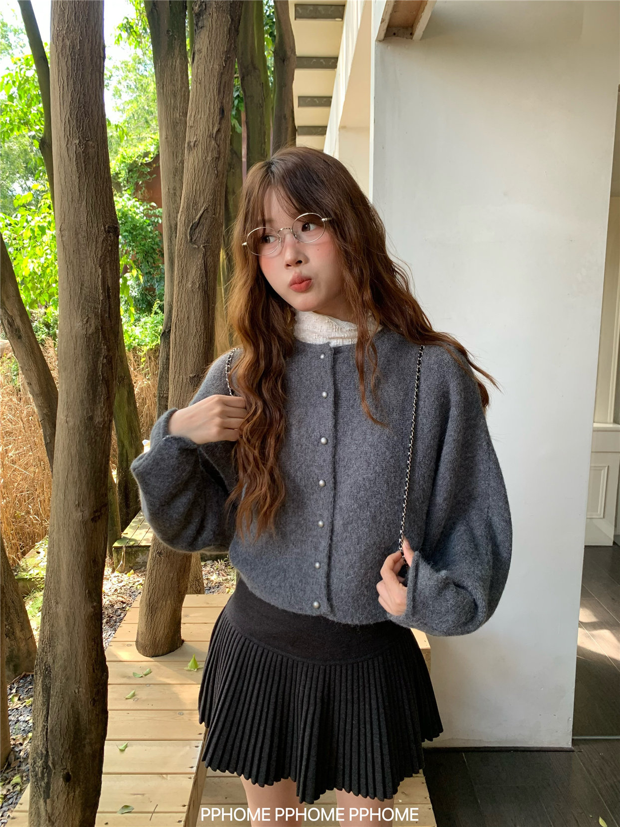 PPHOME自製~精緻調調 千金感蝙蝠袖軟糯針織開衫毛衣女秋冬短上衣