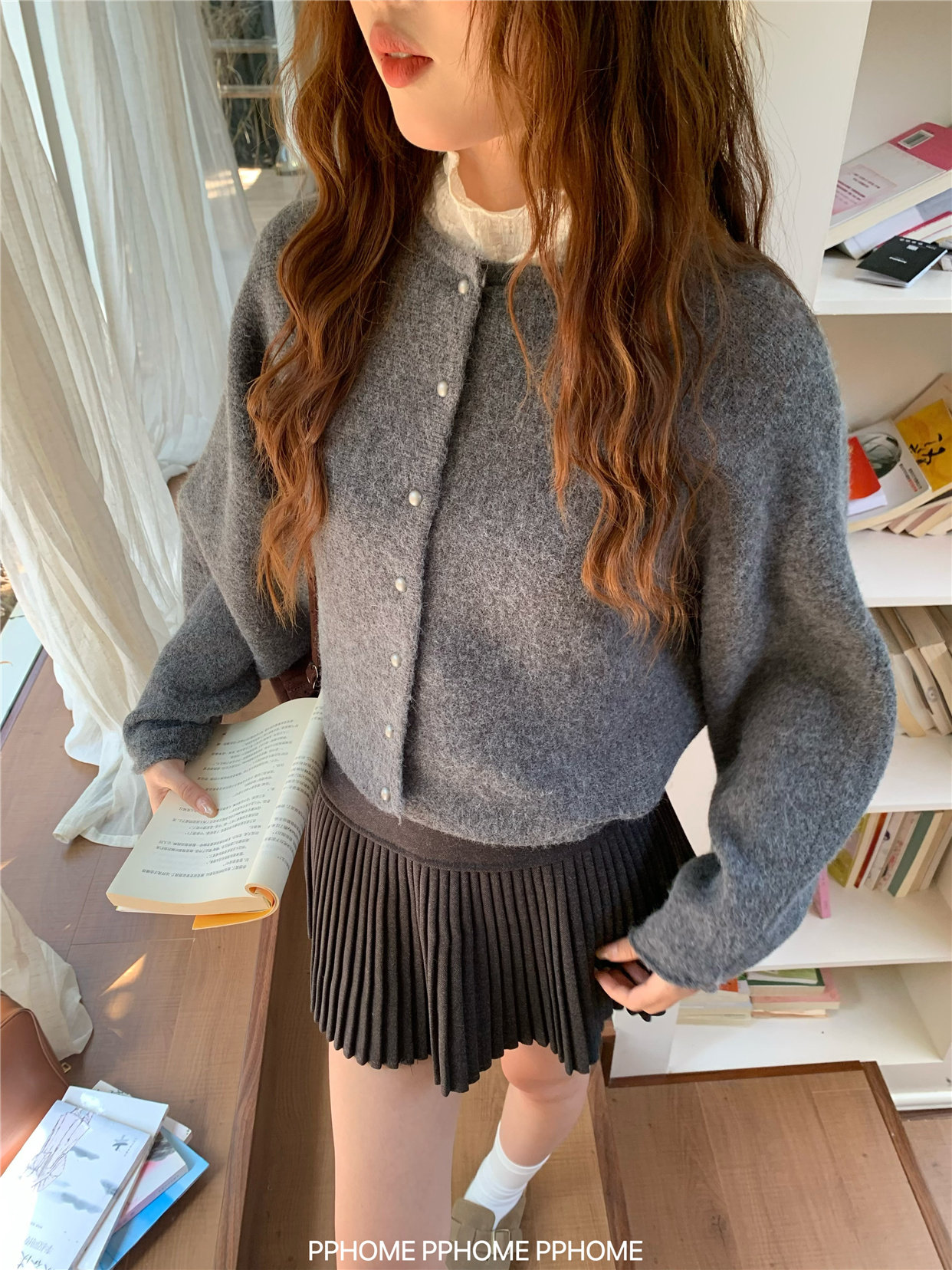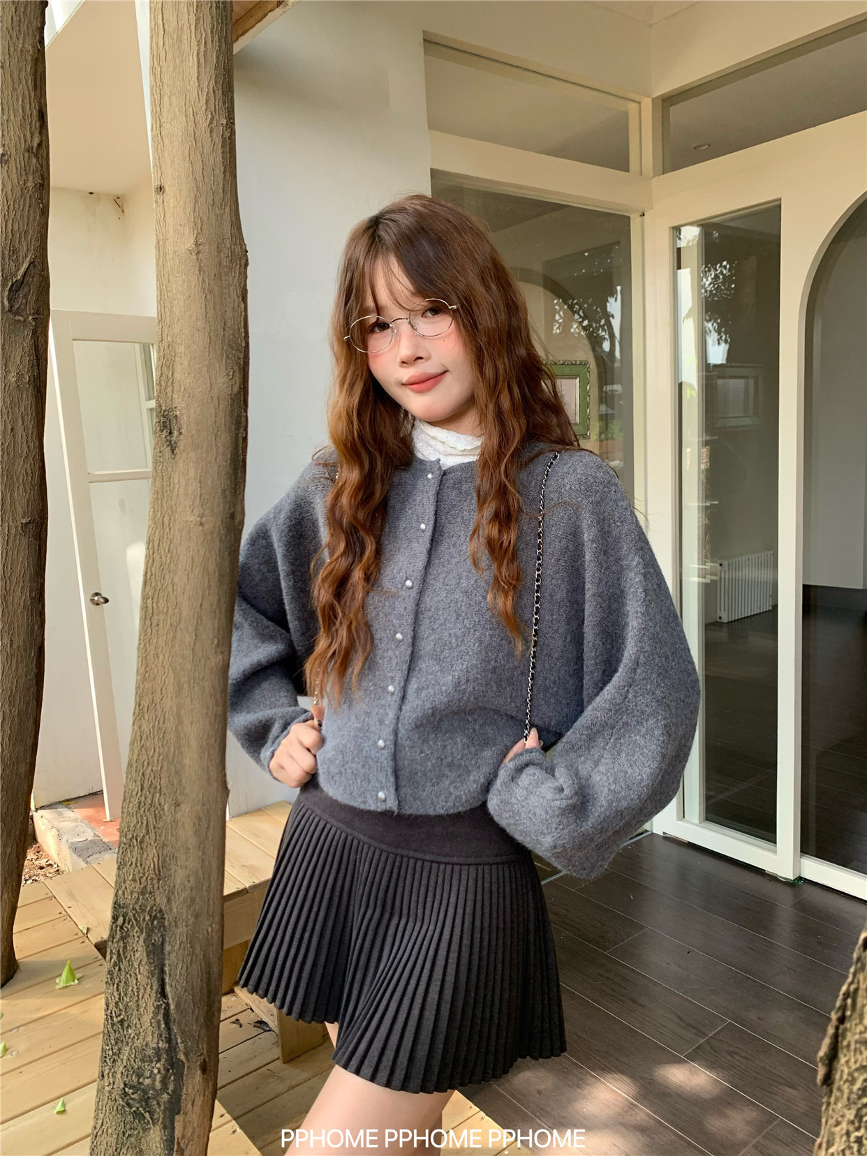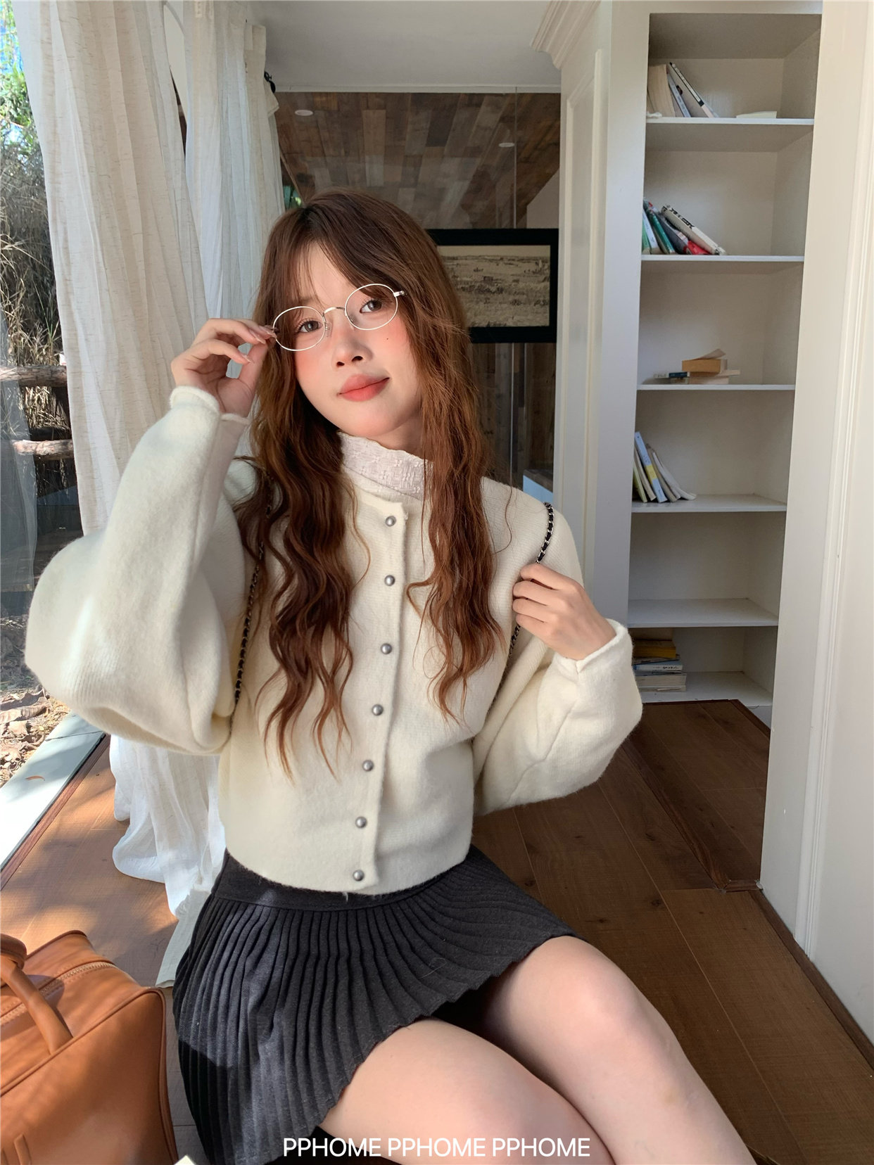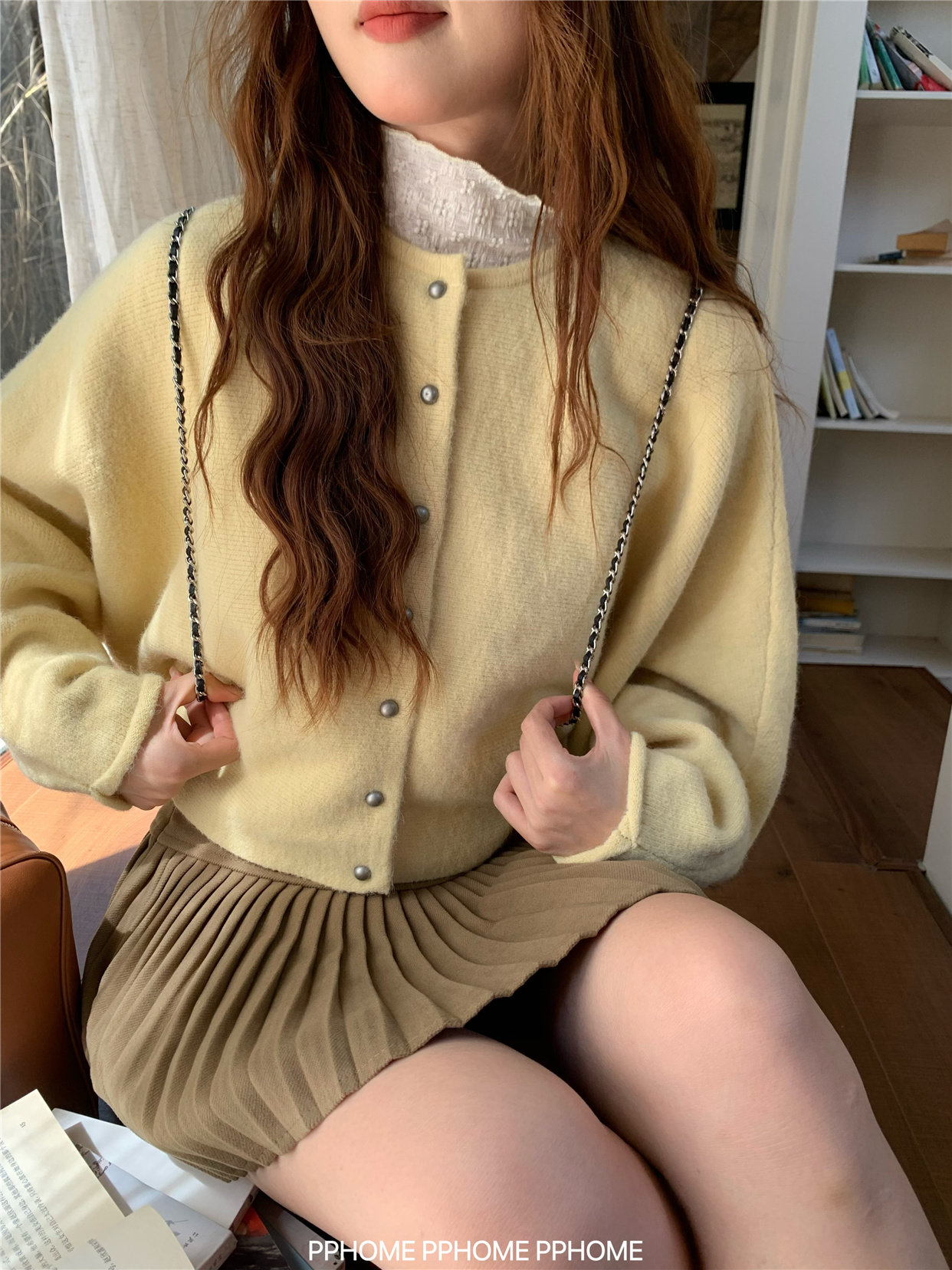 PPHOME自製~精緻調調 千金感蝙蝠袖軟糯針織開衫毛衣女秋冬短上衣