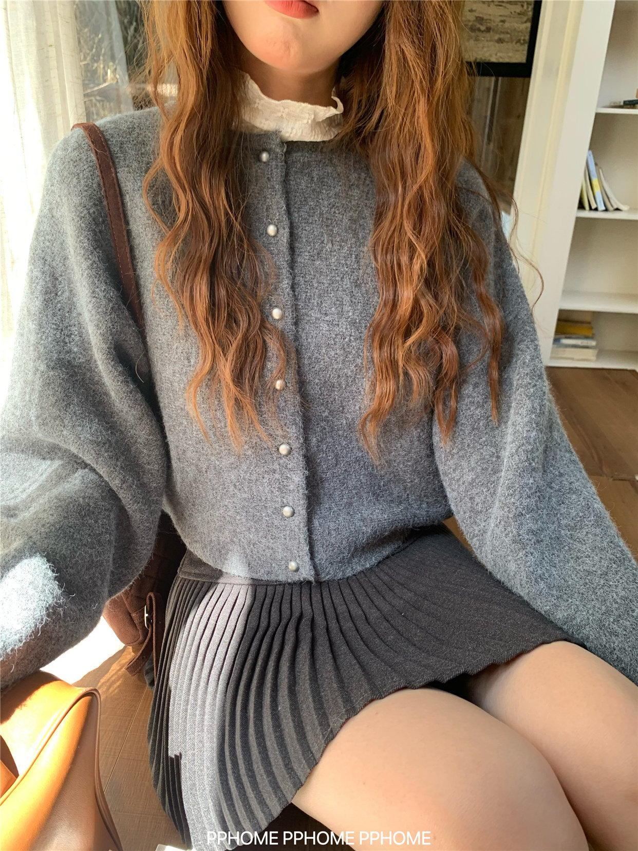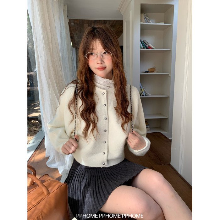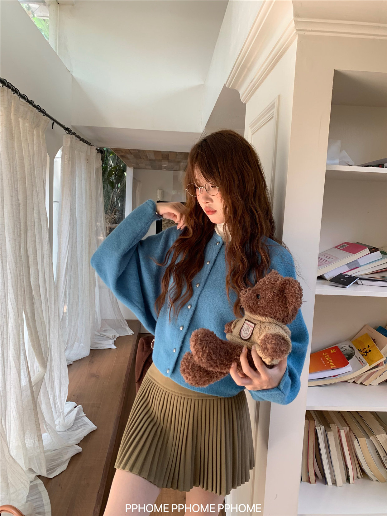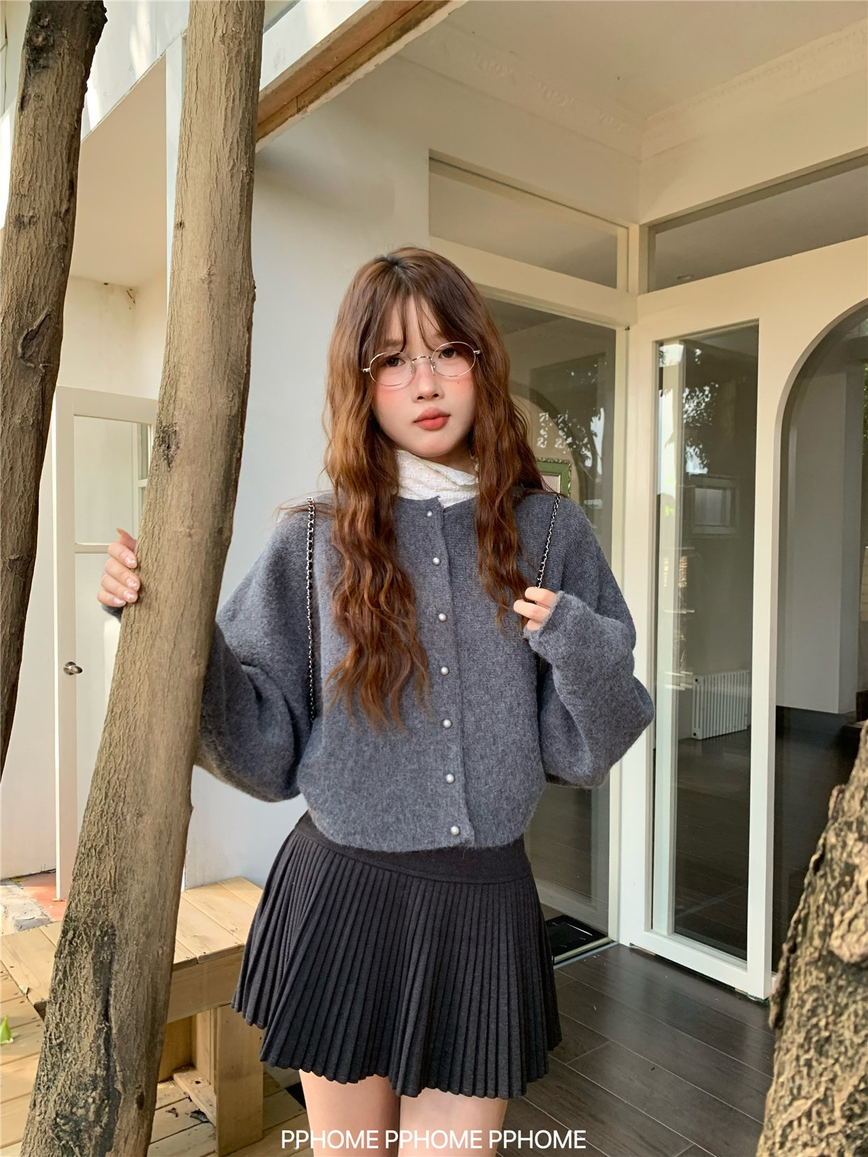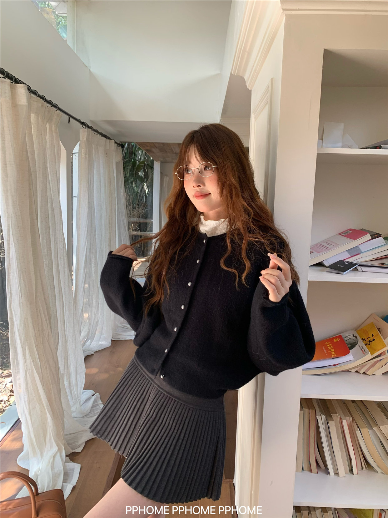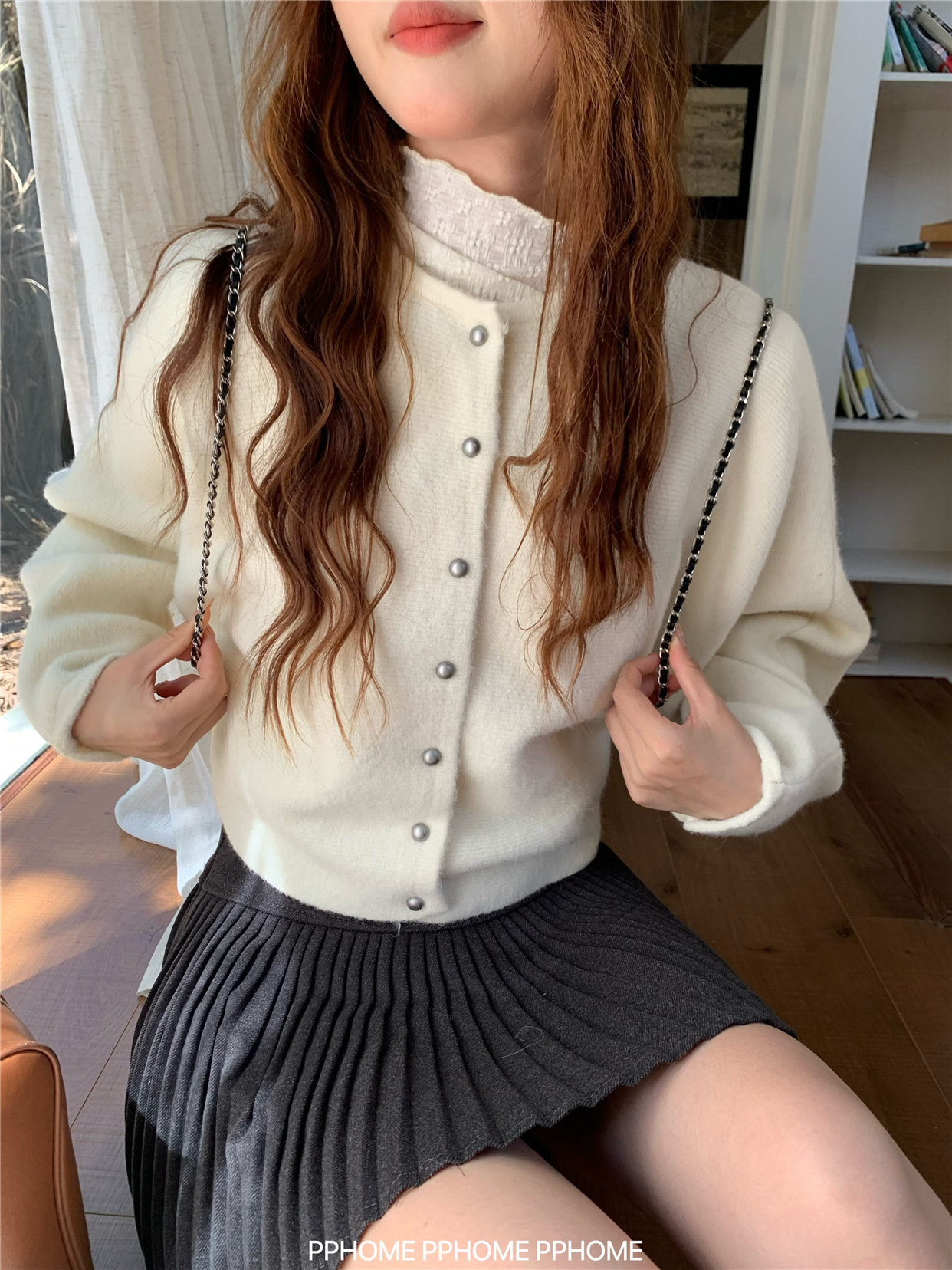 PPHOME自製~精緻調調 千金感蝙蝠袖軟糯針織開衫毛衣女秋冬短上衣