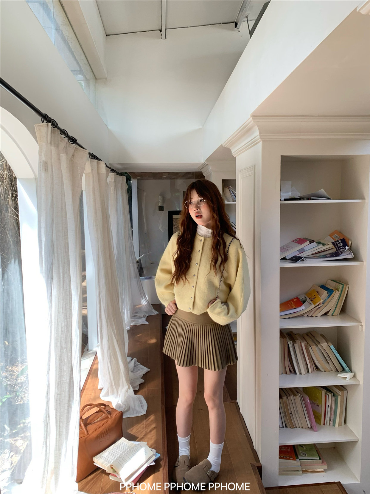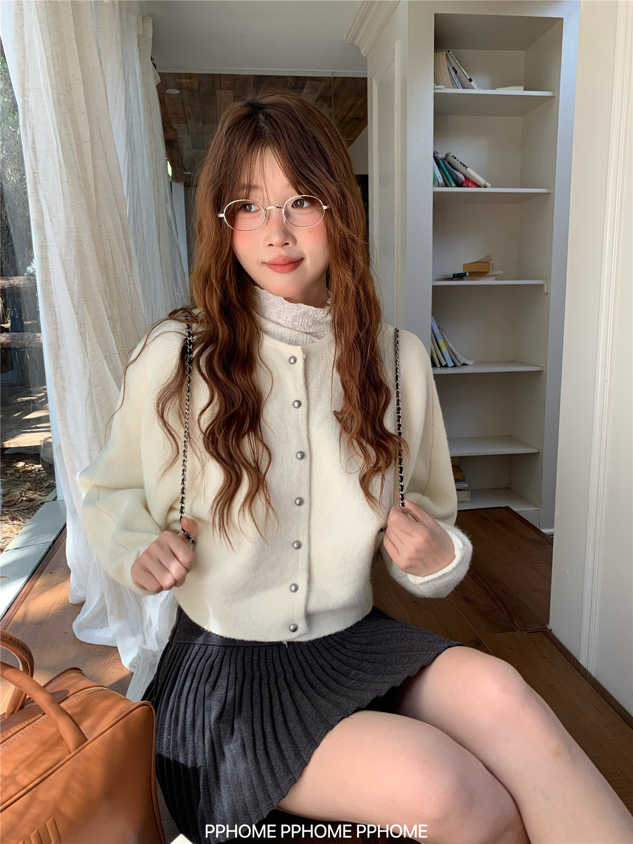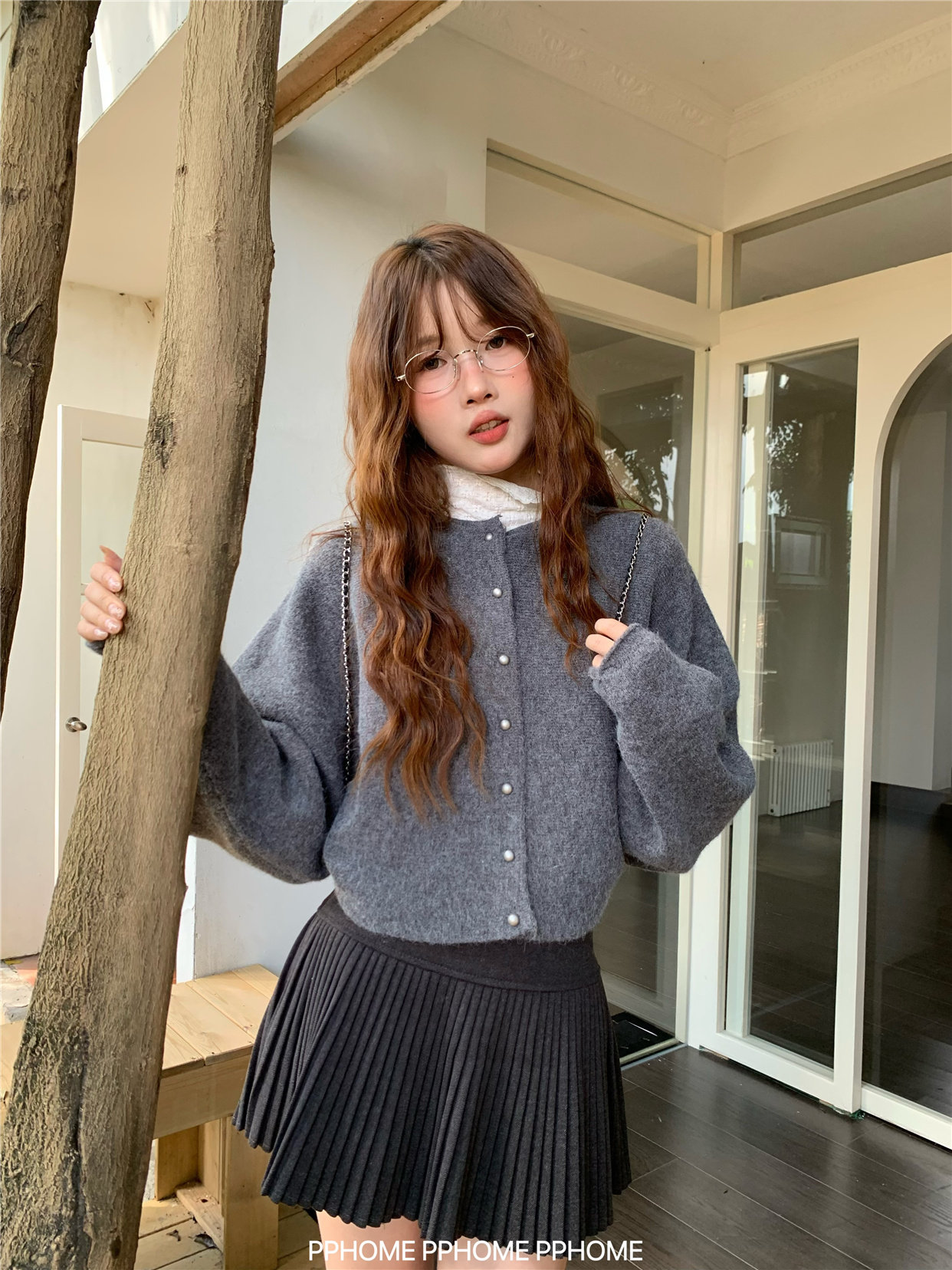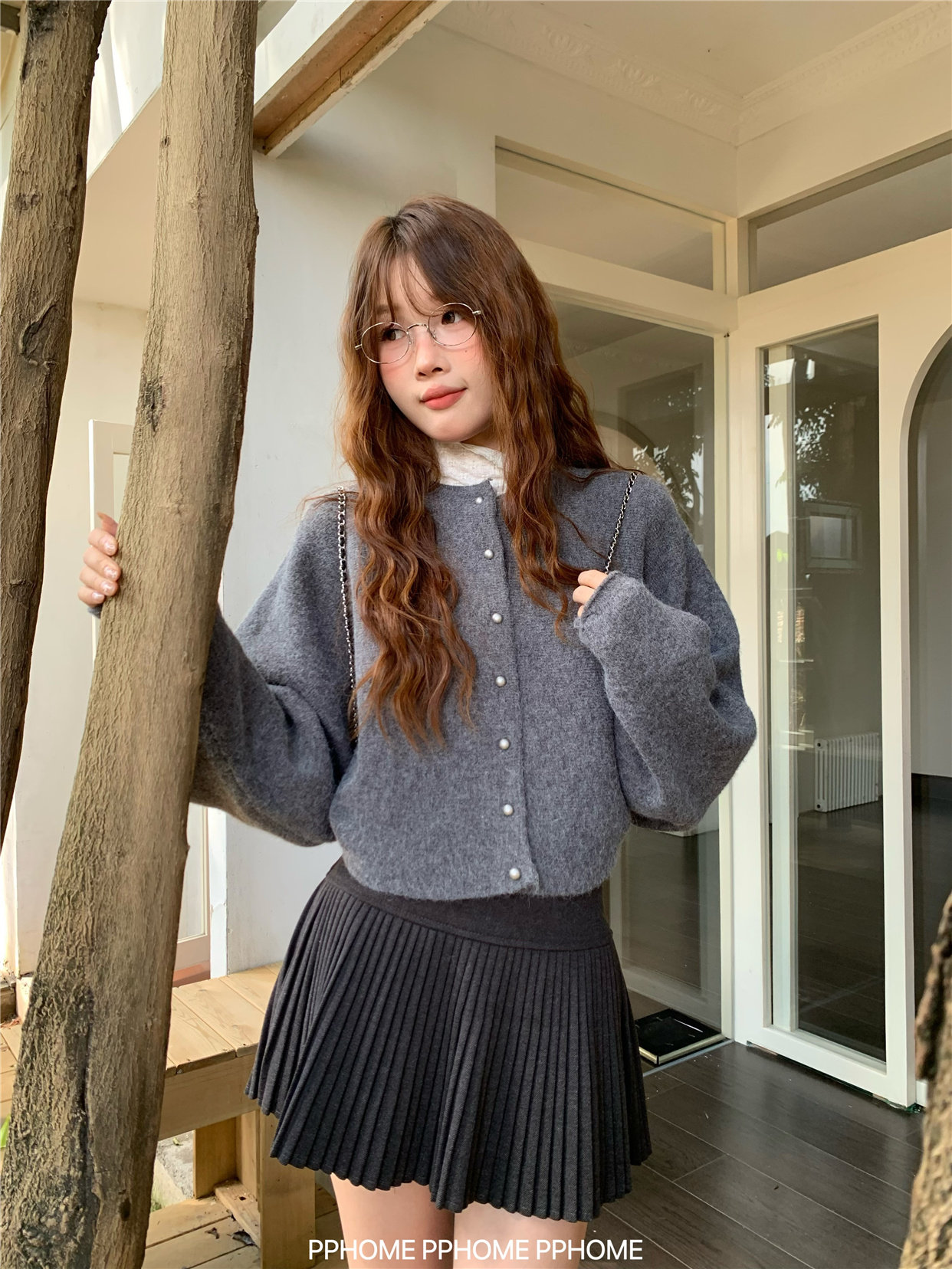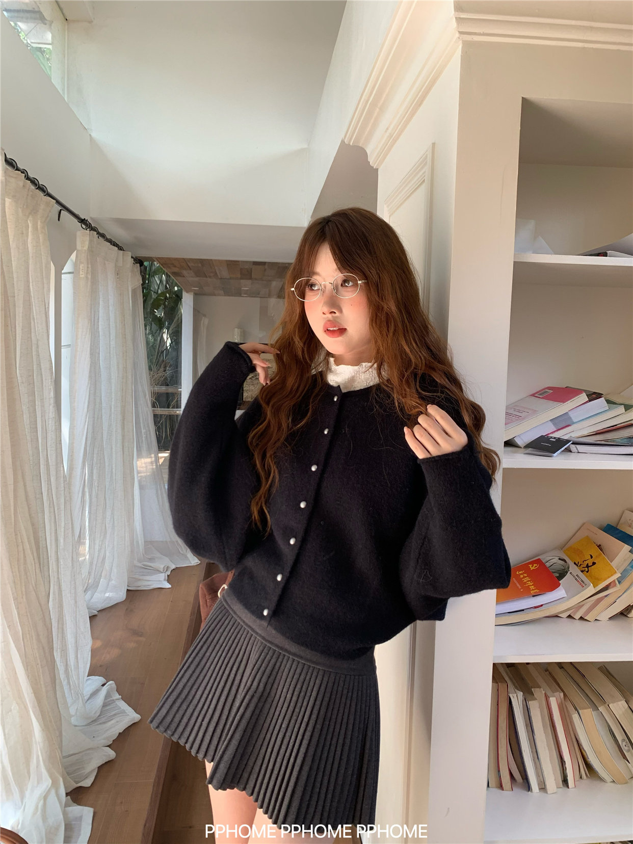 PPHOME自製~精緻調調 千金感蝙蝠袖軟糯針織開衫毛衣女秋冬短上衣