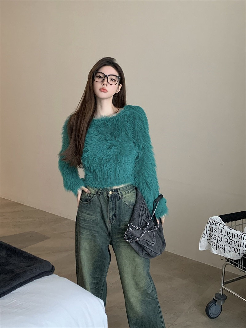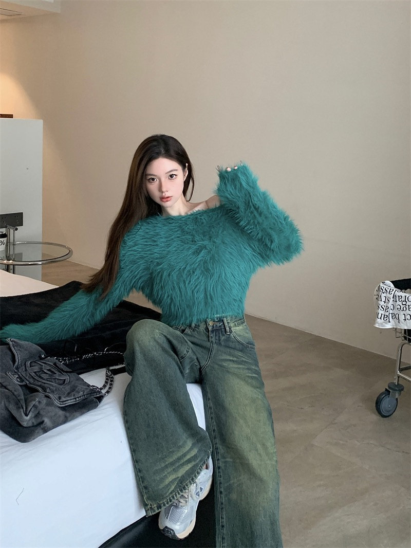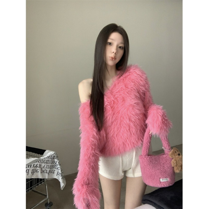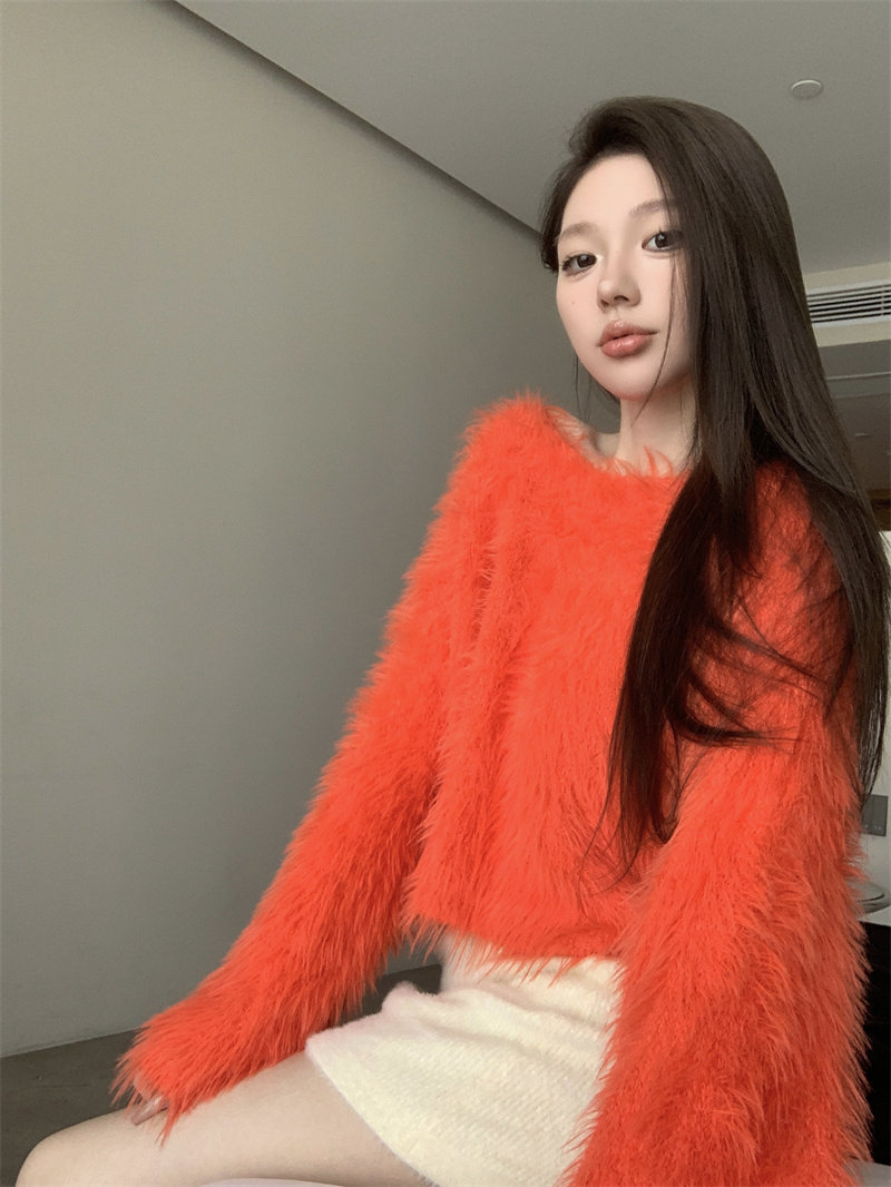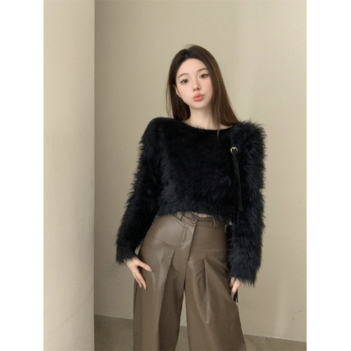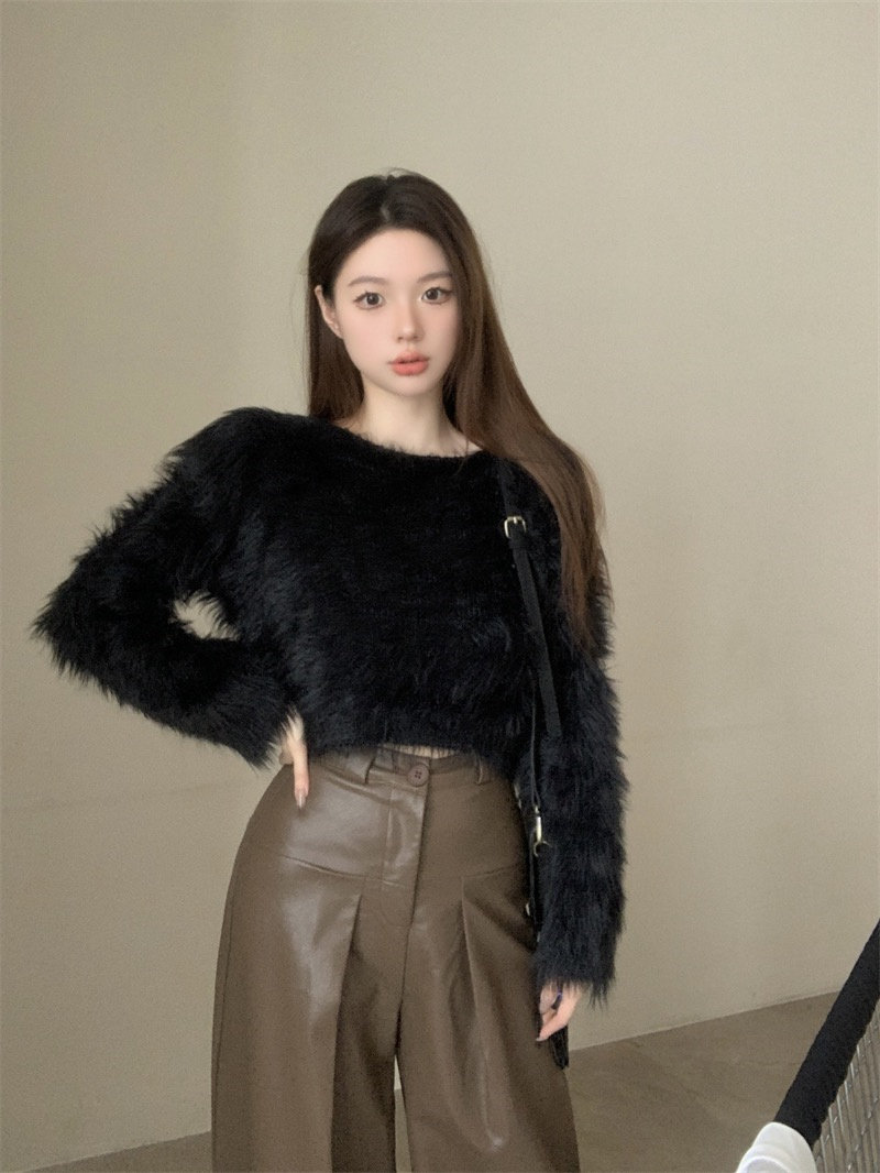 純欲風氣質斜領露肩長袖毛衣女冬季2025新款修身顯瘦套頭針織上衣