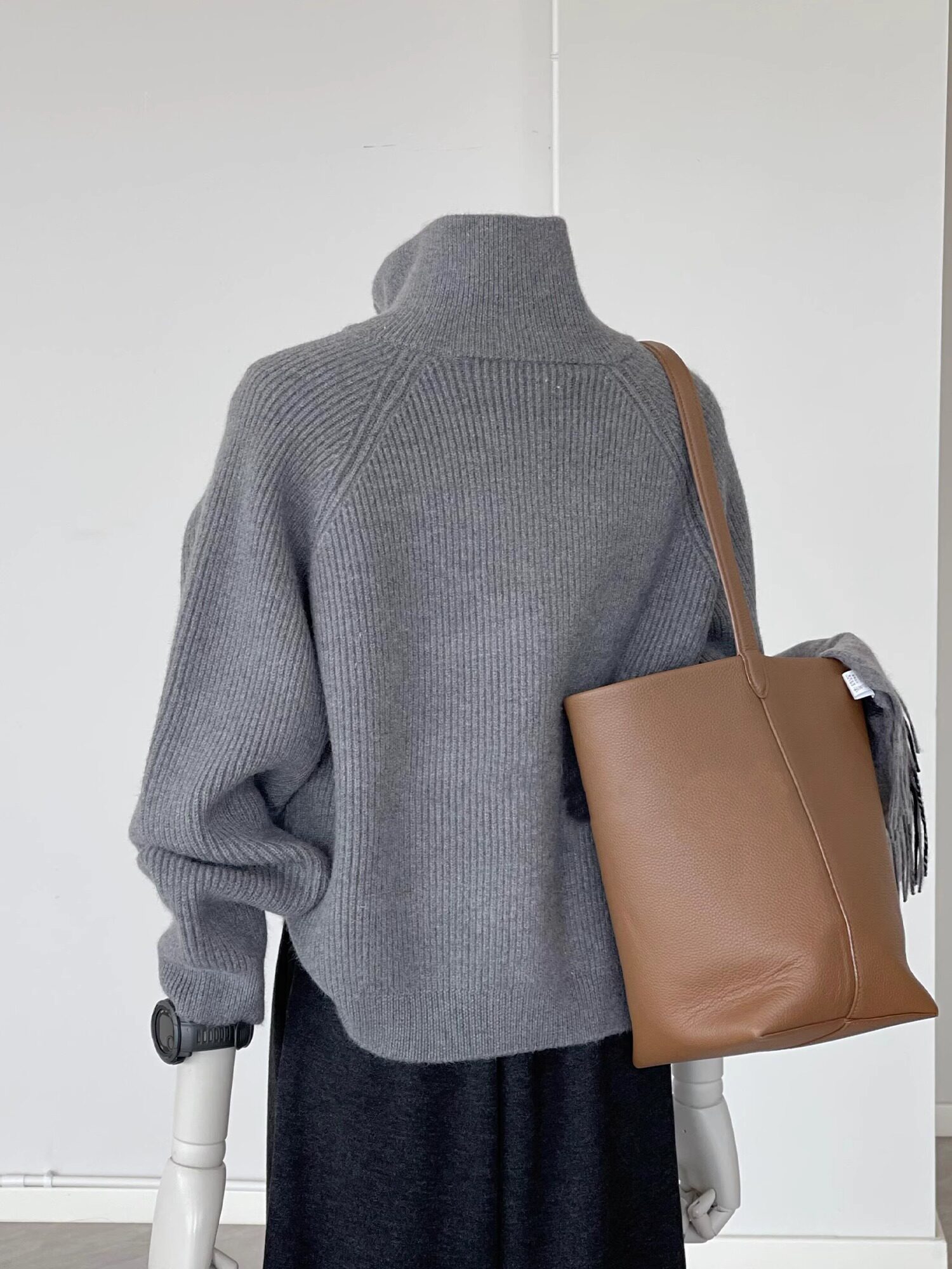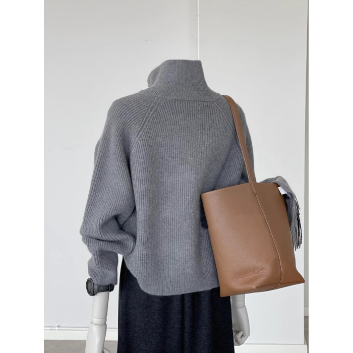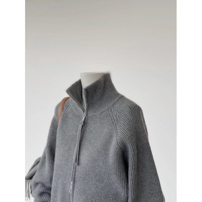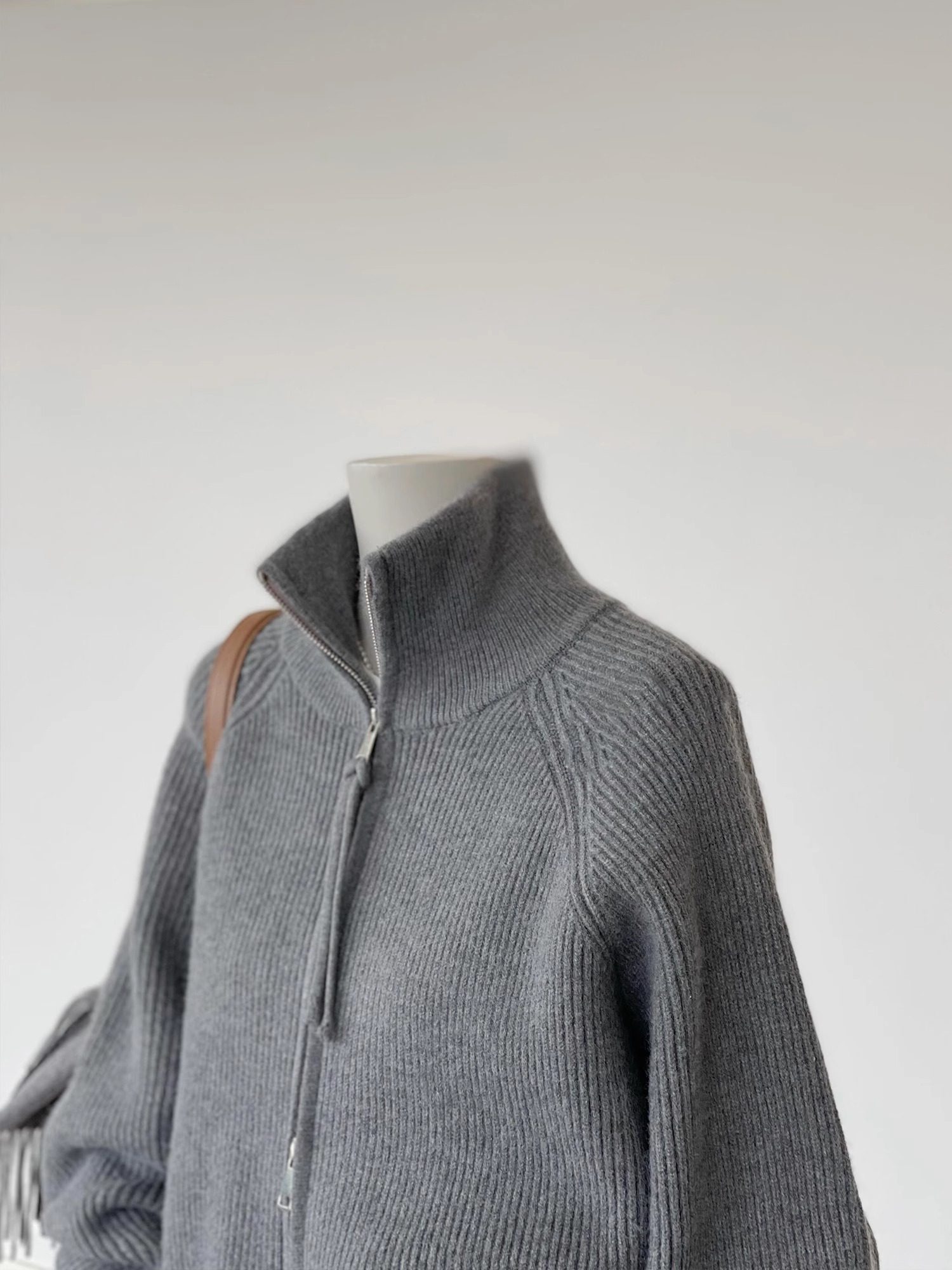 雙拉鍊高領加厚針織上衣外套女2025秋季寬鬆設計感插肩袖毛衣開衫