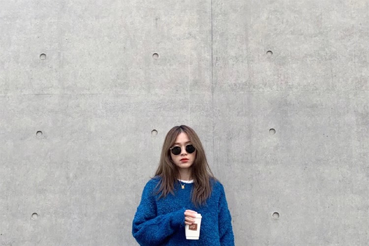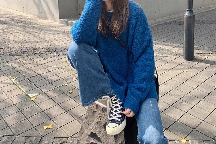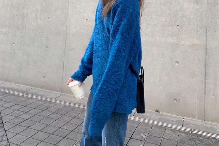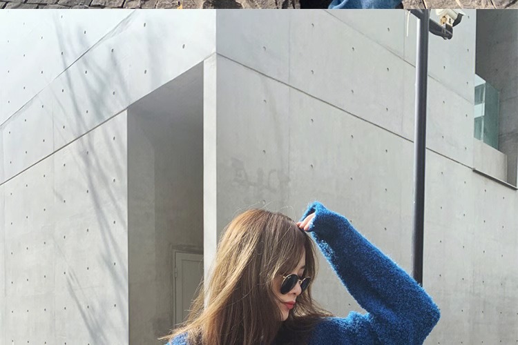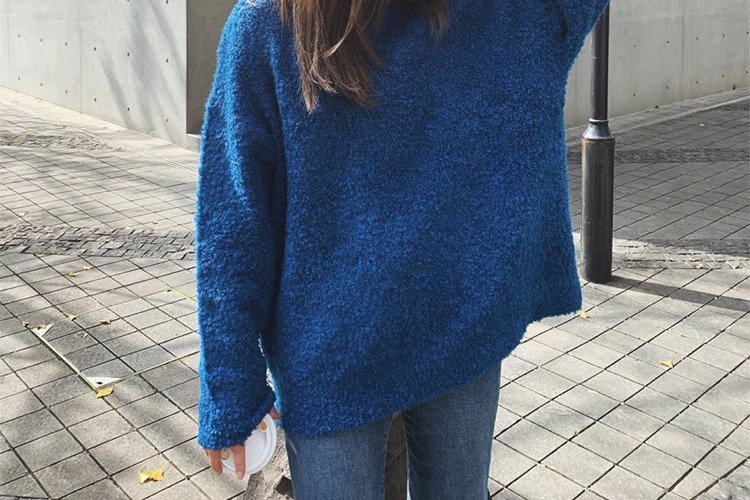 秋冬打底漂亮高級感克萊因藍套頭毛衣女加厚軟糯半邊絨毛針織上衣