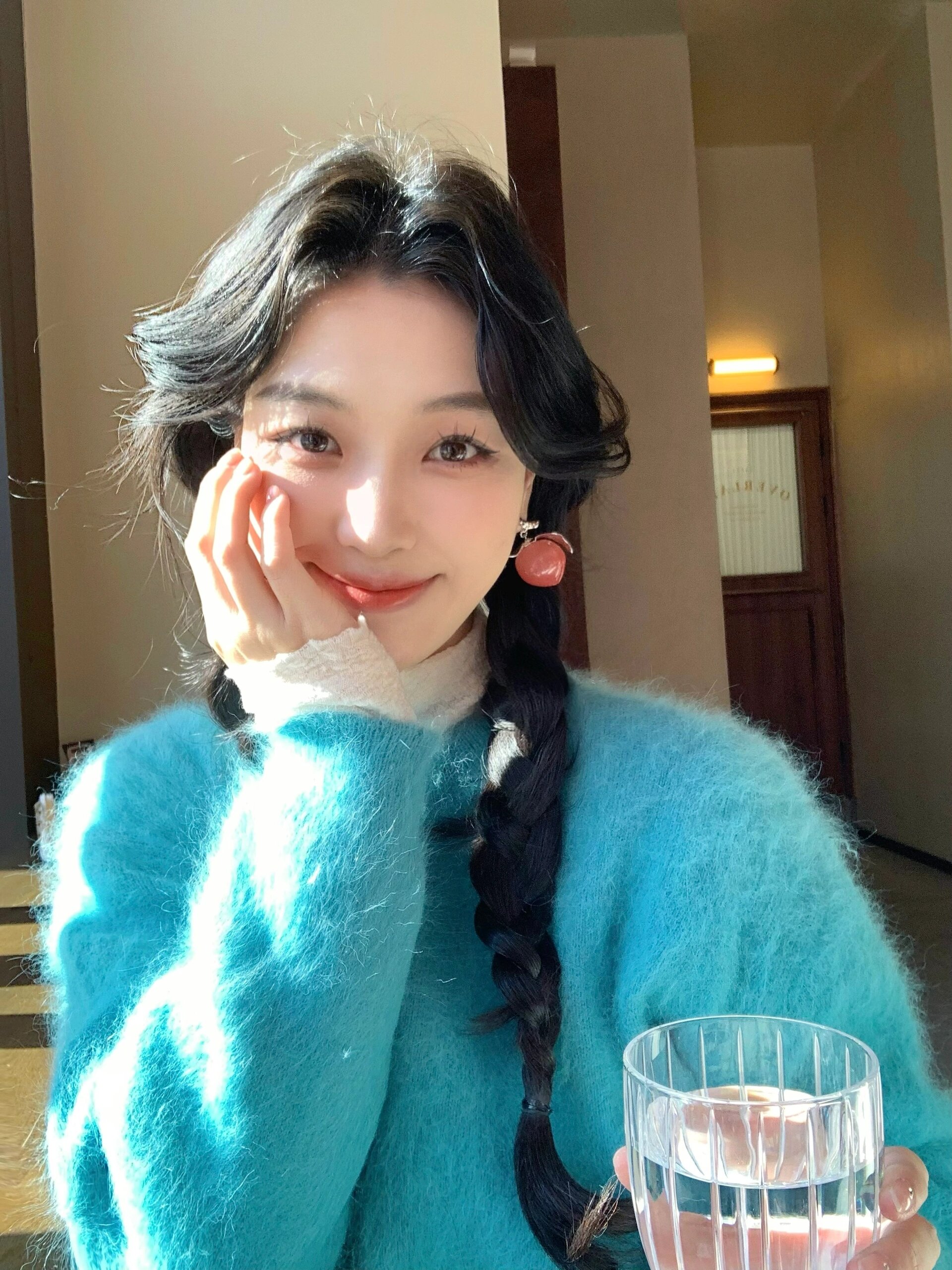 藍色水貂絨套頭毛衣女冬季加厚軟糯奶fufu寬松慵懶風毛茸茸針織衫