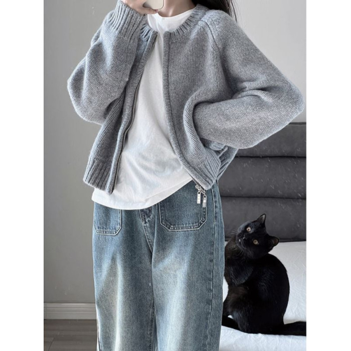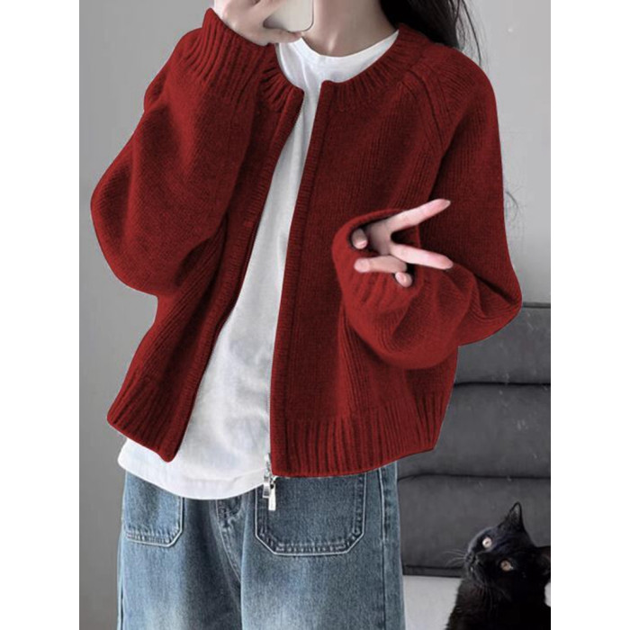針織開衫毛衣外套女秋冬爆款聖誕新年紅色寬松外搭休閒拉鍊上衣潮