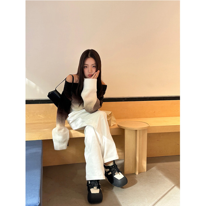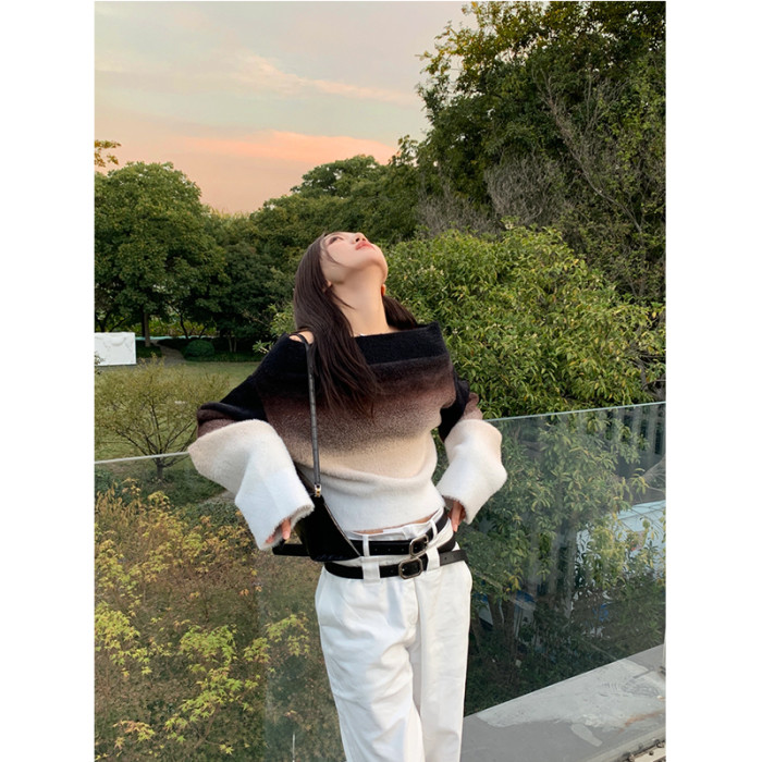 Exclusive type 純欲辣妹一字領漏肩毛衣外套女ins潮性感兩穿上衣