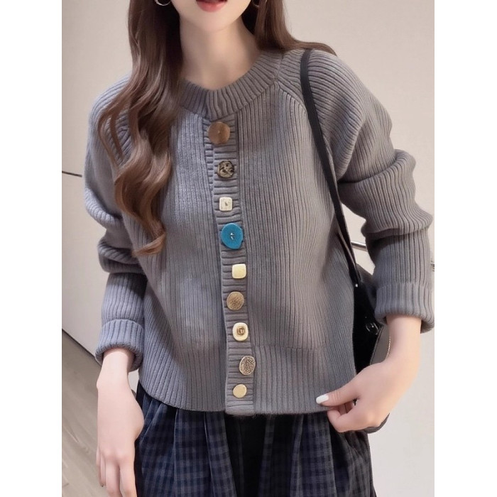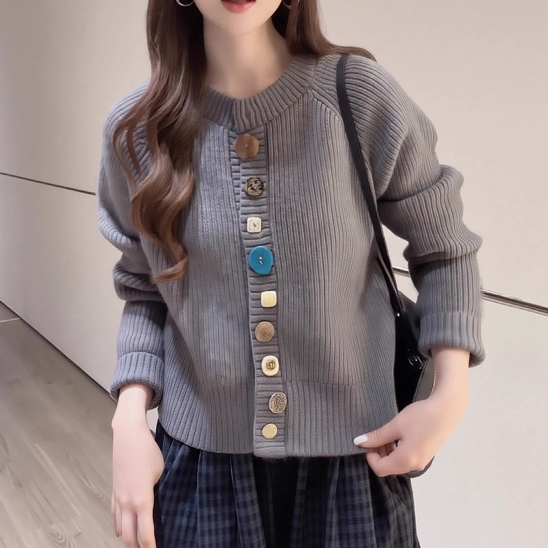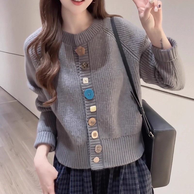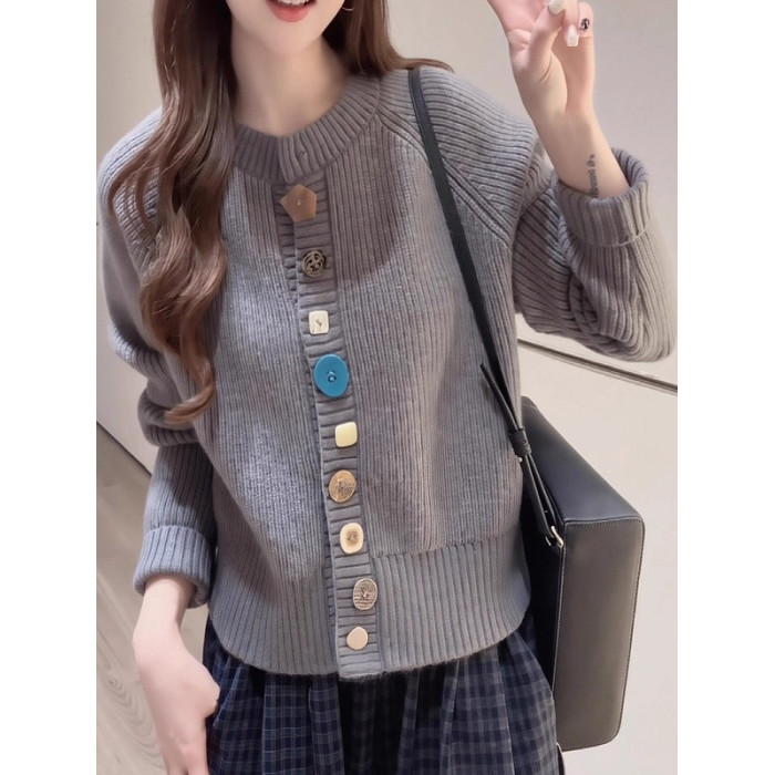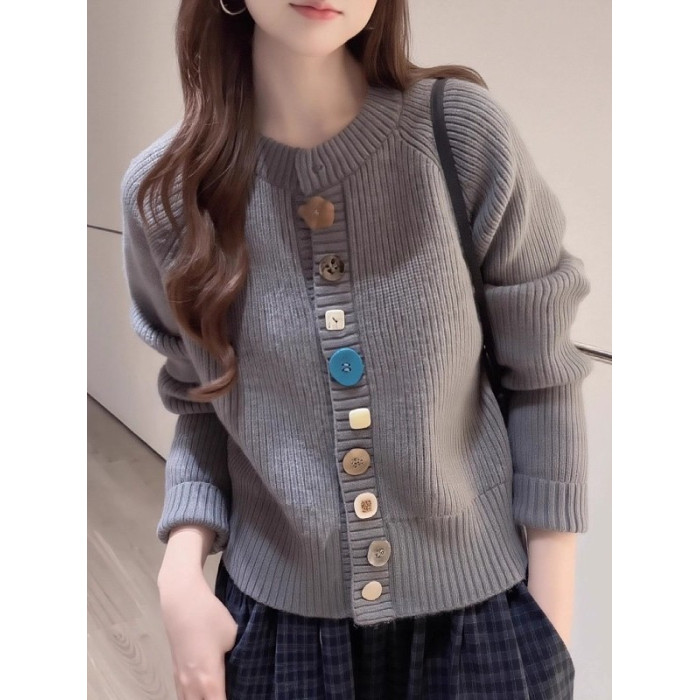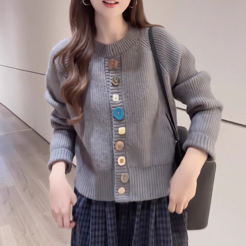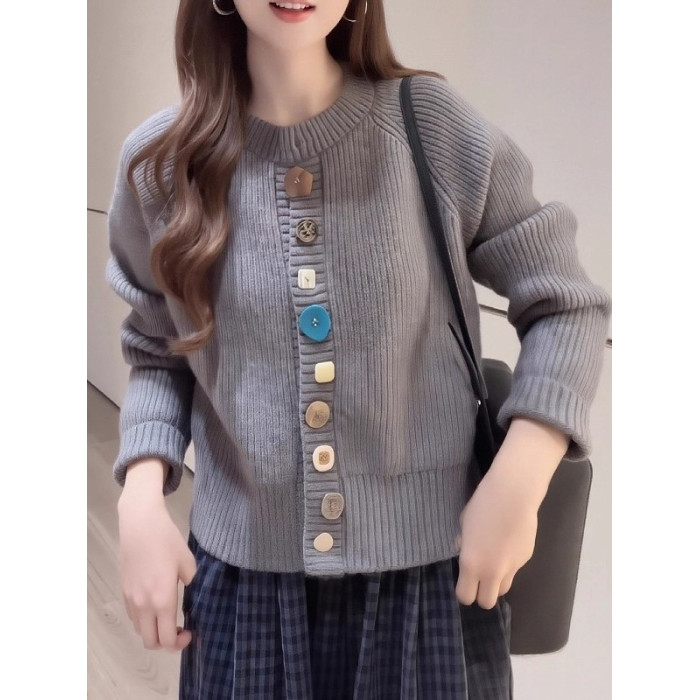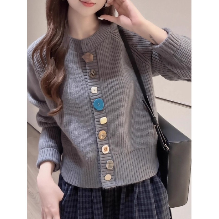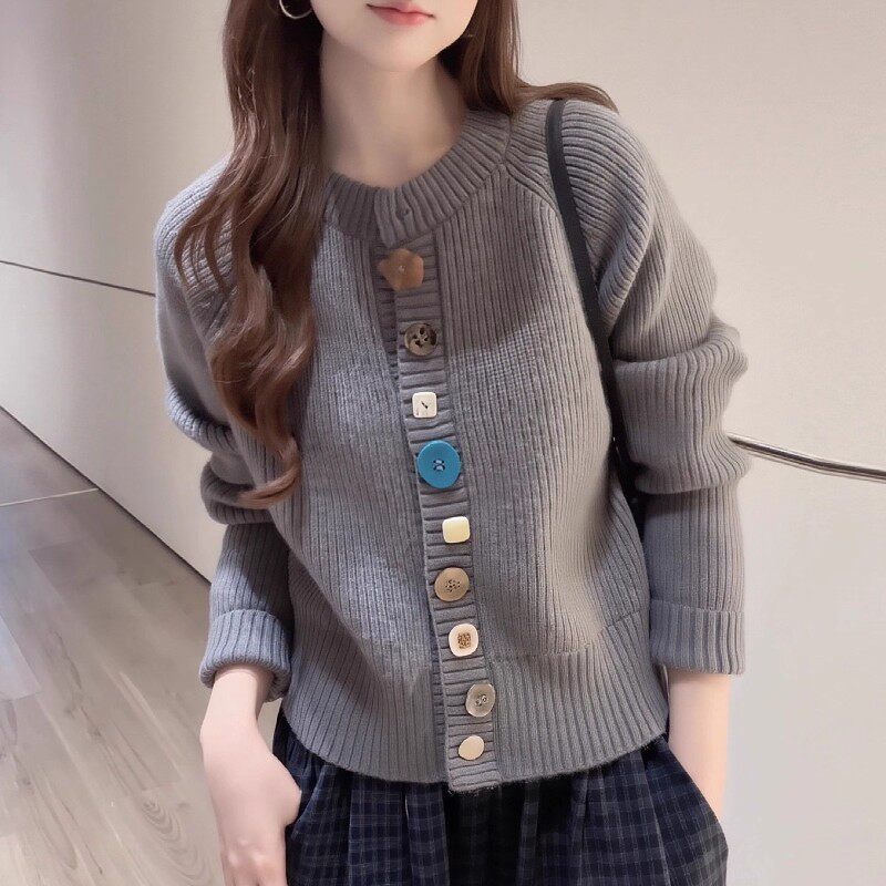慵懶風彩色紐釦針織開衫女2025秋冬新款大碼胖MM寬松百搭毛衣外套