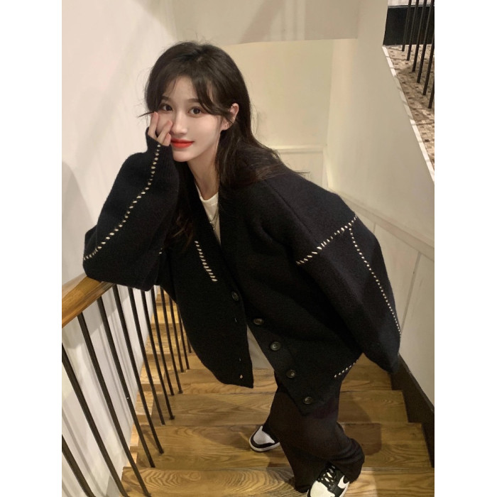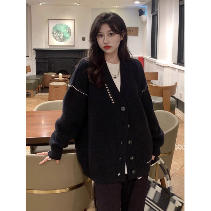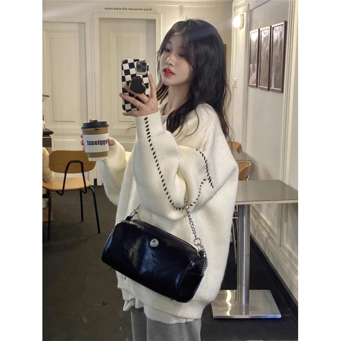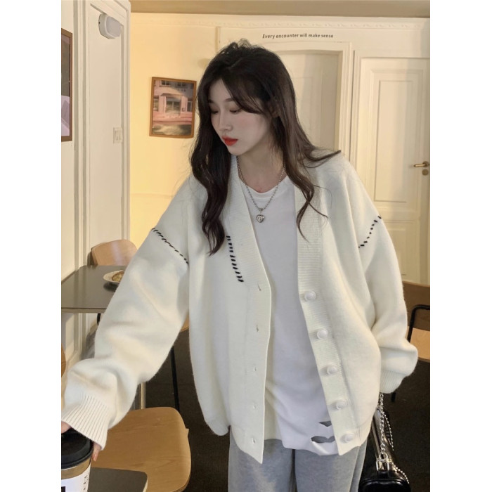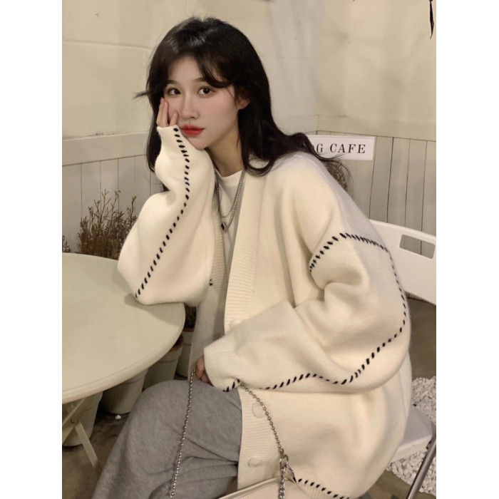 高級感超好看毛衣女秋冬外穿寬松慵懶風中長款白色針織外套開衫