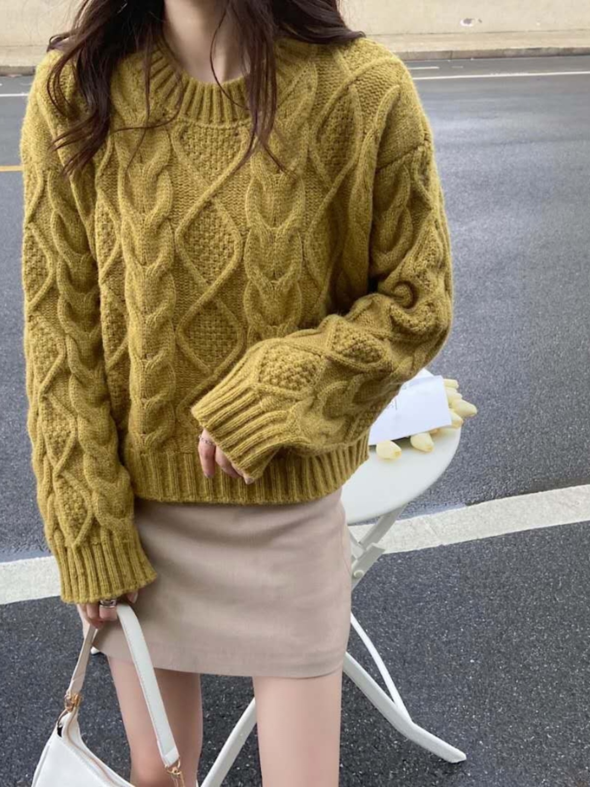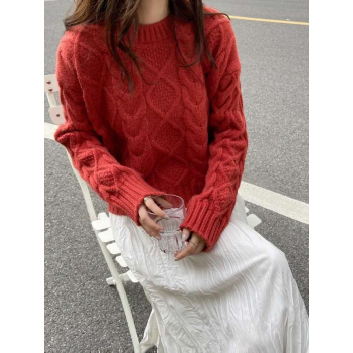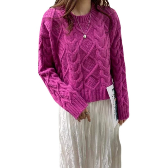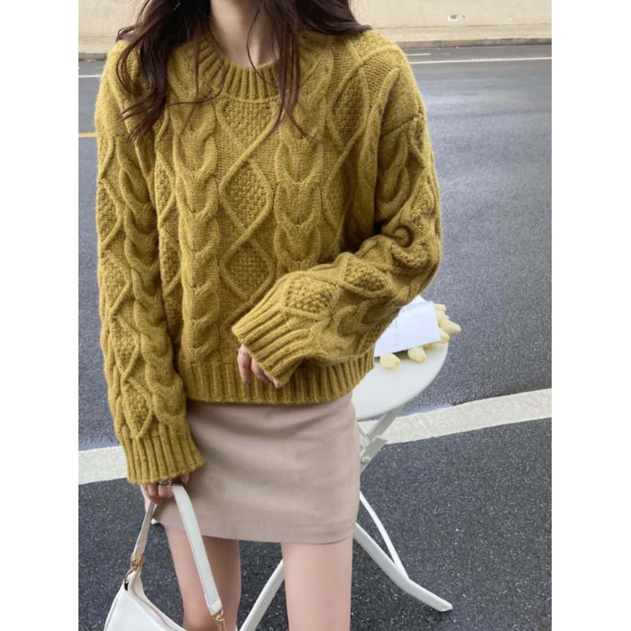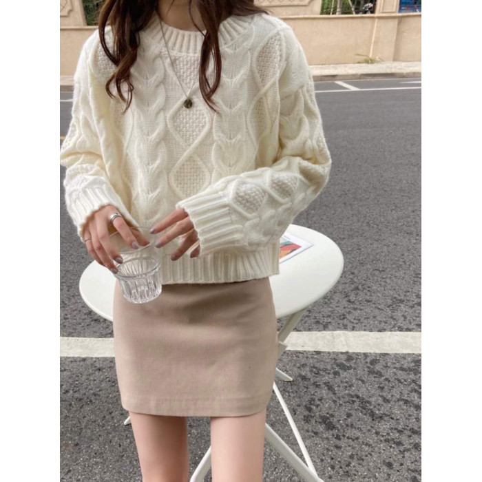 小個子針織上衣女2023年春秋新款時尚氣質圓領套頭加厚短款毛衣潮
