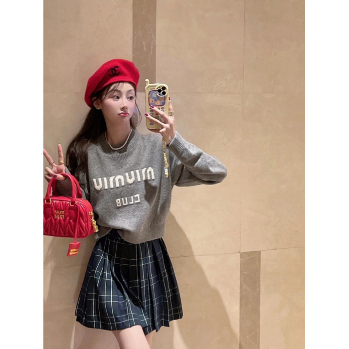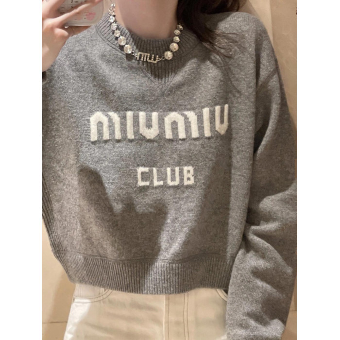 網紅圓領套頭毛衣女秋冬2025新款字母短款針織衫洋氣內搭上衣加厚