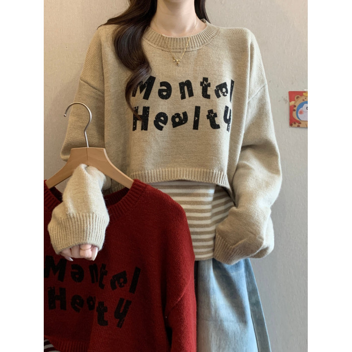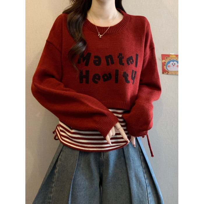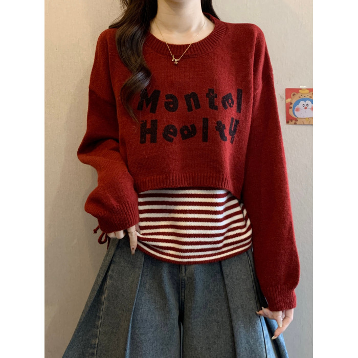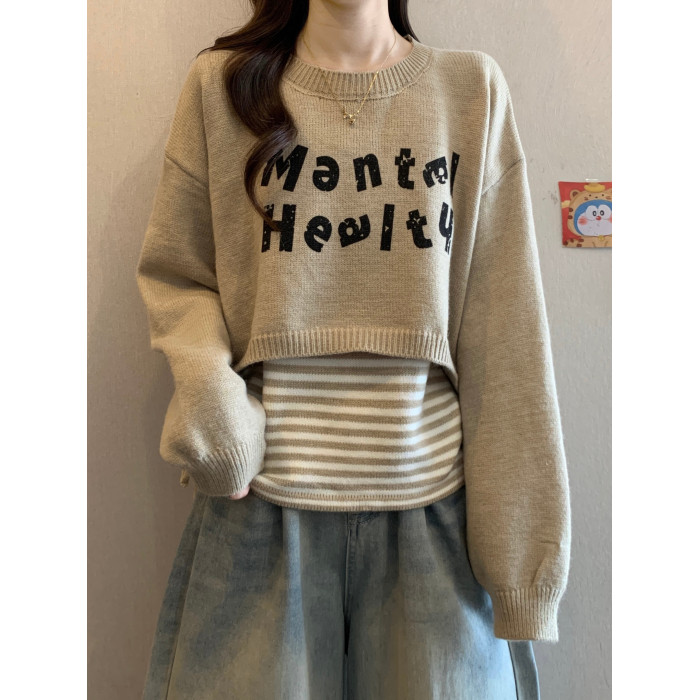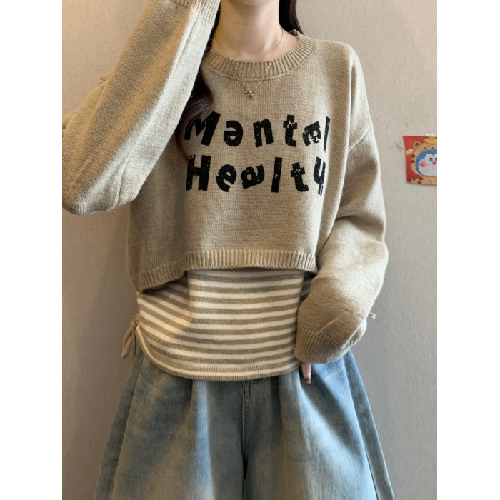 2025秋冬新款韓版條紋吊帶背心外搭罩衫針織衫毛衣曡穿上衣套裝女