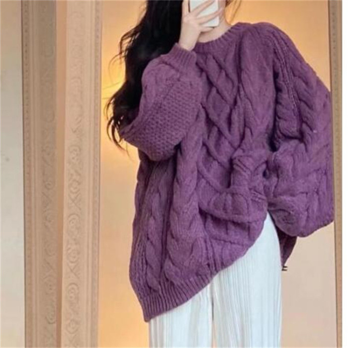 2025春秋冬新款甜美清新麻花毛衣女寬松顯瘦套頭針織衫穿搭慵懶