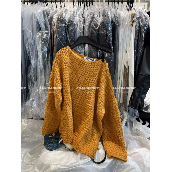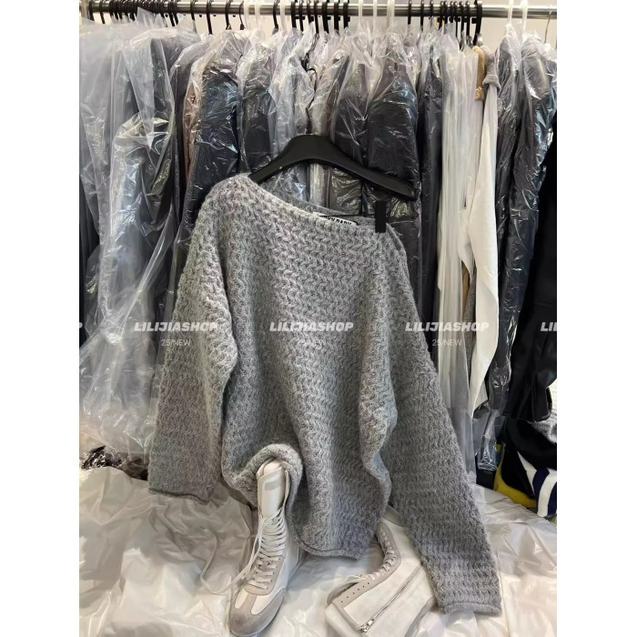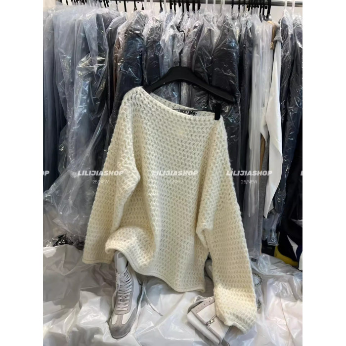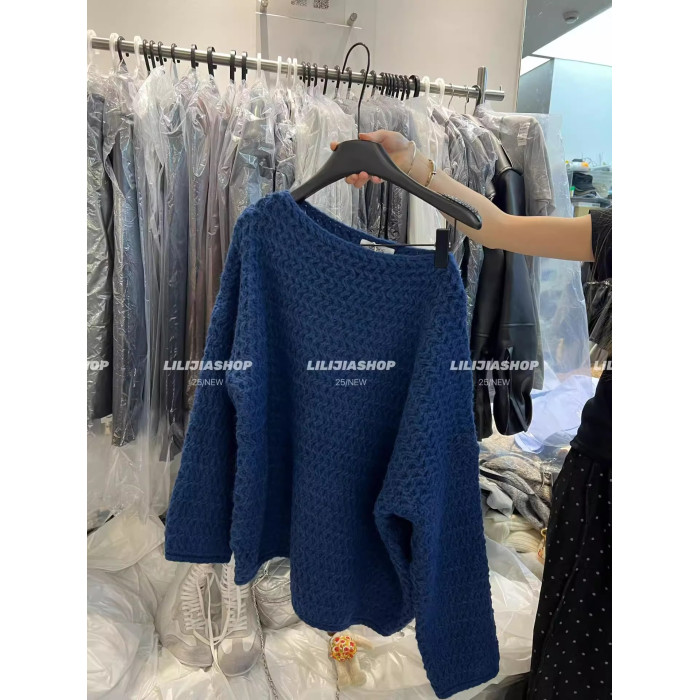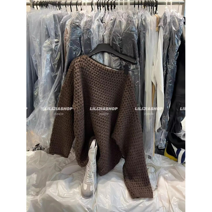 十三行2025秋季新款韓版時尚百搭寬松顯瘦斜肩套頭粗線針織衫毛衣