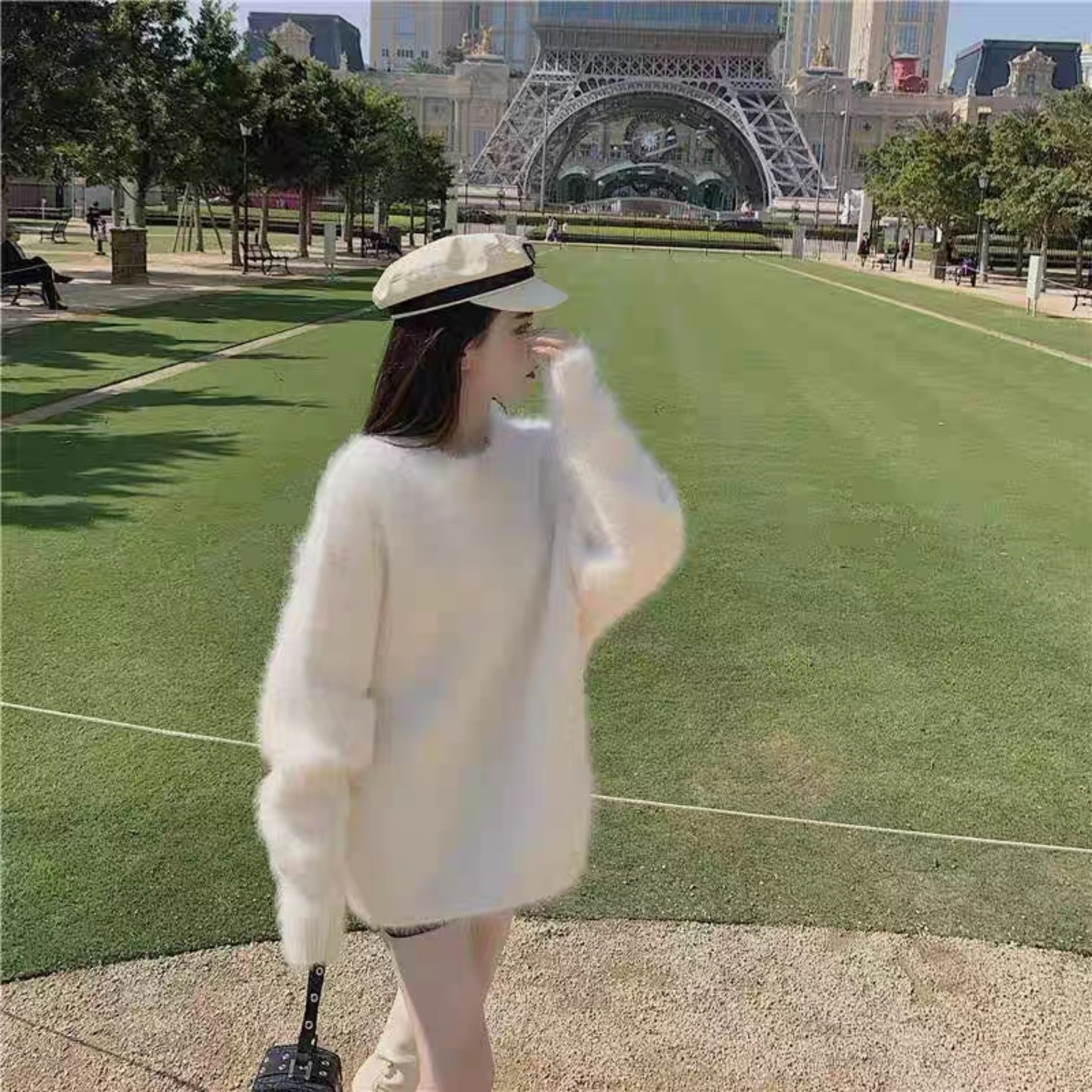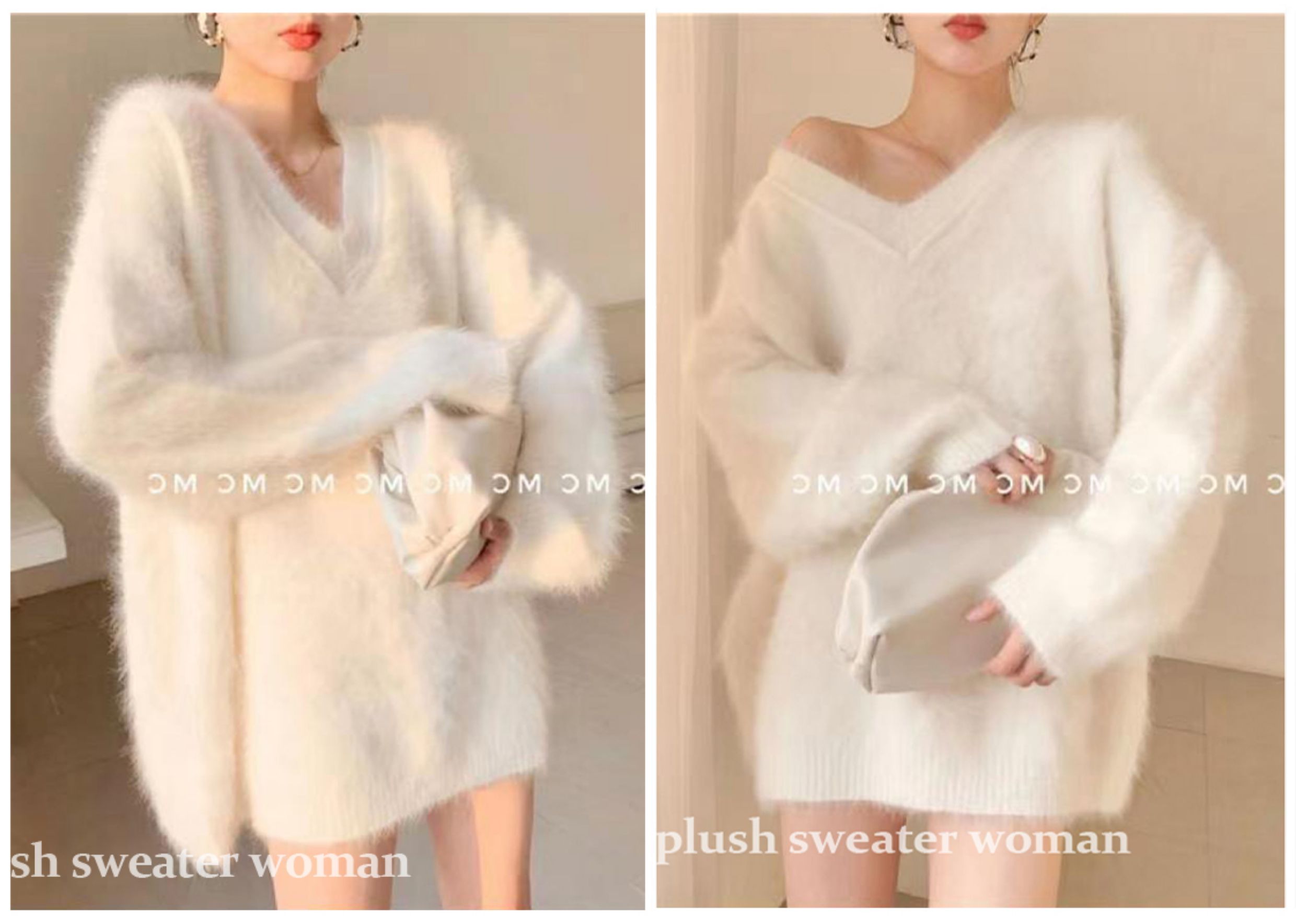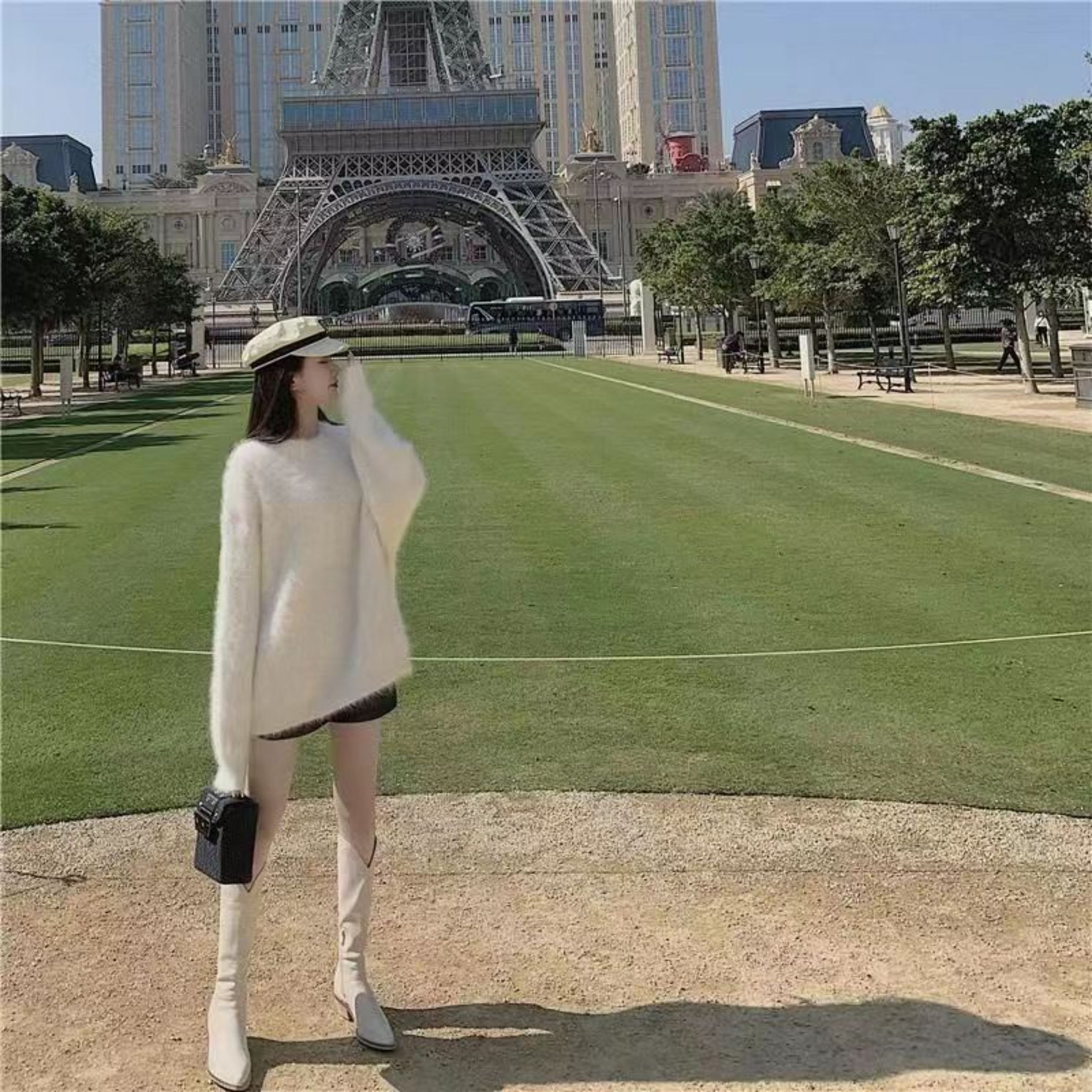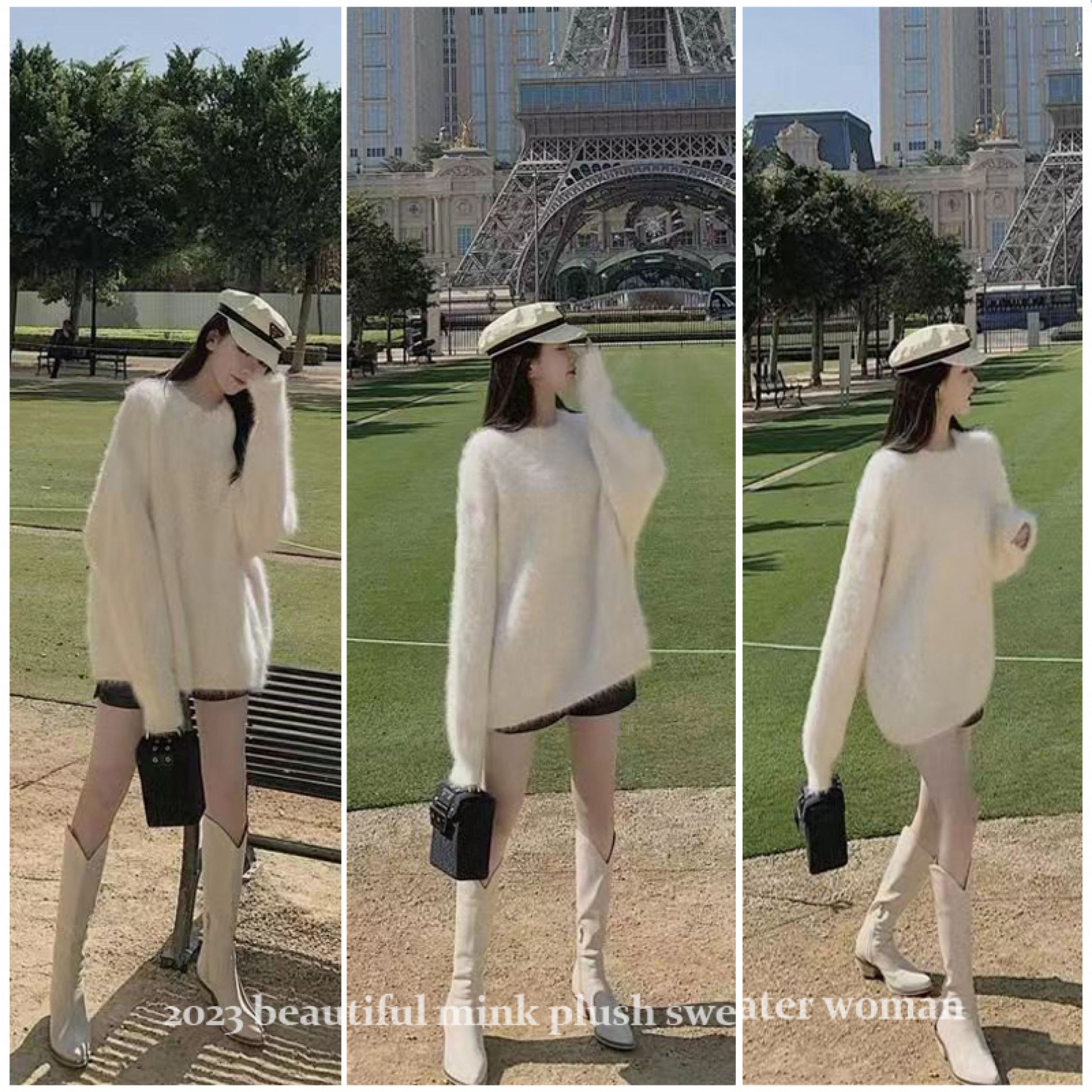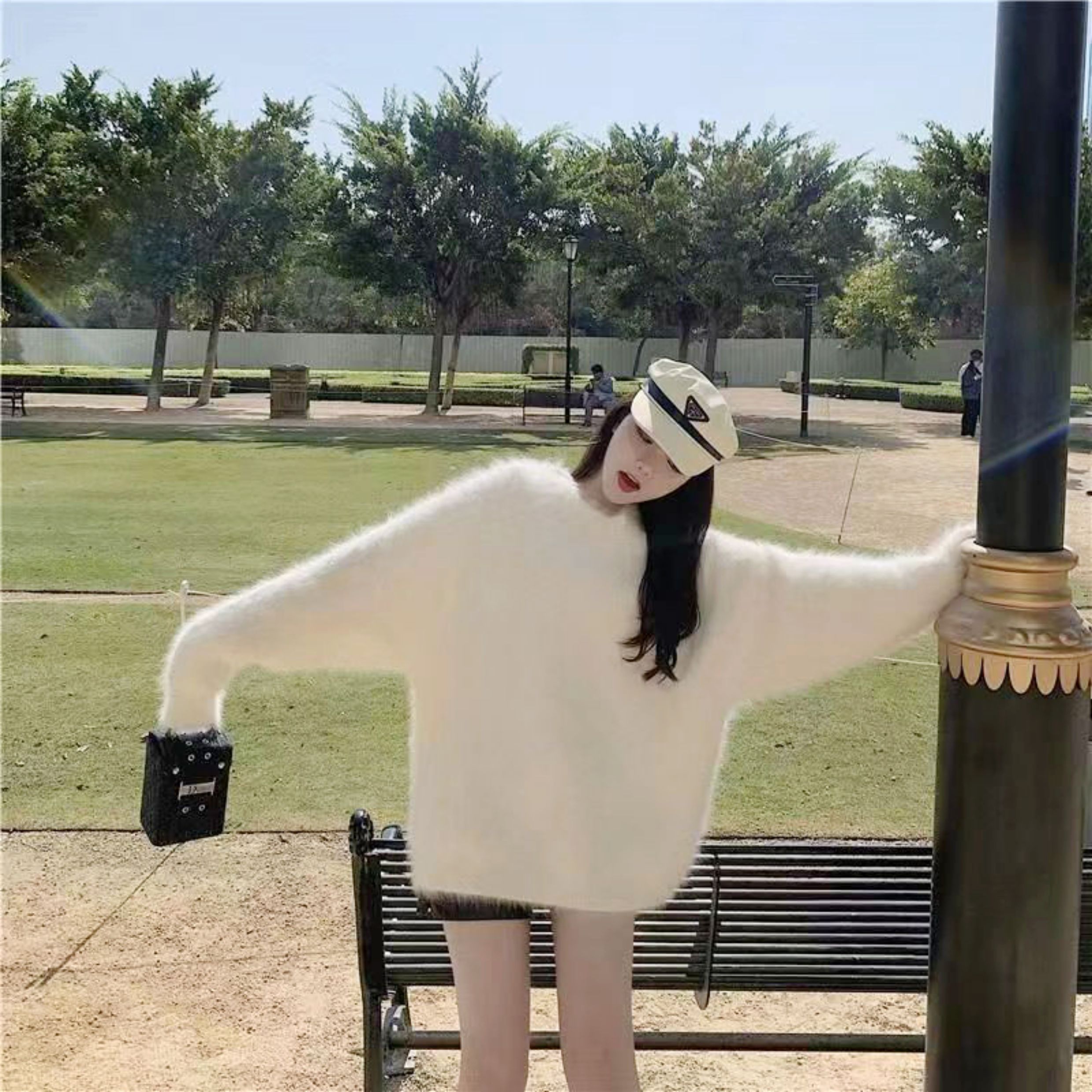 慵懶風毛衣女中長款秋冬外穿白色水貂絨高級感內搭V領針織上衣潮