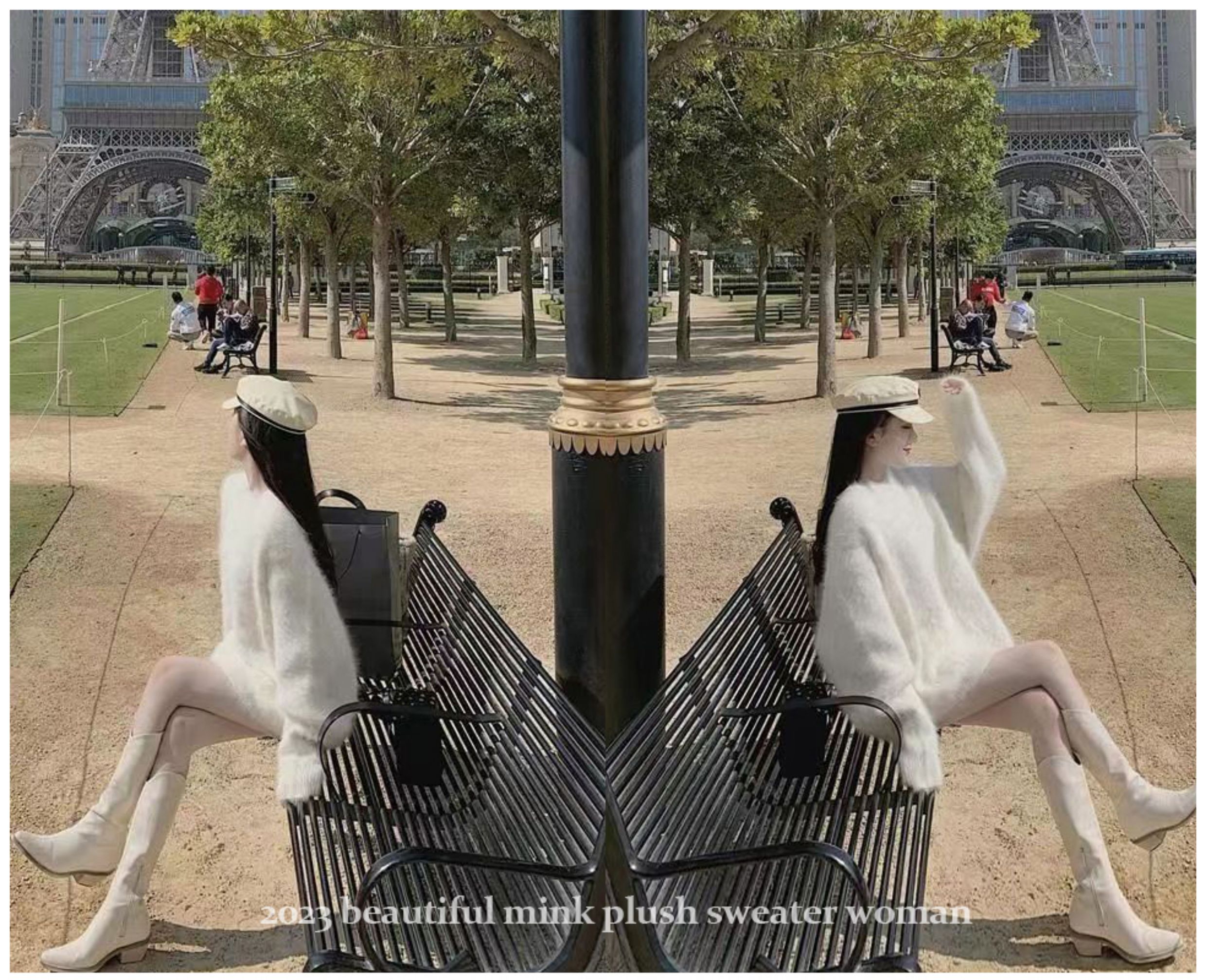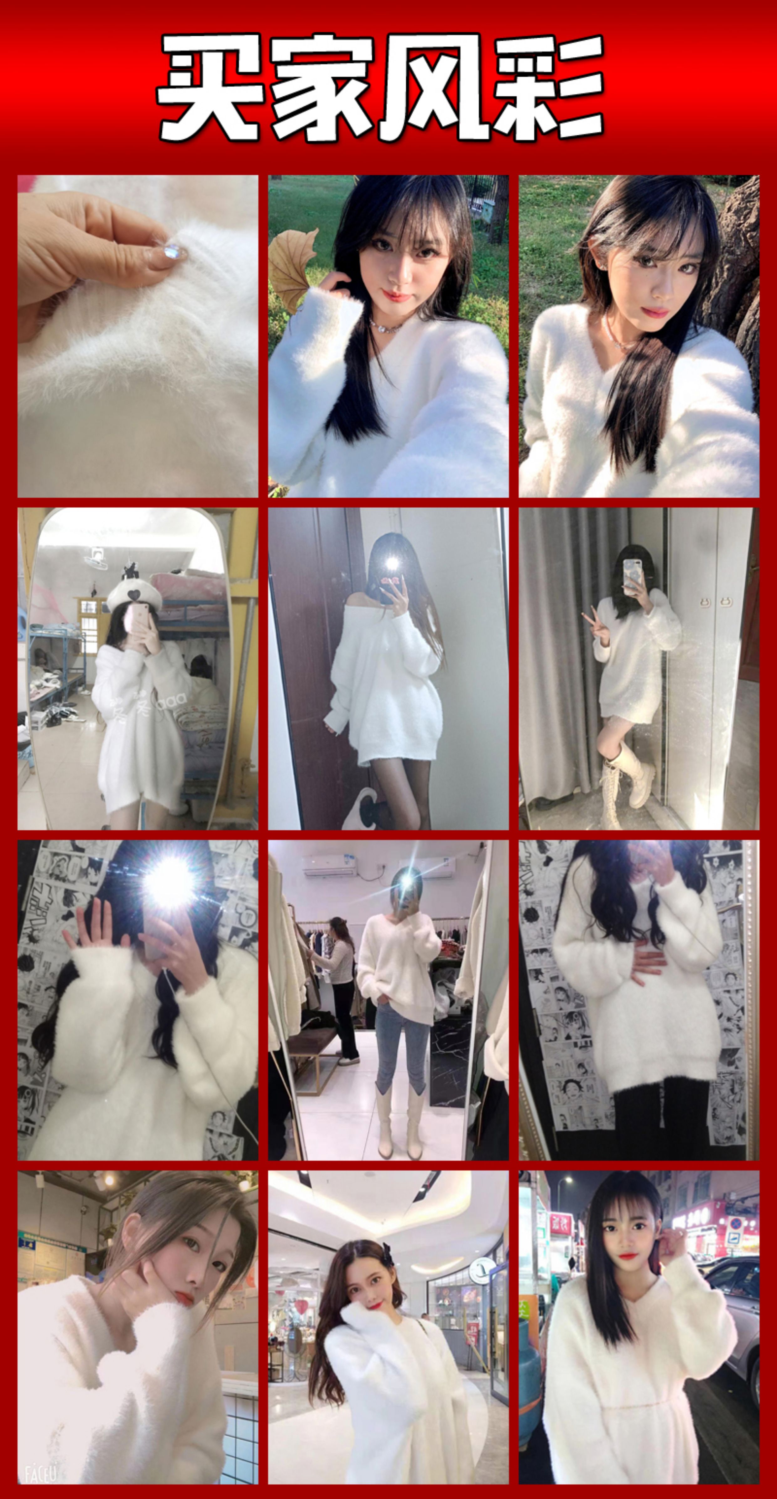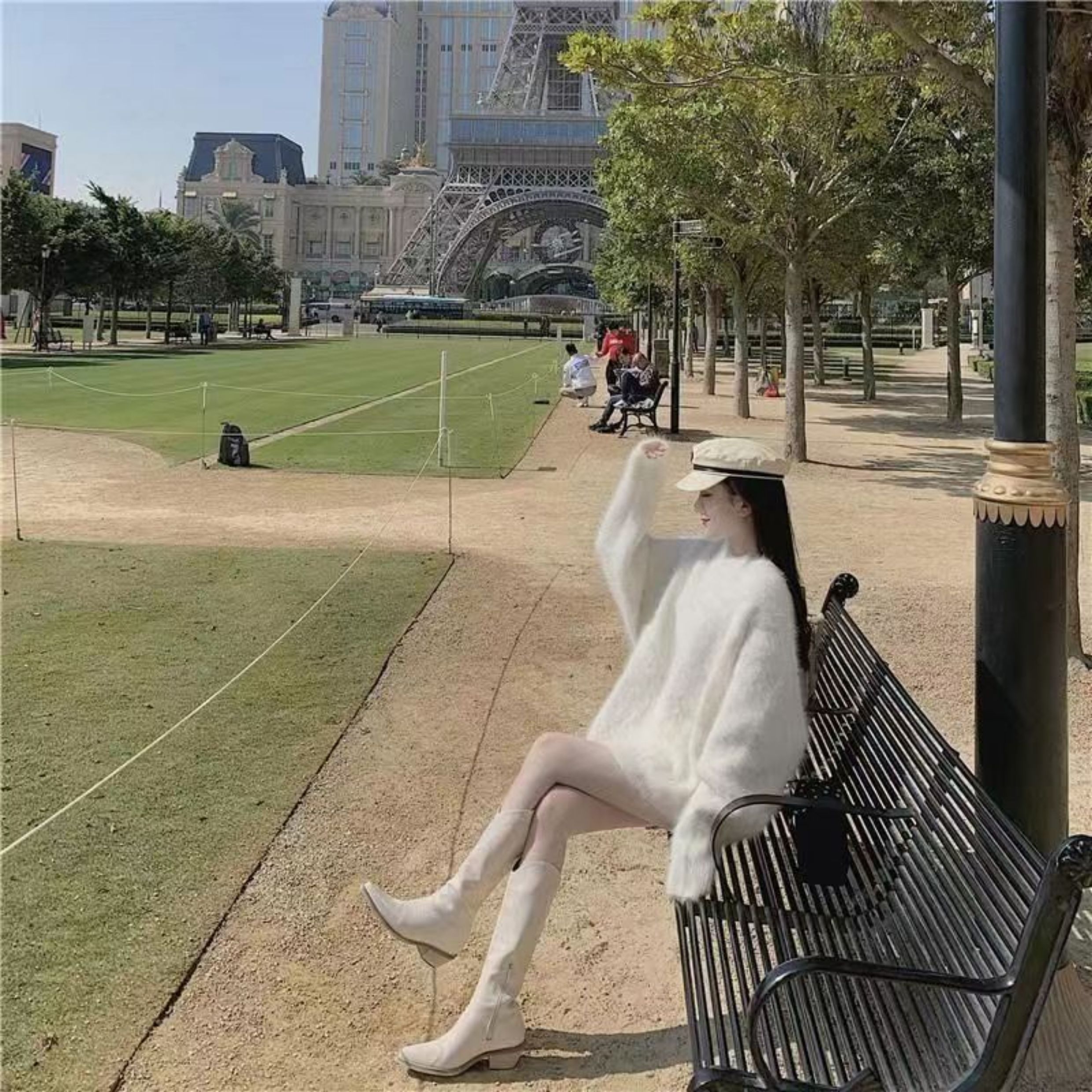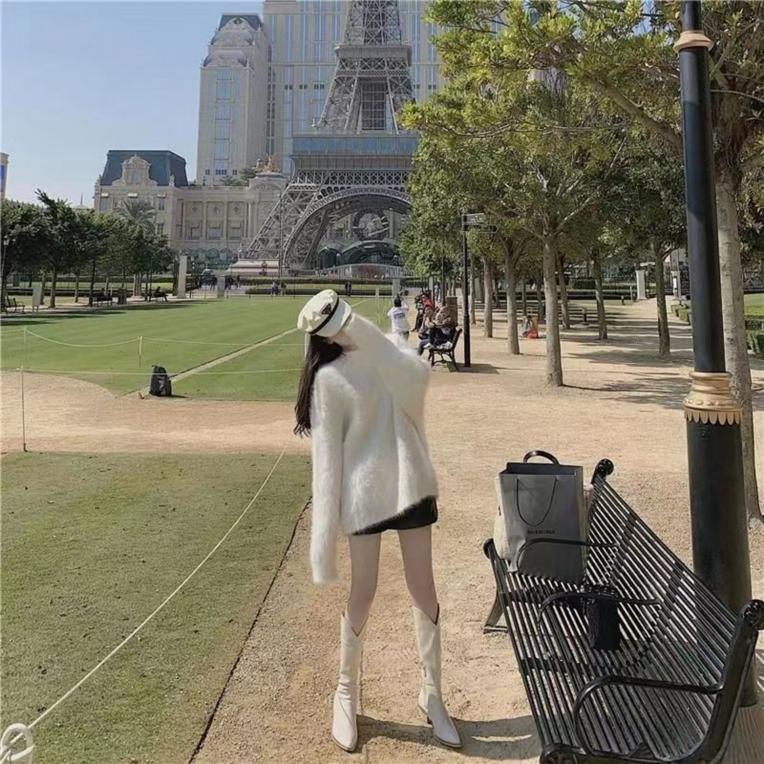 慵懶風毛衣女中長款秋冬外穿白色水貂絨高級感內搭V領針織上衣潮