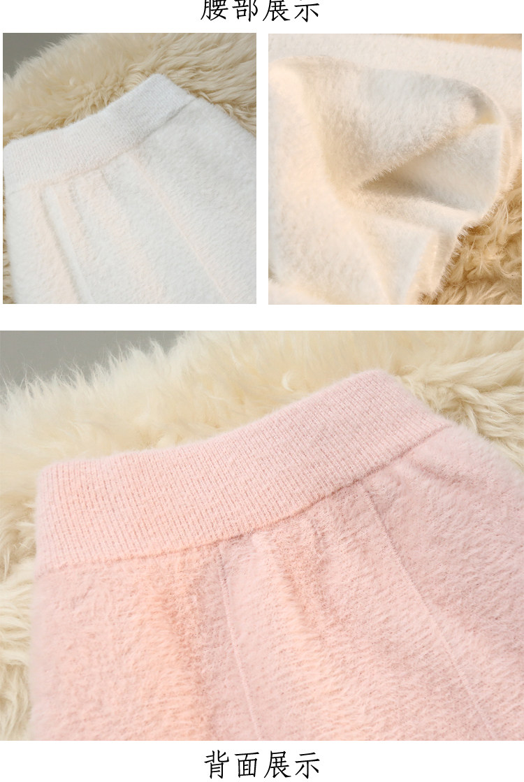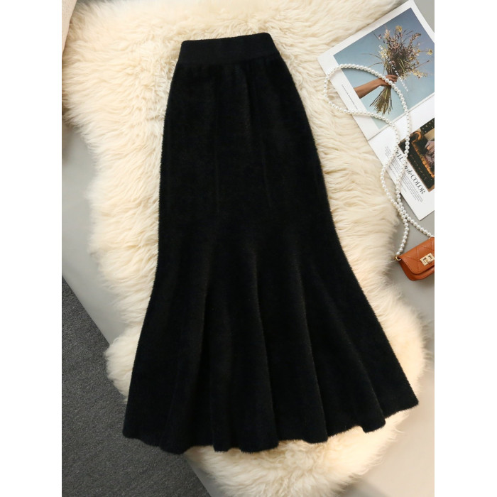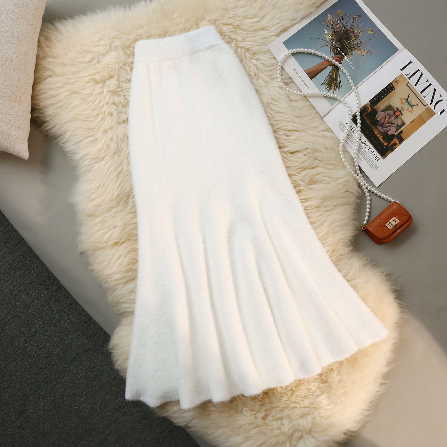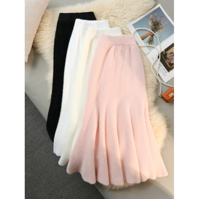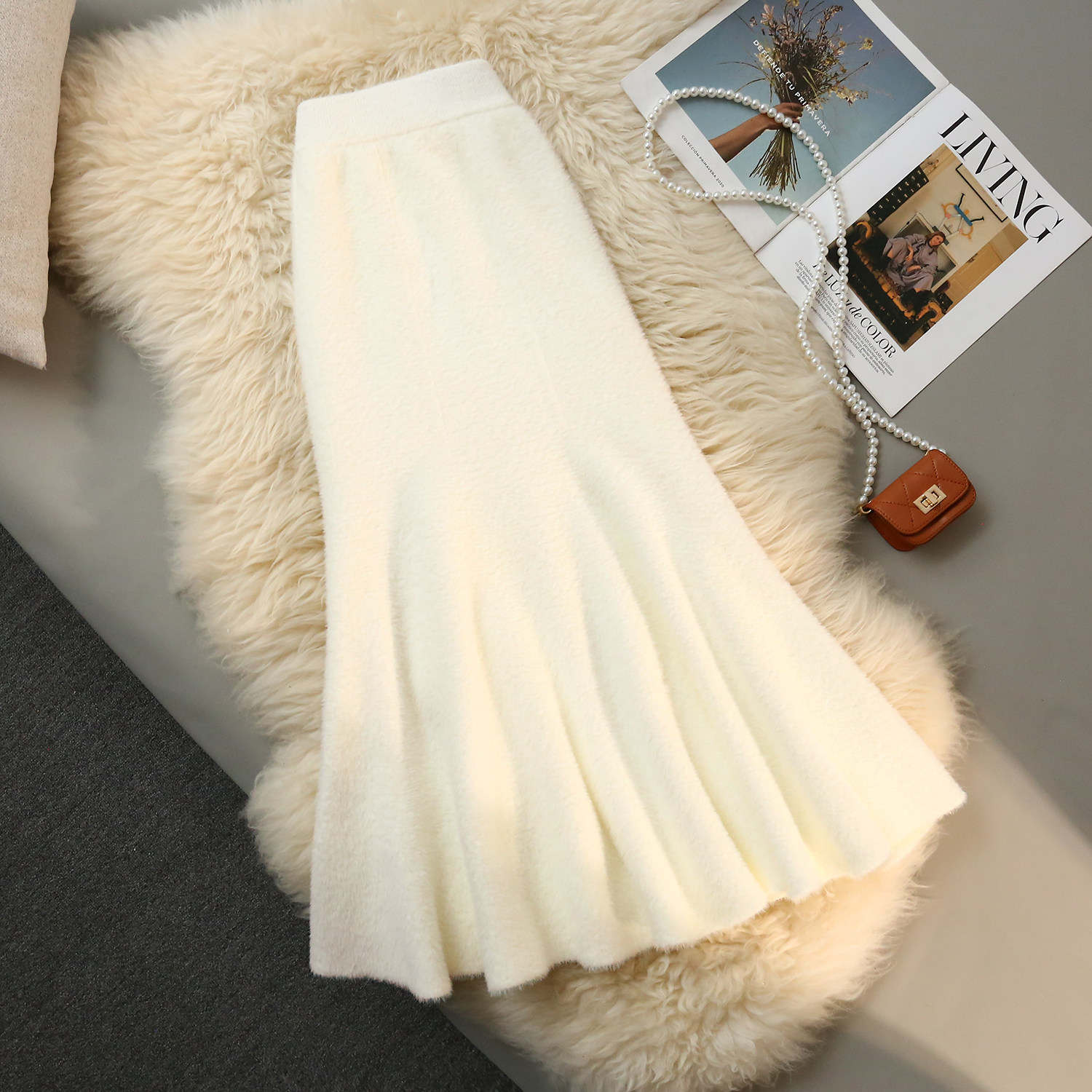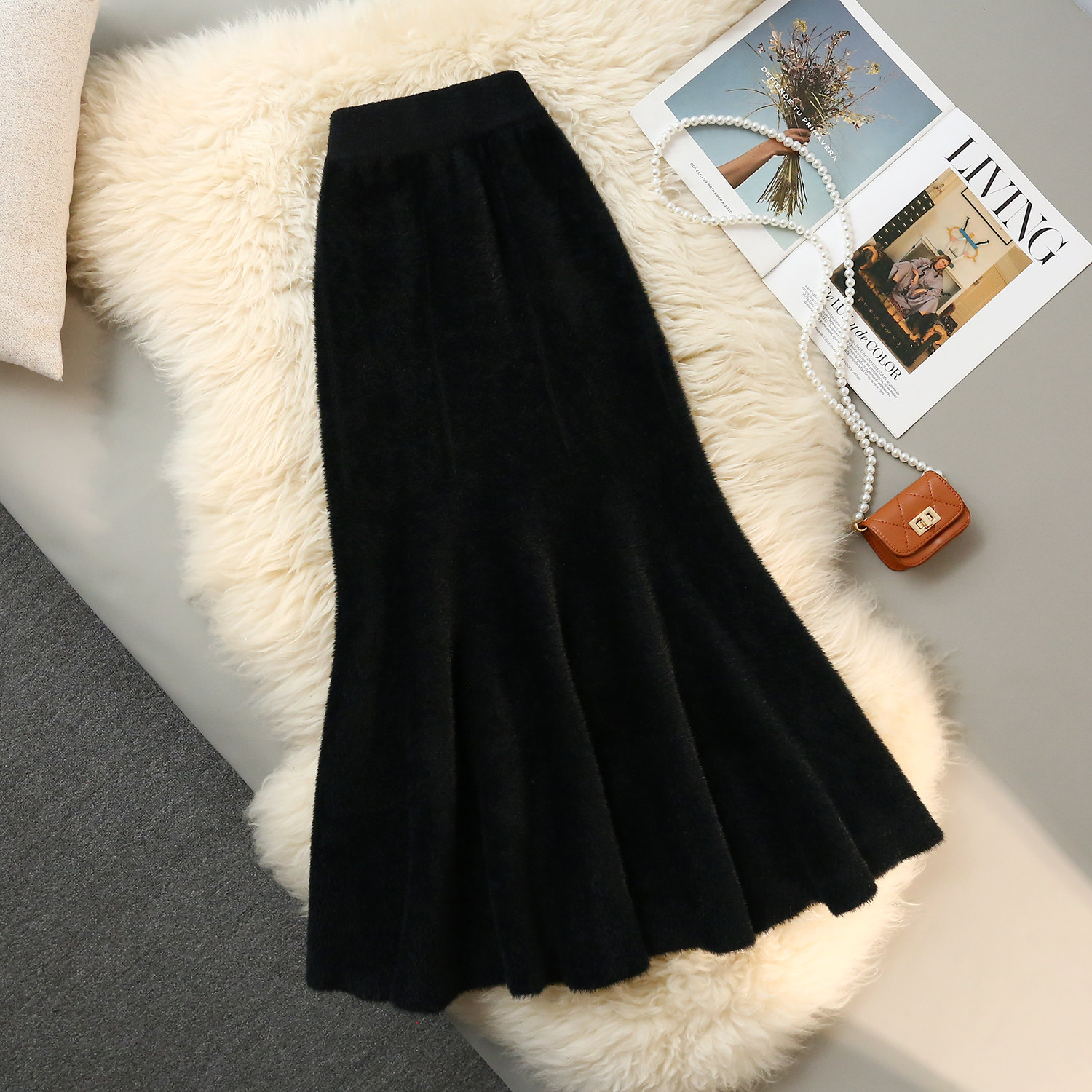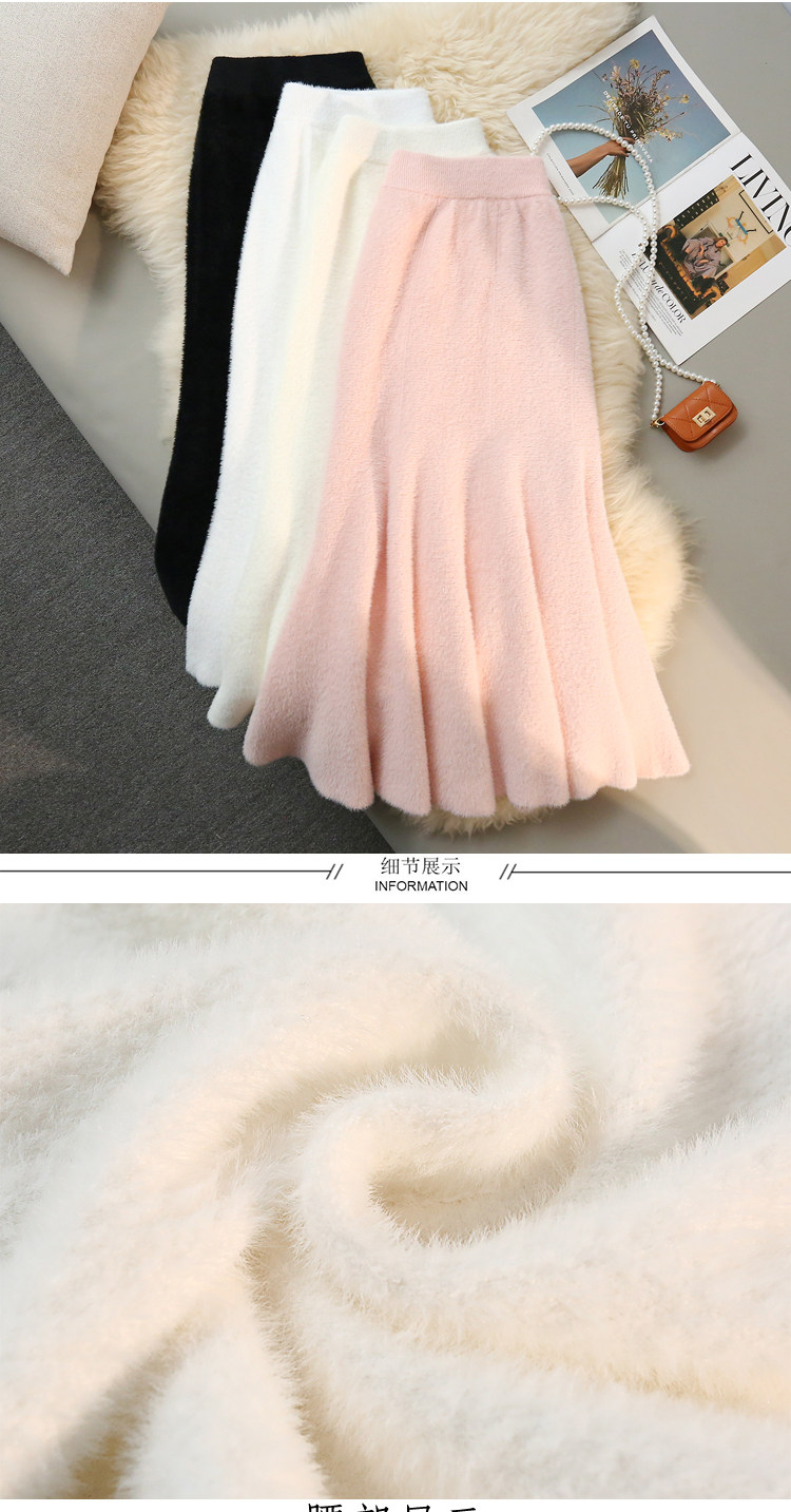 軟糯水貂絨魚尾裙高級感女秋冬針織半身裙粉色嬭fufu毛線包臀長裙