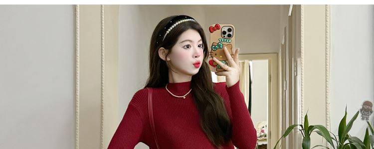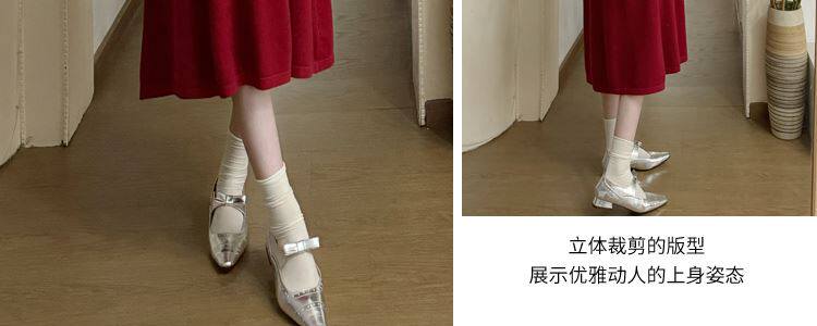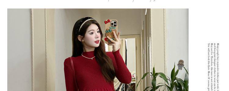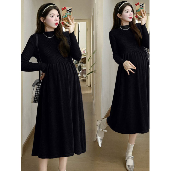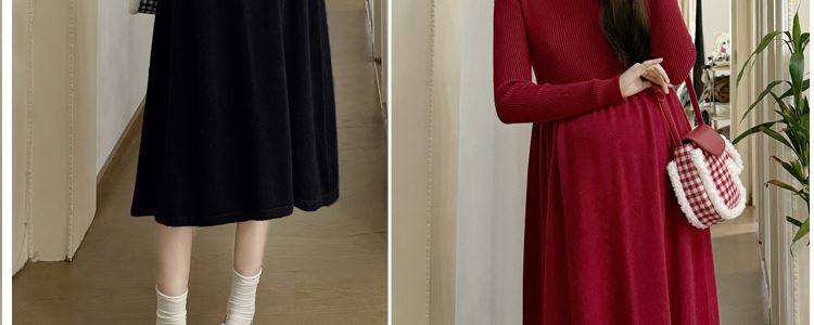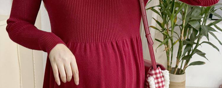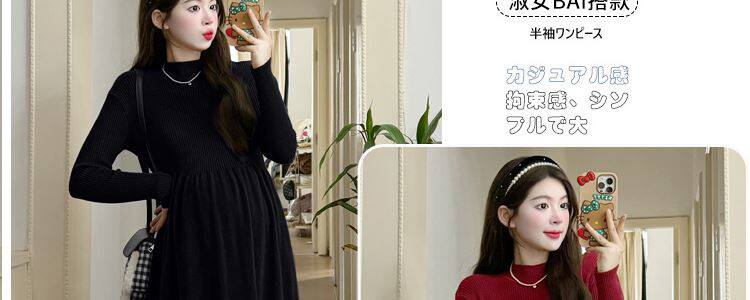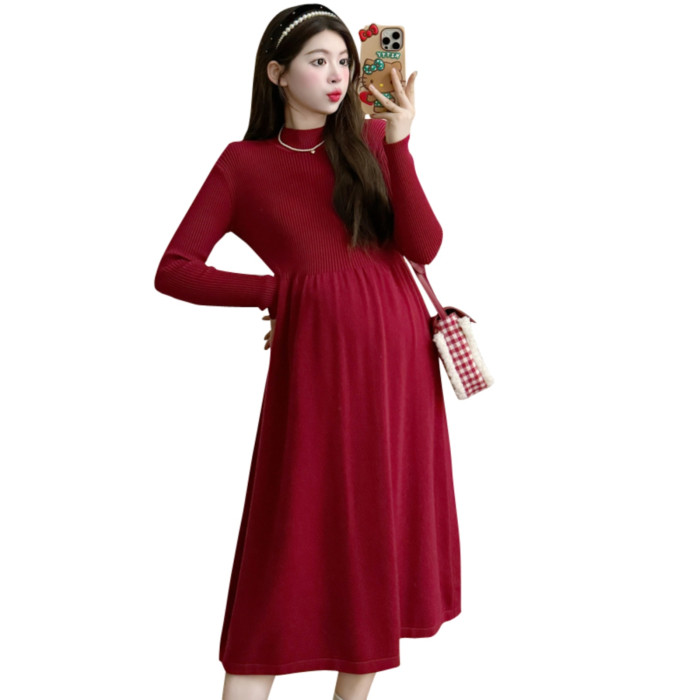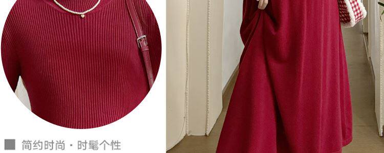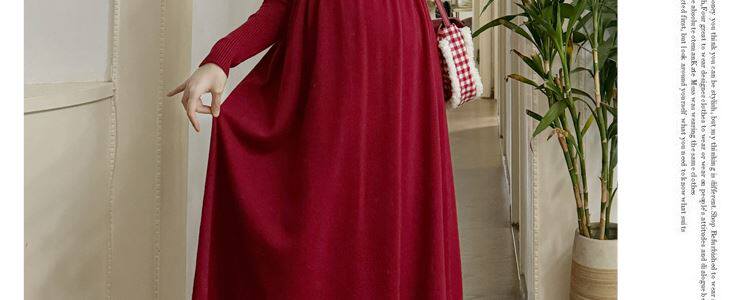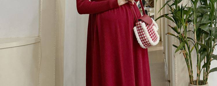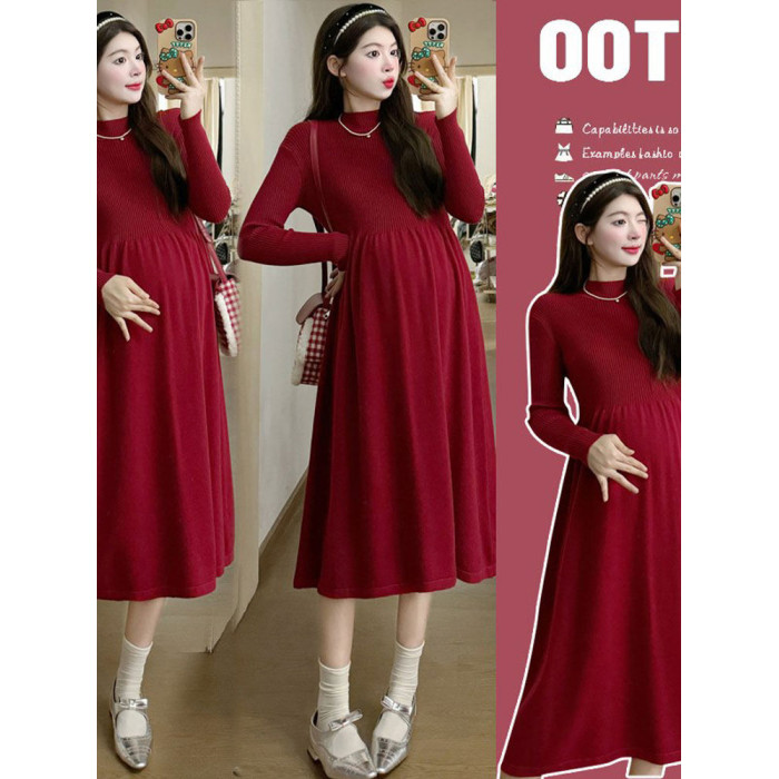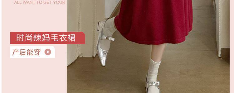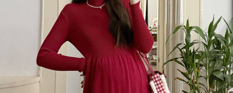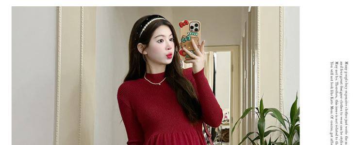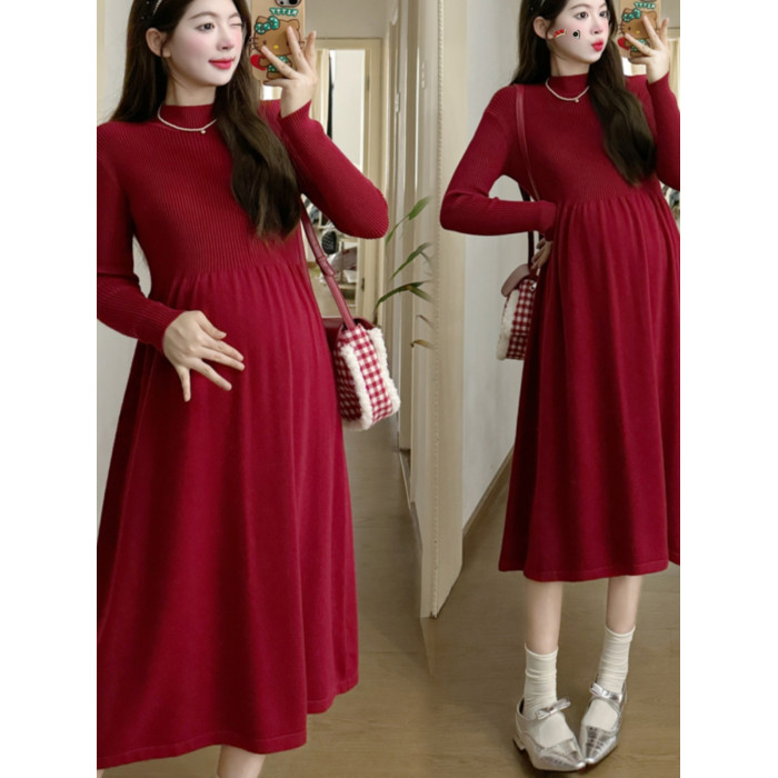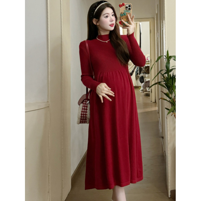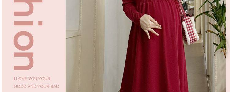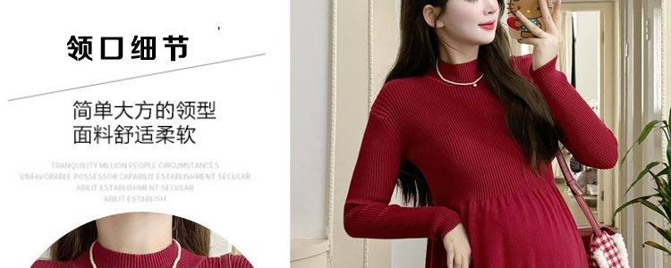 孕婦聖誕新年本命年紅色針織連衣裙女秋冬小個子配大衣打底毛衣裙