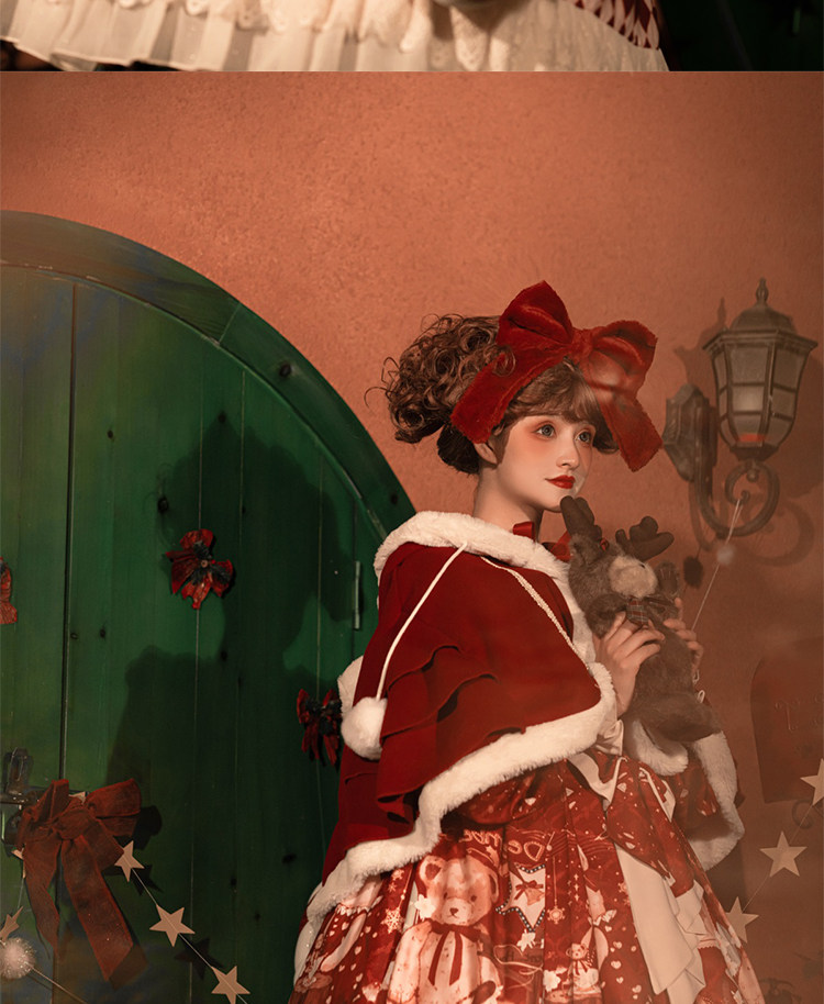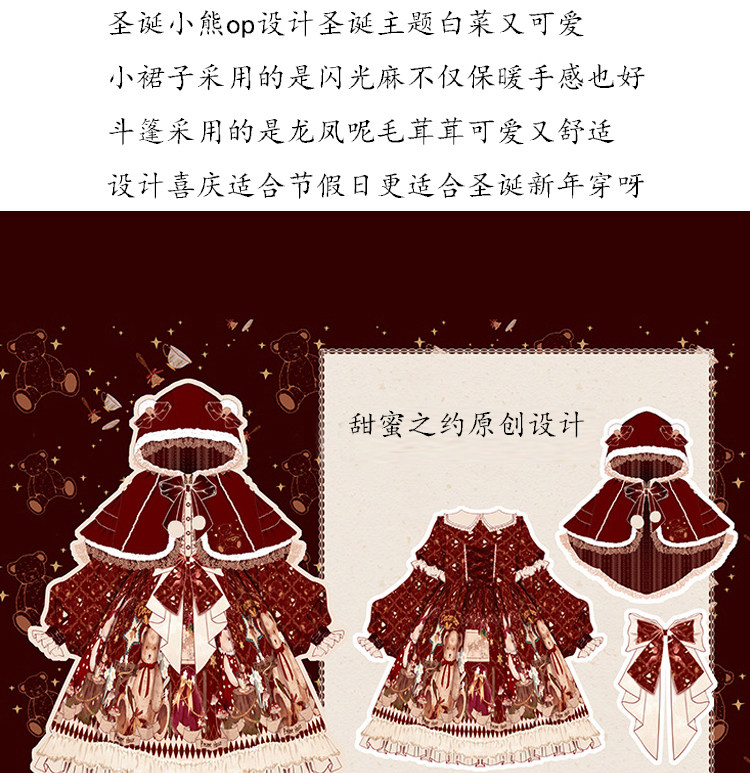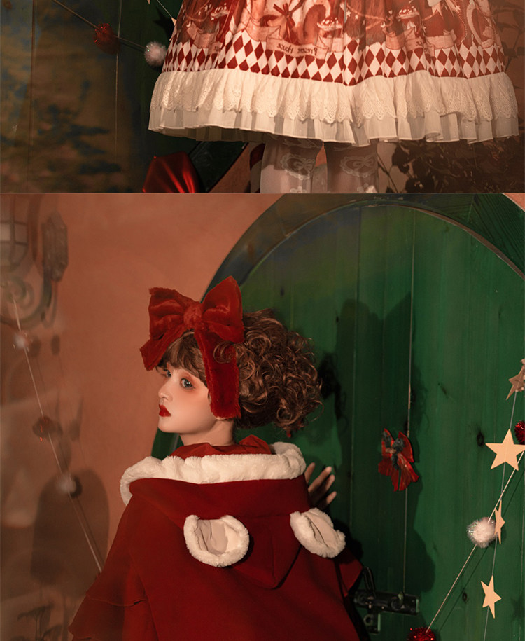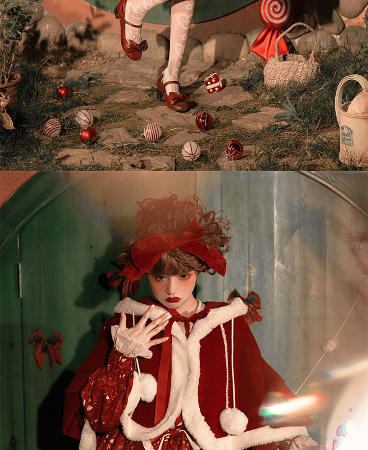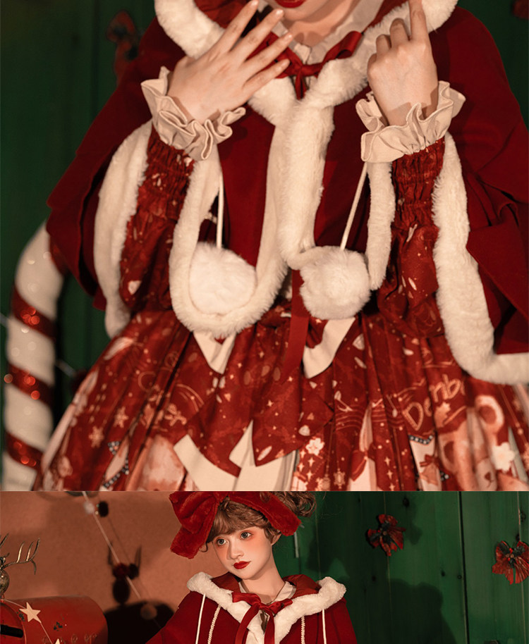 原創lolita裙過年新年戰袍冬季日常加厚聖誕節拜年鬭篷外套洛麗塔