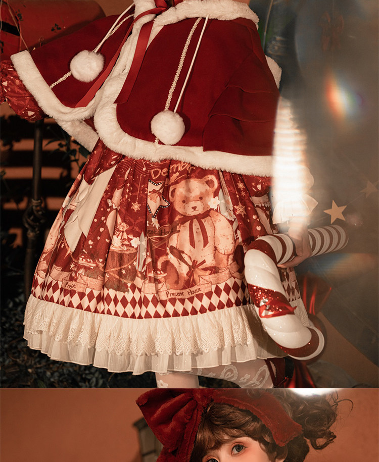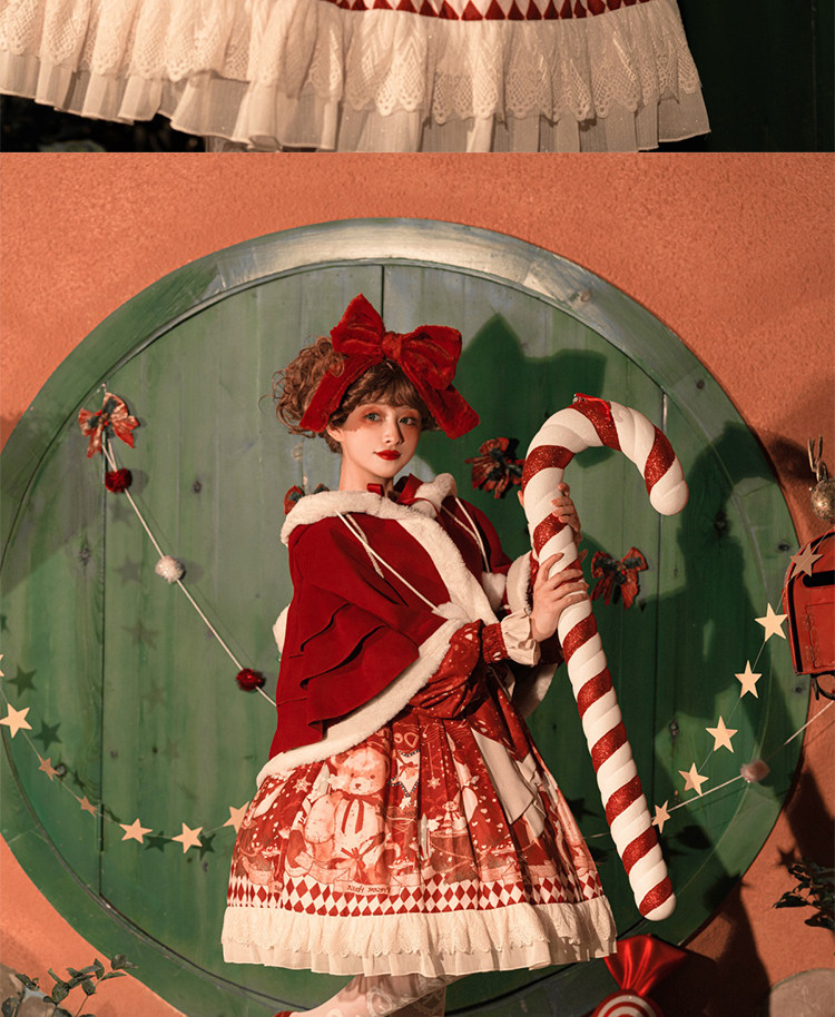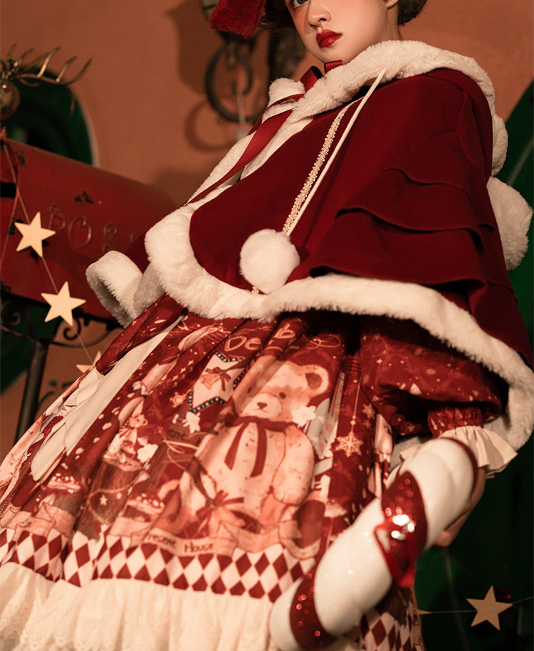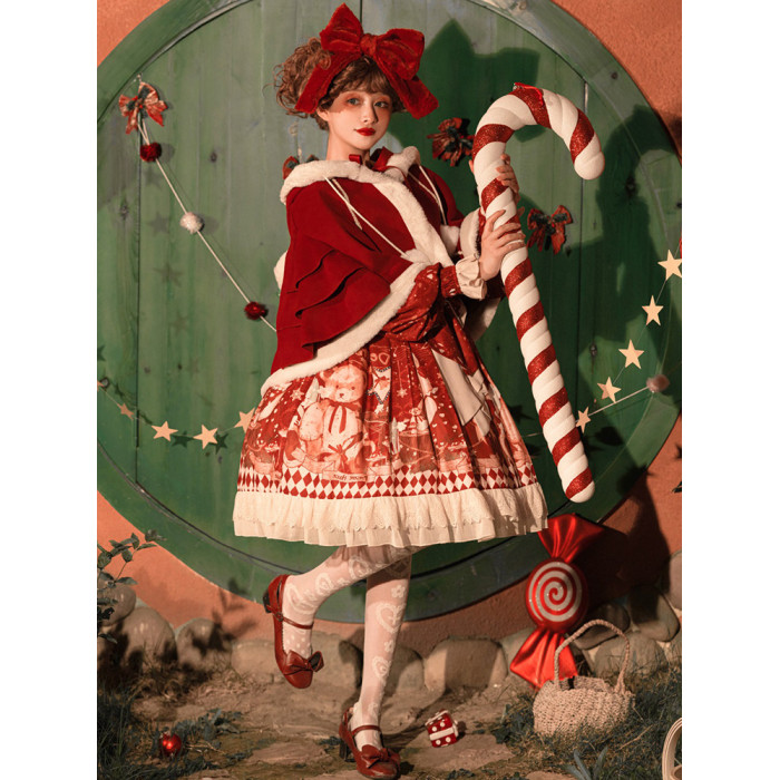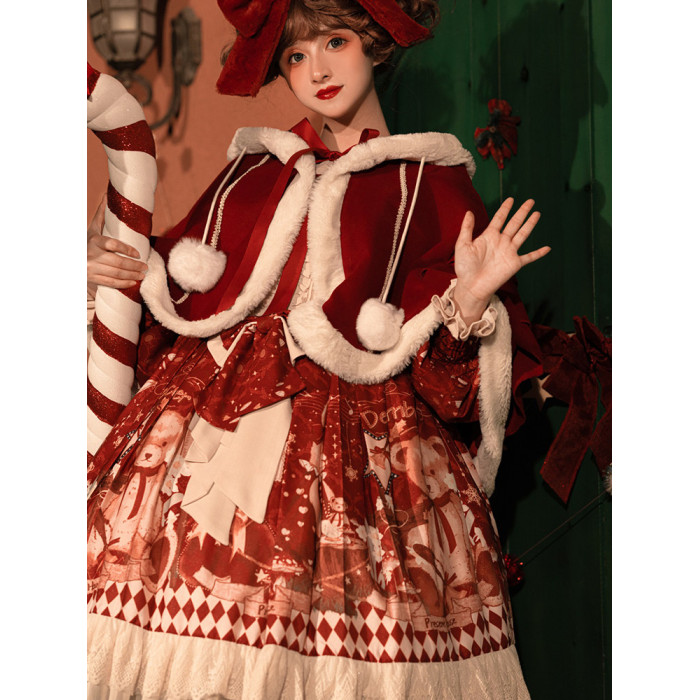 原創lolita裙過年新年戰袍冬季日常加厚聖誕節拜年鬭篷外套洛麗塔